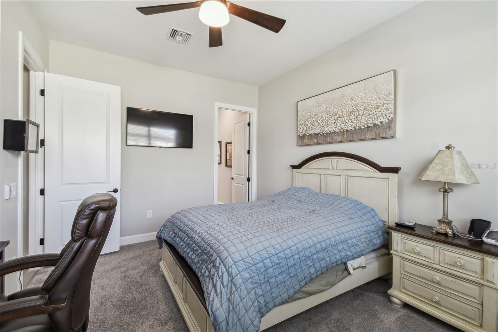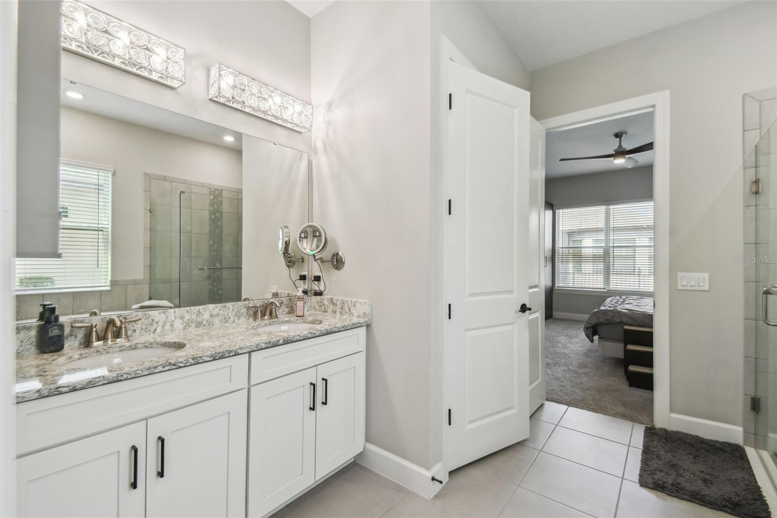 NEW PRICE! QUICK MOVE-IN AVAILABLE! This stunning 3-bedroom, 3-bathroom Ambra model, NEW in 2022, offers modern luxury in a prime location near the Palms Resort Amenity Center. The spacious 24' x 17' great room is pre-wired for a dynamic multi-TV display and surround sound. It features luxury vinyl plank flooring and three sliding doors that open to a covered and screened lanai, overlooking a fenced backyard—perfect for outdoor relaxation. The GOURMET KITCHEN is designed for both function and style, featuring granite countertops, a large island, an eat-at bar, a tile backsplash, extra cabinet space, and a walk-in pantry. The OWNER'S SUITE is a luxurious retreat with an out-of-this-world custom walk-in closet, dual sinks, a garden tub, a custom shower, and a window for natural light. A SECOND MASTER OR GUEST SUITE offers a spacious walk-in closet, dual sinks, a custom shower, and natural light, ensuring comfort and privacy for visitors. Bedroom #3 is conveniently located next to a full bath with a tub/shower combination. The oversized 2-car garage provides ample space for storage, a golf cart, and attic access. THE REMAINDER OF THE YEAR"S GOLF MEMBERSHIP IS INCLUDED!. This beautifully upgraded home offers elegance, comfort, and convenience in a highly desirable location—don’t miss this opportunity! Ready to experience the best of resort-style living? All this in one of the top 55+ communities in America. Solivita offers residents access to state of the art amenities and work out facilities, dance and aerobics studios, 14 heated swimming pools, 2 heated spas, tennis courts, pickleball courts, softball, shuffleboard, bocce ball, billiards room, art gallery, 3 restaurants and 2 championship 18-hole golf courses. HCA Hospital and Medical Arts Center across from the main gate. Additionally, enjoy the convenience of having Poinciana Lakes Plaza, a major new shopping center, open directly across from the Solivita Main Gate. This vibrant plaza will feature a diverse selection of stores and services, including a Sprouts grocery store, TJ Maxx, Ross, Burlington, Rack Room Shoes, 5 Below, Ulta, Outback, First Watch, Petco, Five Guys, BoJangles, Urgent Care, a dentist, TD Bank, Wells Fargo Bank, Hair Cuttery, Walgreens, McDonalds and even more to come. Don't miss out on the opportunity to have a first class lifestyle. Schedule your showing today!