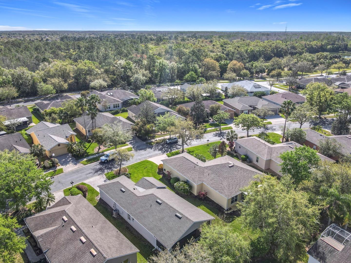 Charming Chardonnay model featuring 2 bedrooms and 1 bath with an OPEN FLOOR PLAN, vaulted ceilings, and abundant natural light. A huge EXTENDED and COVERED lanai extends the full length of the home, offering a perfect space for relaxation or entertaining, complete with privacy trees and hedges for a secluded retreat. ROOF was replaced in 2016. The living and dining room combination boasts lush carpet, creating a cozy atmosphere. The kitchen is well-appointed with tall cabinets, HARDWOOD flooring, Formica countertops, a closet pantry, and a BREAKFAST BAR overlooking the dining area, making it easy to engage with guests. The PRIMARY SUITE includes a spacious walk-in closet and an attached ensuite bath with a tub and shower combination and raised vanities, conveniently accessible from the hallway for guests staying in the second bedroom located toward the front of the home. This home also features a one-car garage with a dedicated laundry area and additional storage space for your washer and dryer, which are included in sale. The newly painted one-car garage is spacious enough to accommodate a vehicle and two golf carts. HVAC replaced in 2016. EXTERIOR PAINTED IN 2020. Call today to schedule your private viewing of this perfect starter home for someone seeking an active lifestyle in a vibrant community filled with endless amenities and activities to enjoy! Solivita's amenities include: - a manicured SOFTBALL diamond & field - 36 holes of CHAMPIONSHIP GOLF that can be played by joining the Stonegate Golf Club or paying as you go - 2 STATE of the Art AMENITY centers with updated exercise equipment, yoga studio & meeting rooms - 3 restaurants - 14 HEATED POOLS - 17 PICKLEBALL courts - 9 TENNIS courts - 4 BOCCE BALL courts - 4 SHUFFLEBOARD courts - 3 HORSESHOE pits - a BILLIARDS room - miles of bike paths - 2 DOG PARKS (Small & Large Dogs) - Corn Hole - Tot Lot PLAYGROUND - COMMUNITY GARDEN - over 250 resident clubs. The HOA: - maintains the LANDSCAPING & IRRIGATION systems in the common areas as well as at individual homesites - maintains the roads throughout the community - PROVIDES SECURITY with gate guards and mobile patrols including the Polk County Sheriff - allows AUTOMATED GATE ACCESS for residents via license plate readers - provides residents with Fiber Optic Internet & TV service.***Poinciana Lakes Plaza is a MAJOR NEW SHOPPING CENTER that opened directly across from the Solivita Main Gate in Summer of 2024. It features Sprouts Grocery, TJ MAXX, Ross, Burlington, Rack Room Shoes, 5 Below, Ulta, Outback, First Watch, 5 Guys, Urgent Care, Dentist, TD Bank, Petco & Hair Cuttery PLUS MORE TO COME.***