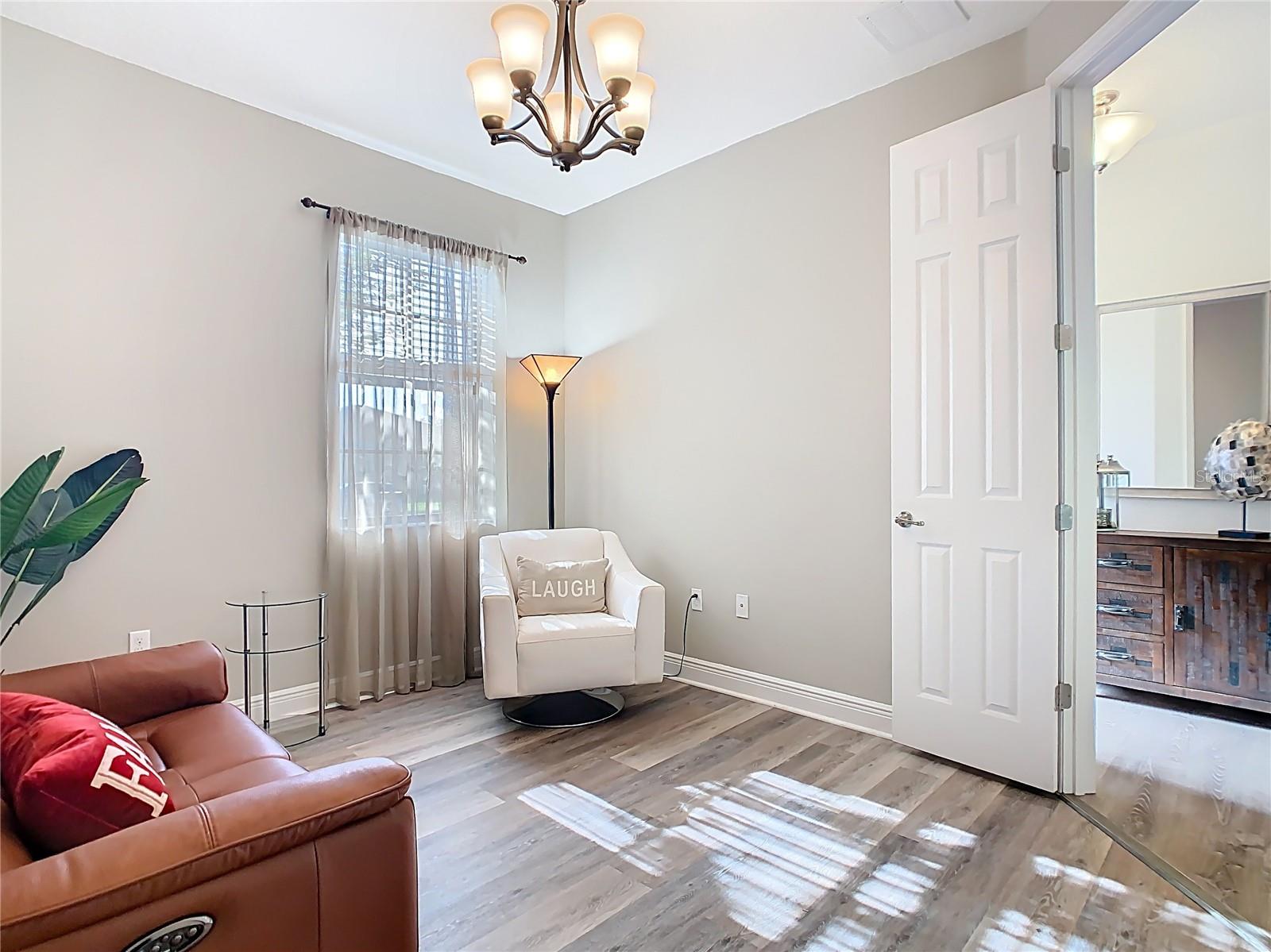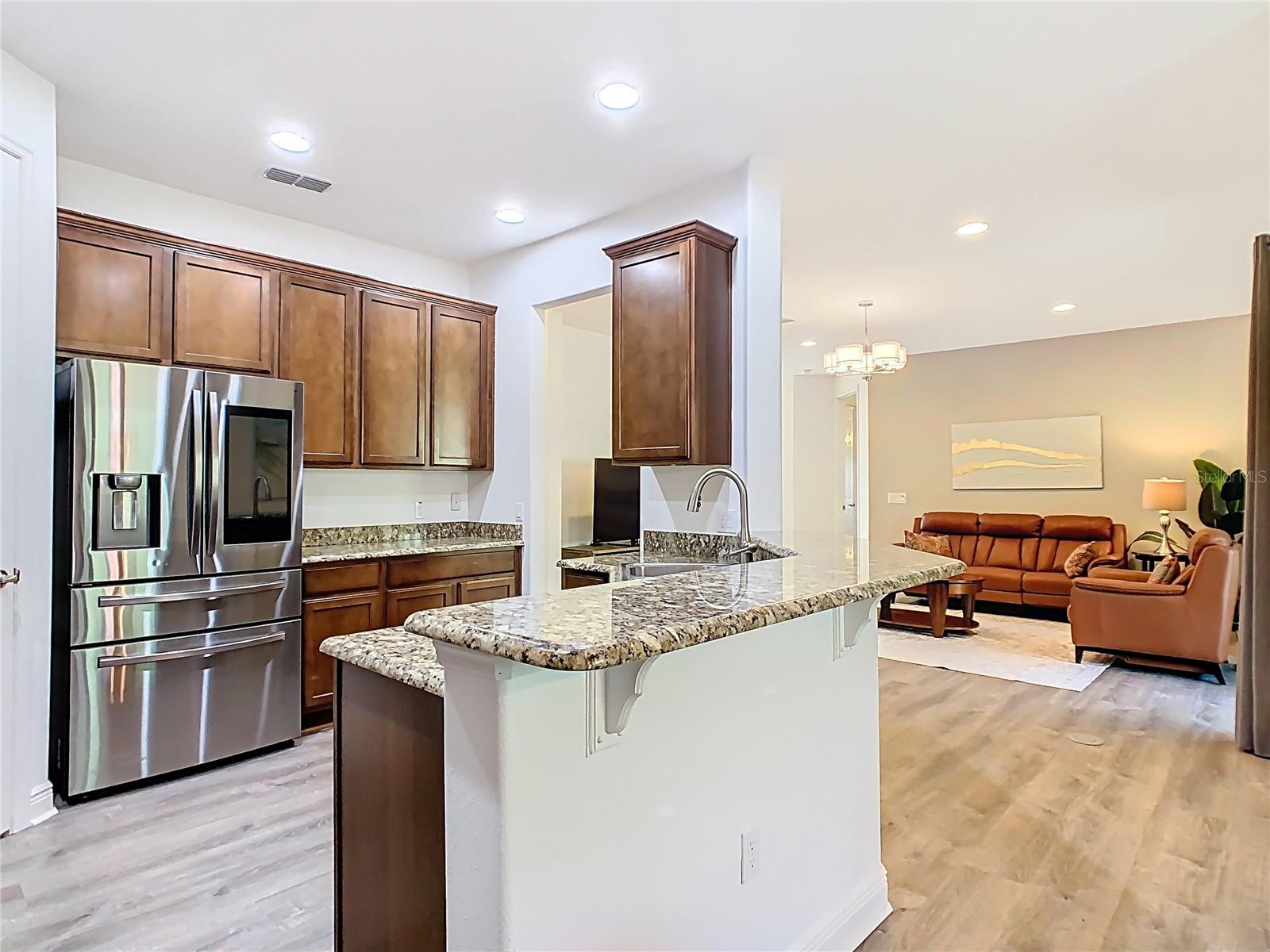 Welcome to this WELL MAINTAINED Tangier Model in the Valencia Subdivision of the 55+ community called Solivita. This home is a TURNKEY, on a CONSERVATION LOT, and features a SCREENED Front Porch, a TERMITE BOND, 18" CERAMIC TILE on the DIAGONAL, Vinyl Plank flooring in both bedrooms and the den, 8' doors, ROUNDED CORNERS, and 5 1/4" tall baseboards. Energy Insulation Package with sealed soffits, SPRAY FOAM insulation in attic ceiling, DUAL PANE windows and sliders, EXTERIOR PAINTED in 2020, WINE REFRIGERATOR in dining area, and blinds and curtains throughout. KITCHEN features GRANITE counters, 42" upper cabinets with crown molding, PULL OUT drawers, refrigerator with TV screen, and walk-in PANTRY. OWNER'S SUITE includes GRANITE COUNTERS and DUAL SINKS, plus a WALK-IN CLOSET. The GUEST BEDROOM features a walk-in CLOSET, and the SECOND Bathroom has Corian counters. Enjoy the SERENE VIEW in the extended and screened LANAI. Included in the sale is a Plug and Play HOT TUB, FIRE PIT, Lanai FURNITURE, mini REFRIGERATOR, CHAR BROIL Grill, privacy CURTAINS, a GENERATOR, gas powered PRESSURE WASHER, Leather Sofa, Loveseat, and Chair which all recline, adjustable KING SIZE bed, adjustable FULL SIZE bed, Lighted Entertainment Unit, all other furniture, 55" Samsung TV, and 45" Vizio TV. HVAC was replaced in 2023, and the garage floor has EPOXY. Solivita is an active community. Enjoy your active years in this piece of paradise. Solivita's amenities include: - a manicured SOFTBALL diamond & field - 36 holes of CHAMPIONSHIP GOLF that can be played by joining the Stonegate Golf Club or paying as you go - 2 STATE of the Art AMENITY centers with updated exercise equipment, yoga studio & meeting rooms - 3 restaurants - 14 HEATED POOLS - 17 PICKLEBALL courts - 9 TENNIS courts - 4 BOCCE BALL courts - 4 SHUFFLEBOARD courts - 3 HORSESHOE pits - a BILLIARDS room - miles of bike paths - 2 DOG PARKS (Small & Large Dogs) - Corn Hole - Tot Lot PLAYGROUND - COMMUNITY GARDEN - over 250 resident clubs. The HOA: - maintains the LANDSCAPING & IRRIGATION systems in the common areas as well as at individual homesites - maintains the roads throughout the community - PROVIDES SECURITY with gate guards and mobile patrols including the Polk County Sheriff - allows AUTOMATED GATE ACCESS for residents via license plate readers - provides residents with Fiber Optic Internet & TV service.***Poinciana Lakes Plaza is a MAJOR NEW SHOPPING CENTER that opened directly across from the Solivita Main Gate in Summer of 2024. It features Sprouts Grocery, TJ MAXX, Ross, Burlington, Rack Room Shoes, 5 Below, Ulta, Outback, First Watch, 5 Guys, Urgent Care, Dentist, TD Bank, Petco & Hair Cuttery PLUS MORE TO COME.***