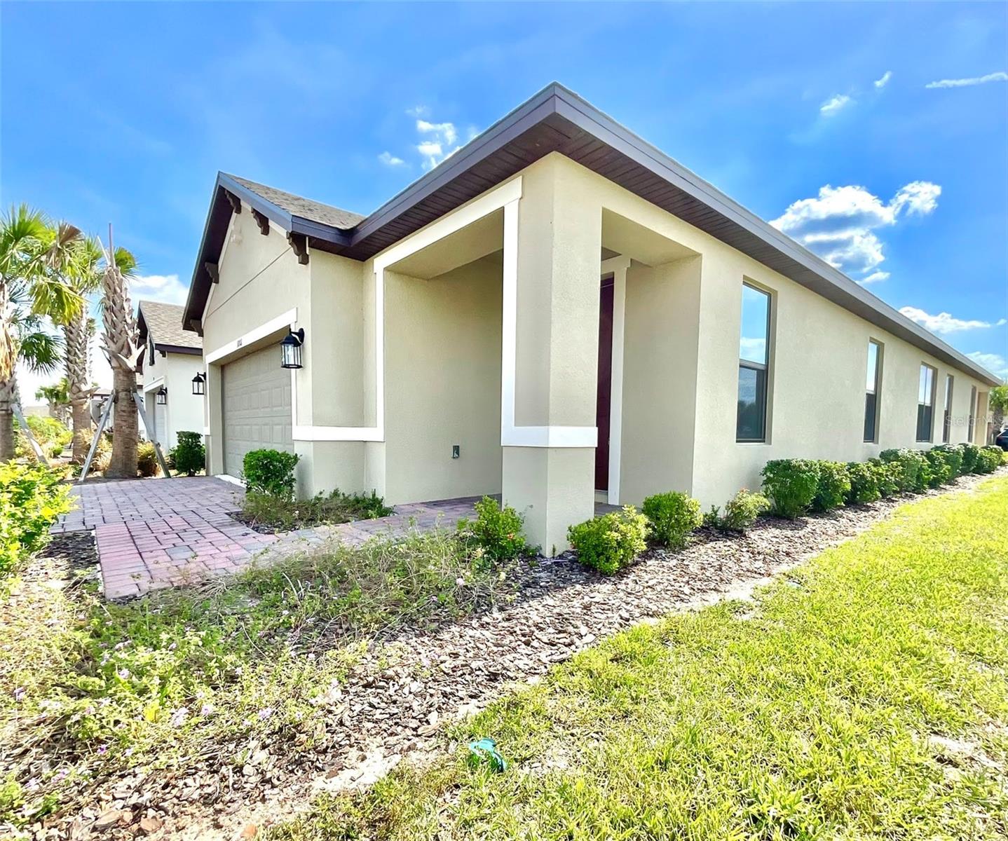 "Why wait to build? This immaculate 2023 Magari model on a premium corner lot has barely been lived in and shows like new! Features include 2 bedrooms, 2 baths, a versatile flex room, 2 walk-in closets in the primary suite, a modern kitchen with granite countertops & stainless steel appliances, and an open lanai perfect for relaxing or entertaining. Located in Solivita, a gated 55+ community offering a true resort lifestyle: fitness centers, 14 heated pools, golf, pickleball, tennis, billiards, over 200 clubs, dog parks, and walking trails. Basic cable and lawn care included. Whether you’re looking for a full-time residence or seasonal retreat, this home is your gateway to active, carefree living. Move-in ready and better than new! Buyer has the option to add privacy hedges in the backyard at their own expense.