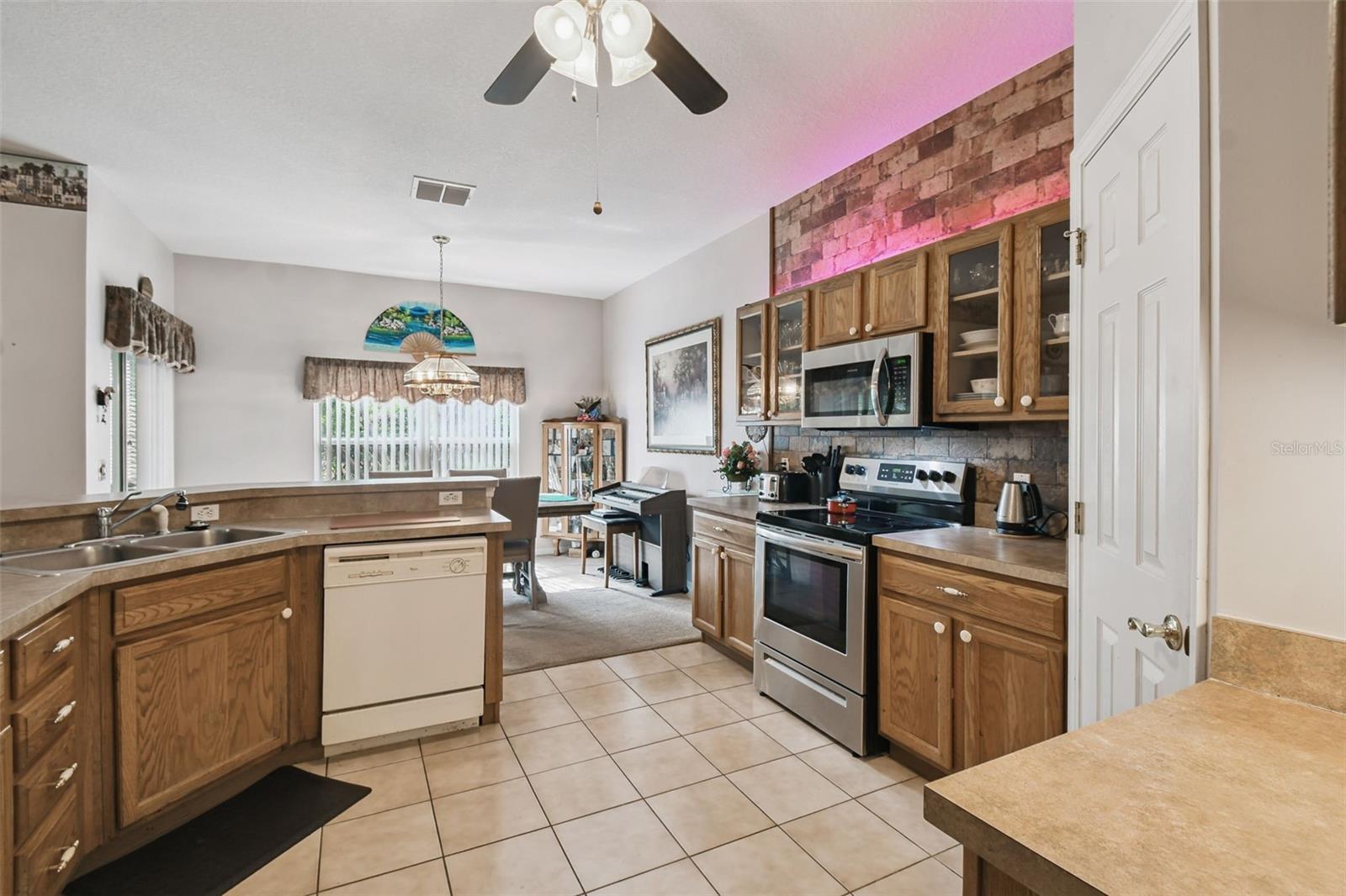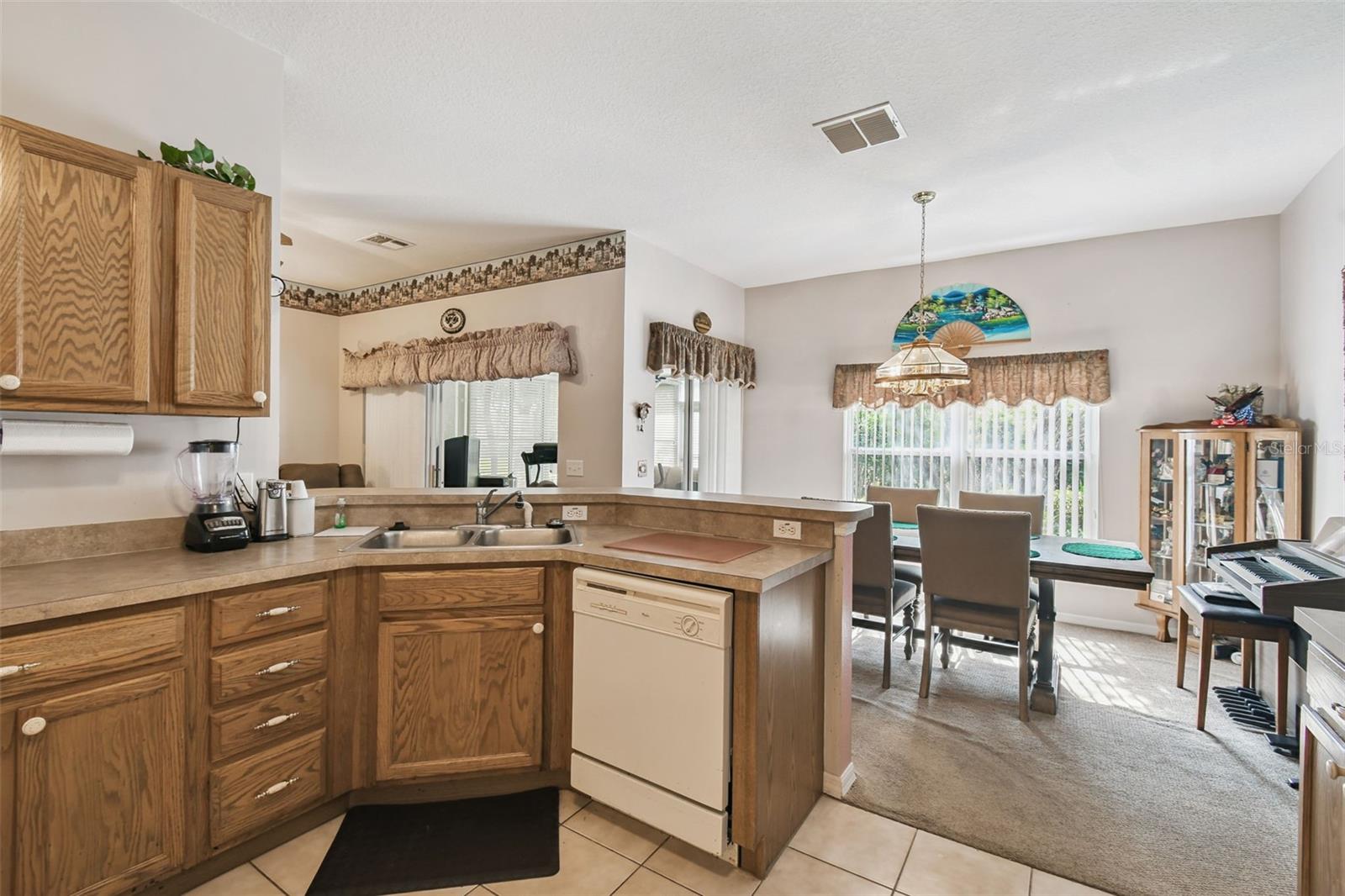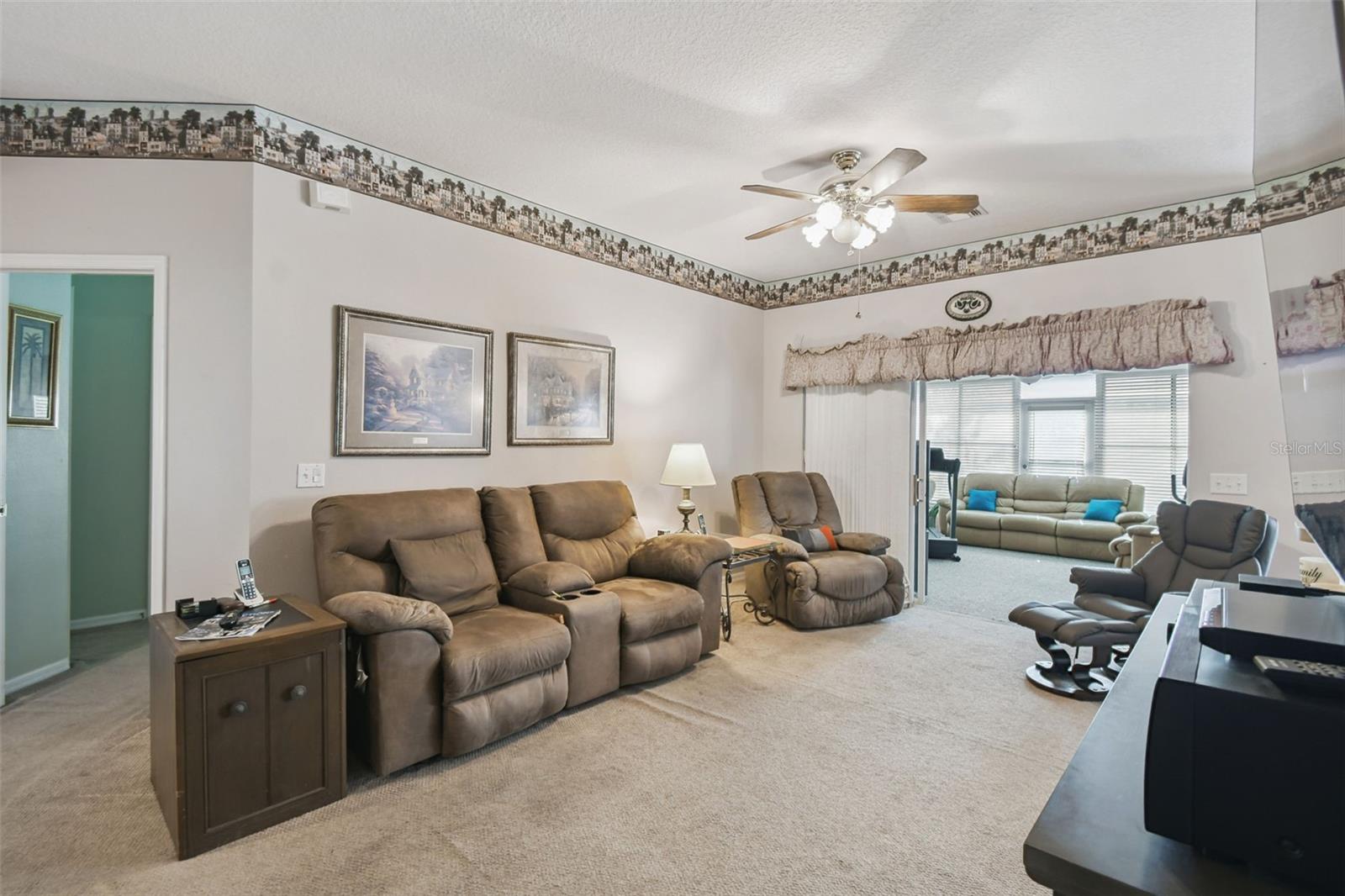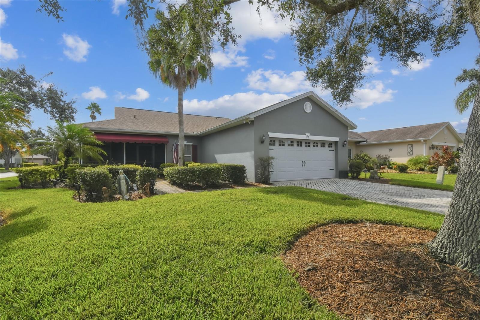 Set on a large corner lot just minutes from the Village Center and within walking distance to the neighborhood pool, this popular Allegro model combines comfort, style, and convenience. Enter through the screened front porch and leaded glass entry door into an inviting open floor plan. The kitchen features custom cabinetry and a bright dining area filled with natural light. An extended, enclosed 4-season lanai with its own Honeywell AC unit offers the perfect space to relax year-round. The spacious primary suite includes a bay window bump-out and an en-suite bath with a soaking tub. A second bedroom, located on the opposite side of the home, sits next to a full guest bath with a walk-in shower. A versatile den/study and a two-car garage provide added flexibility. Recent Updates & Features: New Roof (July 2024) Rheem 2-Ton HVAC (Sept 2019), Ultraviolet Light in Air Handler (March 2025) Transferable Select Home Warranty Plan. This well-maintained home offers modern upgrades and a thoughtful layout in a prime location close to amenities. All this in one of the top 55+ communities in America. Solivita offers residents access to state of the art amenities and work out facilities, dance and aerobics studios, a business center, 14 heated swimming pools, 2 heated spas, tennis courts, pickleball courts, shuffleboard, bocce ball, billiards room, art gallery, 3 restaurants and 2 championship 18-hole golf courses, driving range and putting course. Every day offers something new to explore and enjoy! This home also features easy access to nearby shops, dining, and health care, offering the perfect balance of privacy and lifestyle. Don't miss out on the opportunity to have a first class lifestyle.