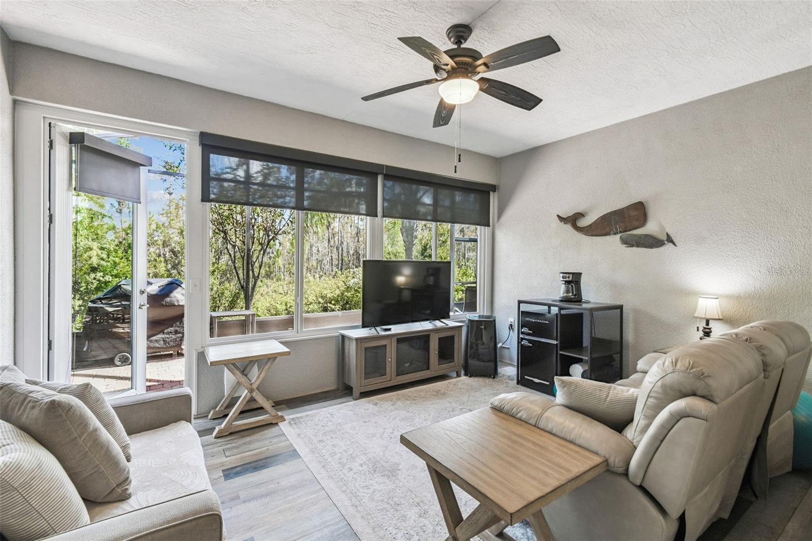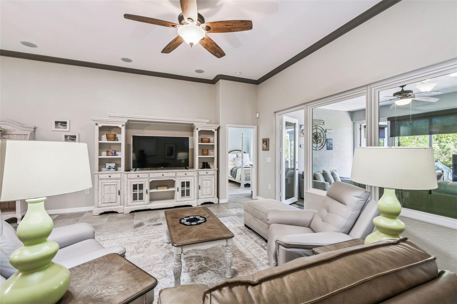 Exceptional Custom Home with Dual Primary Suites & Tranquil Conservation Views Experience luxury and thoughtful design in this stunning custom Calto model, featuring two primary bedroom suites, a large study, and an enclosed Florida Room that seamlessly blends indoor comfort with outdoor serenity. Nestled on a large corner lot with peaceful conservation views, this home offers the perfect retreat for those who appreciate elegance and privacy. The open-concept layout welcomes you with leaded glass entry doors. The solar tubes and huge windows in the Great Room bathe the interior in natural light. The elegant 20" x 20" slate-look porcelain tile flows beautifully throughout, complemented by easy-care laminate in the Florida Room. The chef’s gourmet kitchen is a true showpiece, featuring a massive island, double ovens, cooktop, quartz countertops, a large walk-in pantry, and custom cabinetry with thoughtful storage solutions including pull-out drawers and a built-in waste bin. Both primary suites boast private en-suites, while guests enjoy a separate full bath with vanity. Additional highlights include volume ceilings, framed mirrors, upgraded lighting and plumbing fixtures, central vacuum system, soft water system, laundry room with utility sink, and wired surround sound in both the Great Room and Florida Room. Outdoor living is just as inviting with a screened front entry, expansive screened lanai, and a newly enclosed year-round Florida Room (Superior Aluminum Company, 2025) with panoramic conservation views. The 2-car plus golf cart garage offers ample storage for both vehicles and leisure equipment. Recent upgrades include: New Lennox high-efficiency A/C with Ecobee Smart Thermostat (2024) Whirlpool double-door refrigerator with bottom freezer (2024) New Hot Water Heater (2025) Double custom privacy doors for third bedroom (2024) Enclosed year-round den/family room (2025) Motion-detected exterior lighting (front, left, right, 2025) Fenced paver patio with gate – perfect for pets (2025) Custom master closet with drawers, shelving & shoe rack New smoke detectors installed The solar panels (completely paid) provide EXTREMELY low electricity bills adding huge monthly savings to your budget. Every element of this home reflects pride of ownership and attention to detail. Relax, entertain, and enjoy the beauty of Solivita living surrounded by nature and luxury.
