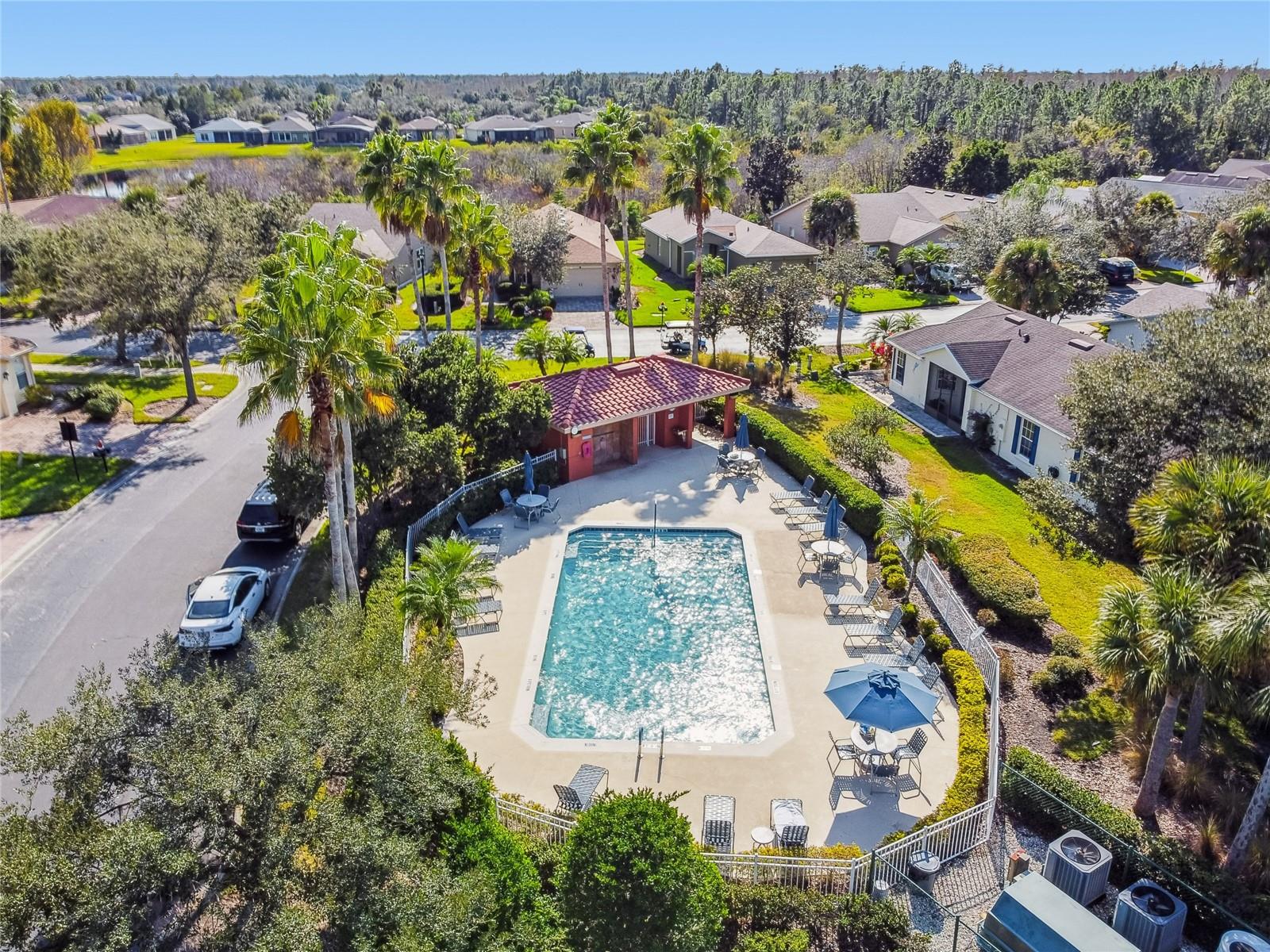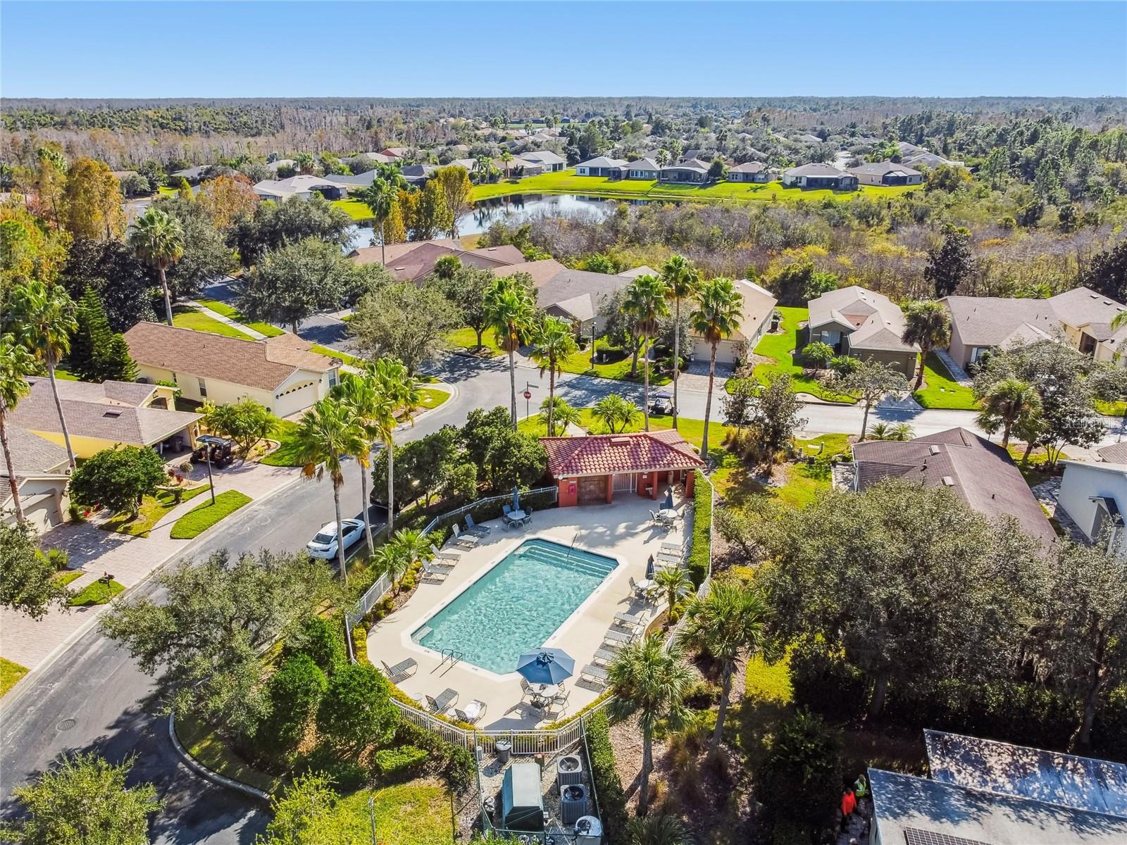 Lovely Zinfandel model situated on a desirable CONSERVATION lot and conveniently located across from the neighborhood pool. NEW ROOF installed in 2022. This charming 2-bedroom, 2-bath home features VAULTED ceilings that fill the space with natural light, engineered hardwood flooring throughout, and ceramic tile in all wet areas. The open living and dining area is perfectly designed for entertaining, with sliding glass doors leading to an expansive lanai overlooking the lush conservation setting. The kitchen offers GRANITE countertops, a classic SUBWAY TILE backsplash, STAINLESS STEEL APPLIANCES, a single-bowl sink, and a closet pantry. A BREAKFAST BAR overlooks the dining area, making it ideal for hosting and socializing with guests. The primary bedroom includes a WALK-IN CLOSET, linen closet, and a private ENSUITE BATH with a tub/shower combination. A SCREENED and COVERED lanai runs the full length of the home, creating the perfect retreat for enjoying a good book or hosting family and friends. Additional highlights include new WATER HEATER INSTALLED 2019, HVAC in 2018, new GARAGE DOOR MOTOR installed in 2024, dual pane windows and STORM DOOR.Don’t miss the opportunity to own this wonderful home in a vibrant 55+ community, offering endless opportunities to stay active, make new friends, and enjoy an engaging lifestyle.**See the FULL LENGTH 3D MATTERPORT VIDEO on Tour Link 1. ** The HOA: - maintains the LANDSCAPING & IRRIGATION systems in the common areas as well as at individual homesites - maintains the roads throughout the community - PROVIDES SECURITY with gate guards and mobile patrols including the Polk County Sheriff - allows AUTOMATED GATE ACCESS for residents via license plate readers - provides residents with Fiber Optic Internet & TV service.***Poinciana Lakes Plaza is a MAJOR NEW SHOPPING CENTER directly across from the Solivita Main Gate. It features Sprouts Grocery, TJ MAXX, Ross, Burlington, Rack Room Shoes, 5 Below, Ulta, Outback, First Watch, 5 Guys, Panda Express, Bojangles, Jersey Mike's Subs, 5 Guys, Papa John's Pizza, Burrito Bar, Cold Stone Creamery, Urgent Care, Dentist, Hand & Stone Massage, America's Best Eyeglasses, Crunch Fitness, Hair Cuttery, Petco, TD Bank, Verizon Mobile, PLUS MORE TO COME.***