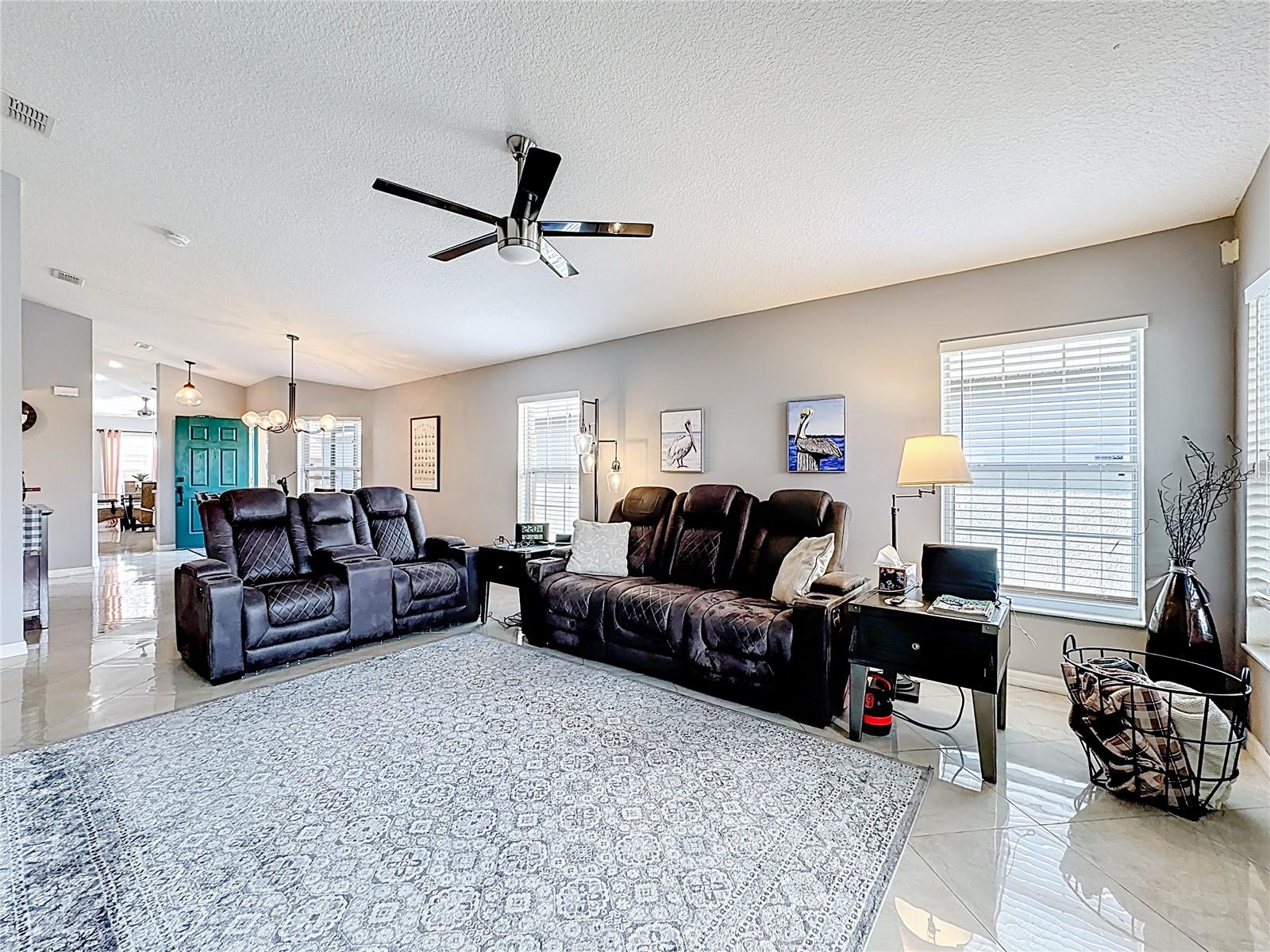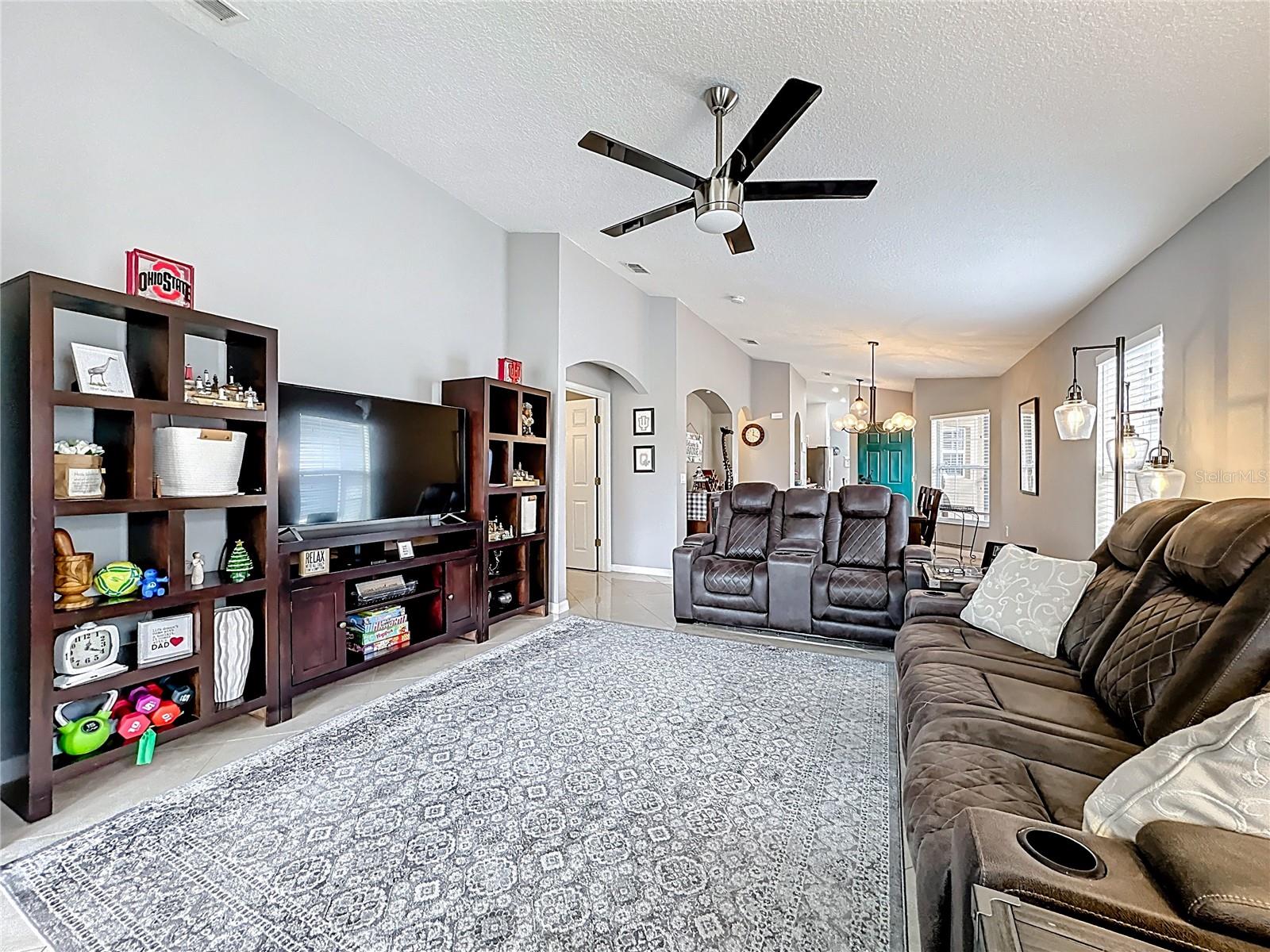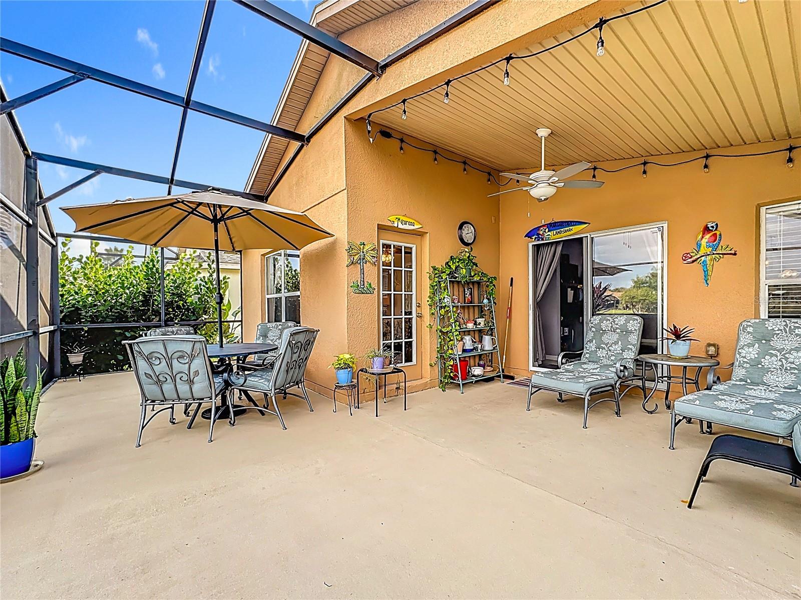 Open concept FURNISHED stone front Bordeaux model has vaulted ceilings with a sweeping waterfront view which gives the ambiance you are looking for in a Florida home. The Great Room & adjoining Dining Room allow you to entertain on the over 500 Sq.Ft. covered & open screened lanai. A Primary Suite with views to the water is a king-sized room with adjoining bathroom that has a shower with two seats, dual closets, large vanity & private access to lanai. The second bedroom & adjacent bath with shower & tub is perfect for guests. The den is a multipurpose room that can function as an extra bedroom, office or media room. This home also has a custom front 15.5 x 13.5 stone patio making entertaining anywhere in this home easy & fun! The large kitchen & dinette area is perfect for 2 chefs & has stainless steel appliances with plenty of counter space. An inside laundry with access to the garage that fits a full-sized car & golf cart as well as a workshop features epoxy flooring, pulldown stairs & beverage refrigerator. The home features a 2023 HVAC, 2015 HWH & 2016 Roof. Solivita is an active adult 55+ community located in Poinciana, Florida. It is approximately 50 minutes from Disney World & Orlando International Airport. Solivita has a total of 5,470 homes. Enjoy your active years in this paradise. Solivita's amenities include a softball diamond & field - 36 holes of championship golf that can be played by joining the Stonegate Golf Club or paying as you go - 2 State of the Art Amenity Centers with updated exercise equipment, yoga studio & meeting rooms - 3 restaurants - 14 heated pools - 17 pickleball courts - 9 tennis courts - 4 bocce ball courts - 4 shuffleboard courts - 3 horseshoe pits - a billiards room - miles of bike paths - 2 dog parks (Small & Large Dogs) - Corn Hole - Tot Lot playground – community garden - over 250 resident clubs. The HOA: - maintains the LANDSCAPING & IRRIGATION systems in the common areas as well as at individual homesites - maintains the roads throughout the community - PROVIDES SECURITY with gate guards and mobile patrols including the Polk County Sheriff - allows AUTOMATED GATE ACCESS for residents via license plate readers - provides residents with Fiber Optic Internet & TV service. Poinciana Lakes Plaza is a new shopping center directly across from the Solivita Main Gate. It features Sprouts Grocery, TJ MAXX, Ross, Burlington, Rack Room Shoes, 5 Below, Ulta, Outback, First Watch, 5 Guys, Panda Express, Bojangles, Jersey Mike's Subs, 5 Guys, Papa John's Pizza, Burrito Bar, Cold Stone Creamery, Urgent Care, Dentist, Hand & Stone Massage, America's Best Eyeglasses, Crunch Fitness, Hair Cuttery, Petco, TD Bank, Verizon Mobile, PLUS MORE TO COME. A 2022 STAR Sirius 5 4-seater GOLF CART with a lithium battery is available for sale under separate contract. This home offers move in ready convenience, just pack your clothes & come to Solivita!