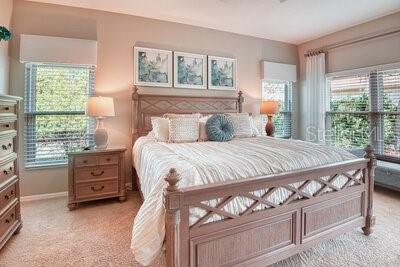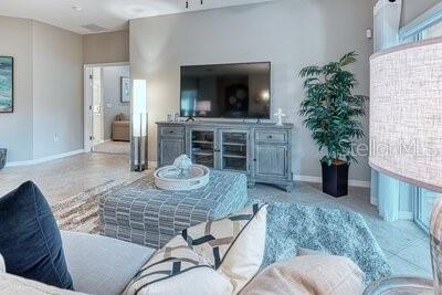 Beautiful SAVOY model, enter this home through a large FOYER with CERAMIC TILE throughout the main living areas & in to the OPEN FLOOR PLAN. The Eat-in kitchen affords WOOD cabinets with lower pull out drawers, CAST IRON double sink, closet pantry, BREAKFAST BAR which easily seats four & is great for entertaining. There's a full LAUNDRY RM with Washer/Dryer, Utility sink & large storage/2nd Pantry closet. The home has improvements such as a Neutral Paint color throughout the interior, Custom window treatments, Ceiling Fans, Blink security camera system with 3 outside cameras & 1 inside camera, New DOUBLE PANE energy efficient low-e glass windows installed in 2022, NEW TRANE AC installed in 2024 with new thermostat which has WIFI capability & newer WATER HEATER. The home has a transferrable Massey Pest Control home warranty thru June 2026. Rear screened LANAI great for relaxing with your morning coffee or afternoon tea. The PRIMARY SUITE affords plush carpeting, a Study/Sitting area creates privacy from the bedroom to the ENSUITE BATHROOM which has DUAL Sinks, Raised Solid surface countertops with Make-Up vanity, Walk-in Shower & Jetted Tub. The SPLIT Floor Plan provides ample privacy with the other 2 BEDROOMS, connected by a Jack-and-Jill Bathroom, which is ideal for guests. Located off the Laundry room is access to the Side Entry Two Car Garage with electric garage door opener, attic scuttle & ample brick paved driveway. This home is in move-in condition. Enjoy morning & afternoon walks around the Shorehaven Lake. Experience the 55+ Lifestyle SOLIVITA has to offer with countless Amenities, Clubs & Social activities. Call to see this home today. INCLUDED in the maintenance fee is the Landscaping, Irrigation system, Roaming security & Guard gate. Homeowners have access to the AUTOMATED gate entry via its license tag readers. Located across from the main entrance is a NEW Shopping facility complete with a Grocery store, Bank, multiple Restaurants, Walgreens Pharmacy, Hospital & more to businesses to come.