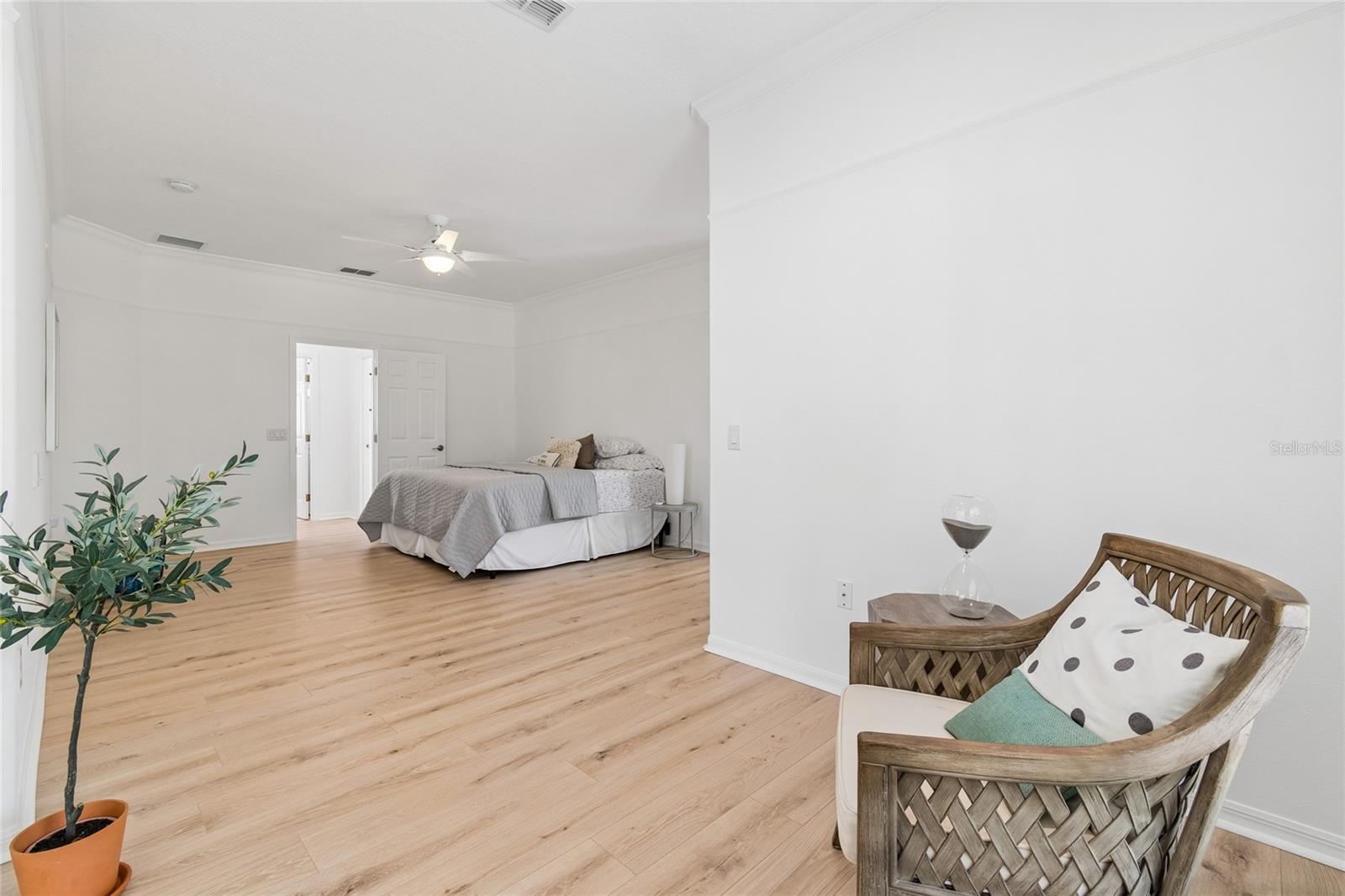One or more photo(s) has been virtually staged. Don’t miss the opportunity to own this stunning Bolero model featuring a RARE THREE-CAR GARAGE....an uncommon and highly desirable feature for this floor plan—perfectly situated on an expansive .33-ACRE FLAG LOT offering space, privacy, and exceptional curb appeal. This beautifully maintained home also includes a separate GUEST COTTAGE (casita) with its own private bath and GATED COURTYARD, creating the perfect retreat for guests or a versatile space ideal for a home office, media room, fitness area, or craft room. Inside, the home showcases CROWN MOLDING throughout and WATERPROOF LAMINATE flooring(2025) in most rooms, with CERAMIC TILE flooring in the kitchen. Major upgrades include a NEWER ROOF installed in 2016 and a top-of-the-line ALLINI WHOLE-HOUSE WATER FILTRATION SYSTEM (1200 series) installed in 2024. The OVERSIZED KITCHEN is ideal for entertaining, featuring CERAMIC TILE floors, rich wood cabinetry, newer STAINLESS-STEEL appliances (2024), and a spacious BREAKFAST BAR that opens to the dining area. In addition, the space is large enough to accommodate either an EAT-IN NOOK or kitchen island seating, offering flexibility for casual dining . The PRIMARY SUITE is a true retreat, complete with a separate SITTING ROOM, spa-style bath with DUAL SINKS, soaking tub, WALK-IN SHOWER, and TWO CUSTOM WALK-IN CLOSETS. The second bedroom features FRENCH DOORS that open to the peaceful private courtyard. Step outside to the covered lanai with vinyl windows and screens, perfect for relaxing while enjoying peaceful TREE-LINED wooded views. This generous sized lot offers plenty of room to extend the lanai or ADD a POOL, allowing you to create your own backyard oasis......this property offers the perfect blend of space, PRIVACY, and OUTDOOR POTENTIAL. The three-car garage features EPOXY FLOORING, OVERHEAD STORAGE RACKS, and built-in storage cabinets that convey with the sale. In addition, the LARGE DRIVEWAY provides ample space to accommodate multiple vehicles, making parking easy for both homeowners and guests. Additional upgrades include updated LIGHTING and FANS throughout and a casita HVAC system replaced in 2014. Homes with this LOT SIZE, a three-car garage, and private casita are incredibly hard to find—schedule your showing today before it’s gone! Located in the award-winning gated 55+ community of Solivita, this home offers the opportunity to enjoy one of Central Florida’s most vibrant active-adult lifestyles. Residents enjoy access to championship golf courses, multiple resort-style pools, state-of-the-art fitness centers, on-site dining, and miles of scenic walking and biking paths. The community also features tennis, pickleball, social clubs, entertainment, and countless activities designed to keep you as active and engaged as you’d like to be. Whether you’re looking to stay fit, meet new friends, or simply relax and enjoy beautiful surroundings, Solivita offers the perfect setting to start living the active lifestyle you deserve!! The HOA: - maintains the LANDSCAPING & IRRIGATION systems in the common areas as well as at individual homesites - maintains the roads throughout the community - PROVIDES SECURITY with gate guards and mobile patrols including the Polk County Sheriff - allows AUTOMATED GATE ACCESS for residents via license plate readers - provides residents with Fiber Optic Internet & TV service.