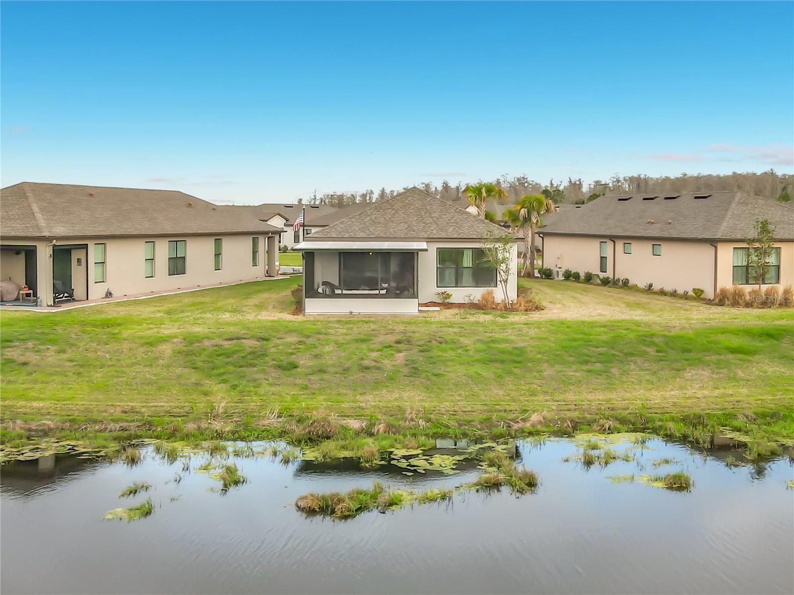 Welcome to this WELL MAINTAINED Salina Model located in the Varese subdivision of Solivita. ** See the FULL LENGTH VIDEO on Tour Link 1 ** This home was built in 2023 but SHOWS like a NEW home. Check out the amazing WATERVIEW. Two bedrooms, two bathrooms, 1,363 square feet, and MOVE-IN ready. Enter through the screened-in FRONT PORCH, and beautiful GLASS FRONT Door. Step into the OPEN CONCEPT design highlighted with eight foot doors, ceiling fans, CERAMIC TILE throughout ( NO CARPET), mini-blinds, CURTAINS, and a two car garage. The modern KITCHEN features Stainless Steel Appliances, QUARTZ Counters, a large ISLAND with room for bar stools, soft closed drawers, and a closed PANTRY. The adjacent GREAT ROOM enhances a TRAY CEILING, a built-in ENTERTAINMENT CENTER, and two sliders leading into the lanai. The PRIMARY BEDROOM is your private and quiet retreat and includes a WALK-IN Closet, Tray Ceiling, that awesome VIEW, and dual sinks in the PRIMARY BATHROOM. The split bedroom floor plan ensures privacy for guests with a generously sized SECOND BEDROOM and FULL BATHROOM. Separate LAUNDRY ROOM boasts a washer and dryer included in the sale. Enjoy Florida living from the screened and HARD ROOF covered LANAI. This Lanai is framed for WINDOWS. ***Solivita is an active adult 55+ community located in Kissimmee, Florida. It is approximately 50 minutes from Disney World & the Orlando International Airport. Solivita has a total of 5,470 homes. Enjoy your active years in this piece of paradise. Solivita's amenities include: - a manicured SOFTBALL diamond & field - 36 holes of CHAMPIONSHIP GOLF that can be played by joining the Stonegate Golf Club or paying as you go - 2 STATE of the Art AMENITY centers with updated exercise equipment, yoga studio & meeting rooms - 3 restaurants - 14 HEATED POOLS - 17 PICKLEBALL courts - 9 TENNIS courts - 4 BOCCE BALL courts - 4 SHUFFLEBOARD courts - 3 HORSESHOE pits - a BILLIARDS room - miles of bike paths - 2 DOG PARKS (Small & Large Dogs) - Corn Hole - Tot Lot PLAYGROUND - COMMUNITY GARDEN - over 250 resident clubs. The HOA: - maintains the LANDSCAPING & IRRIGATION systems in the common areas as well as at individual homesites - maintains the roads throughout the community - PROVIDES SECURITY with gate guards and mobile patrols including the Polk County Sheriff - allows AUTOMATED GATE ACCESS for residents via license plate readers - provides residents with Fiber Optic Internet & TV service.***Poinciana Lakes Plaza is a MAJOR NEW SHOPPING CENTER directly across from the Solivita Main Gate. It features Sprouts Grocery, TJ MAXX, Ross, Burlington, Rack Room Shoes, 5 Below, Ulta, Outback, First Watch, 5 Guys, Panda Express, Bojangles, Jersey Mike's Subs, 5 Guys, Papa John's Pizza, Burrito Bar, Cold Stone Creamery, Urgent Care, Dentist, Hand & Stone Massage, America's Best Eyeglasses, Crunch Fitness, Hair Cuttery, Petco, TD Bank, Verizon Mobile, PLUS MORE TO COME.***