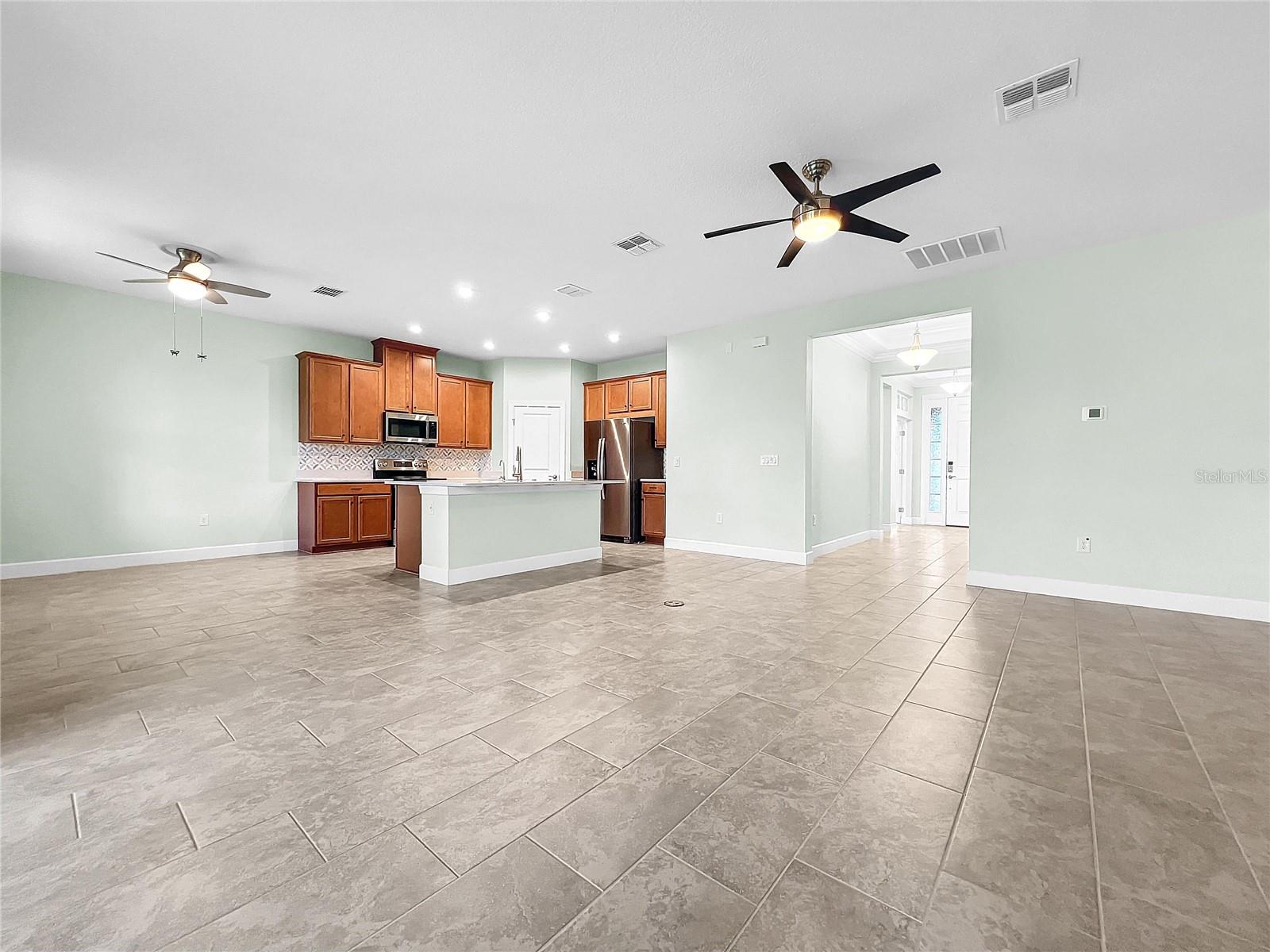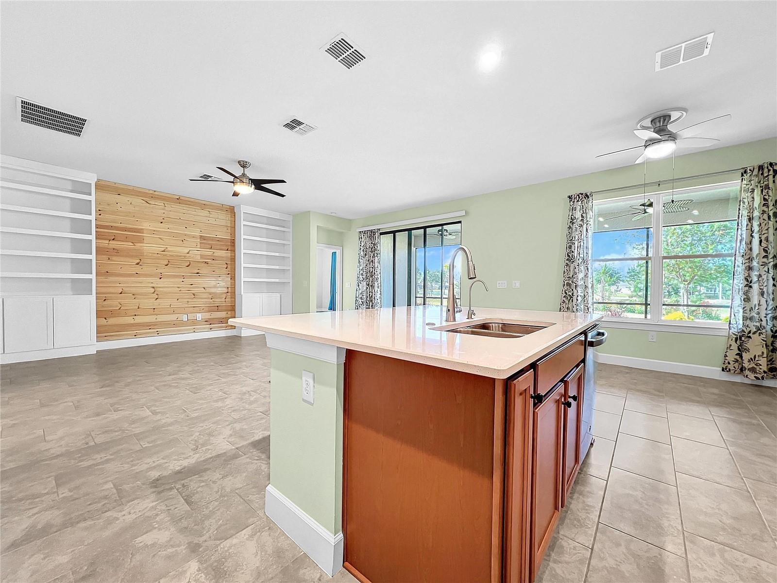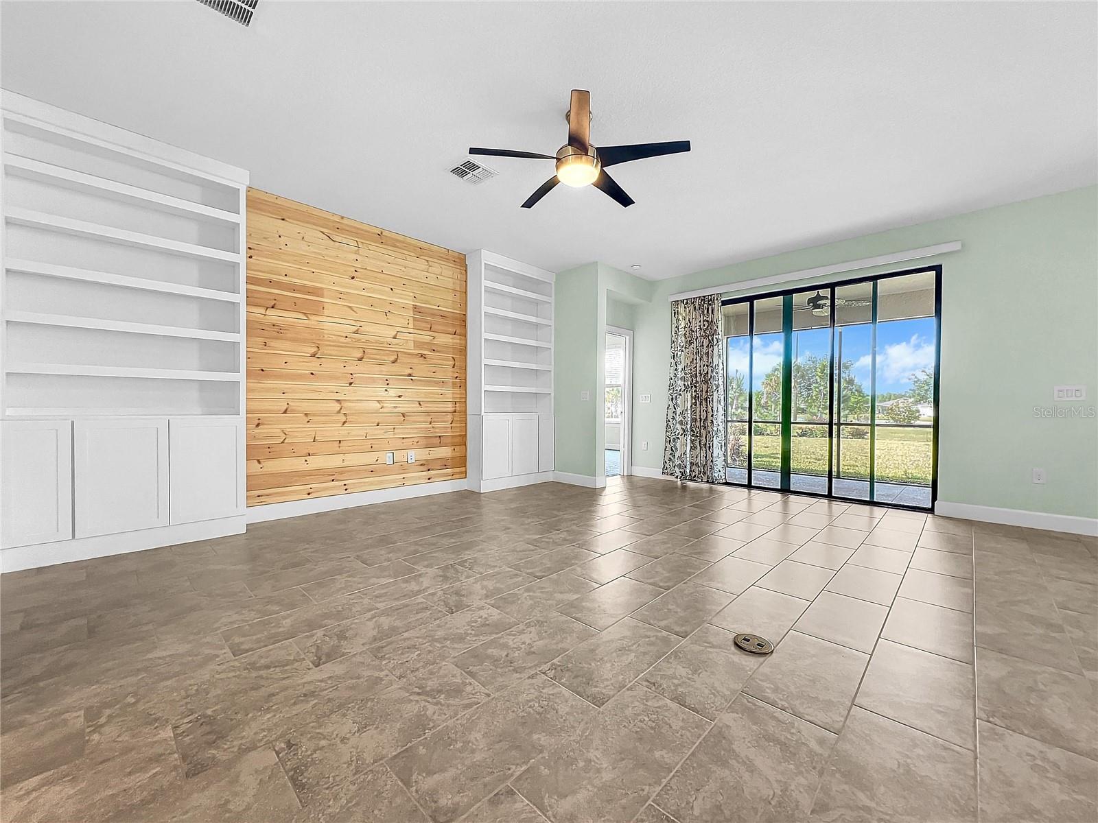 Discover the perfect blend of comfort, style, and convenience in this beautifully designed home in Solivita, a premier 55+ active adult community.** Nestled in a prime location with no rear neighbors, this home offers a peaceful setting with a distant lake view—just close enough to enjoy, yet far enough to keep nature’s critters at bay! Step inside to an inviting open-concept layout, where the spacious great room features a stunning custom accent wall with built-ins, creating the perfect focal point for relaxation and entertaining. The well-appointed kitchen boasts modern finishes and ample counter space, making meal prep a breeze for both casual dining and hosting guests. Designed with privacy in mind, the primary suite is set apart from the two front bedrooms, all of which include generous walk-in closets for plenty of storage. Natural light floods the home, enhancing its warm and welcoming ambiance. Enjoy Florida’s beautiful weather year-round with both front and back screened-in porches, ideal for catching a refreshing cross breeze during the cooler months. **Experience the ultimate active lifestyle in Solivita, where resort-style amenities await.** From championship golf courses (membership optional) to multiple pools, walking trails, a variety of social clubs, and wellness & spa services, there’s always something to do. This golf-cart-friendly, guard-gated community is conveniently located near shopping, medical facilities, and, of course, Orlando’s world-famous theme parks. Don’t miss the opportunity to make this exceptional home yours—schedule your private showing today!