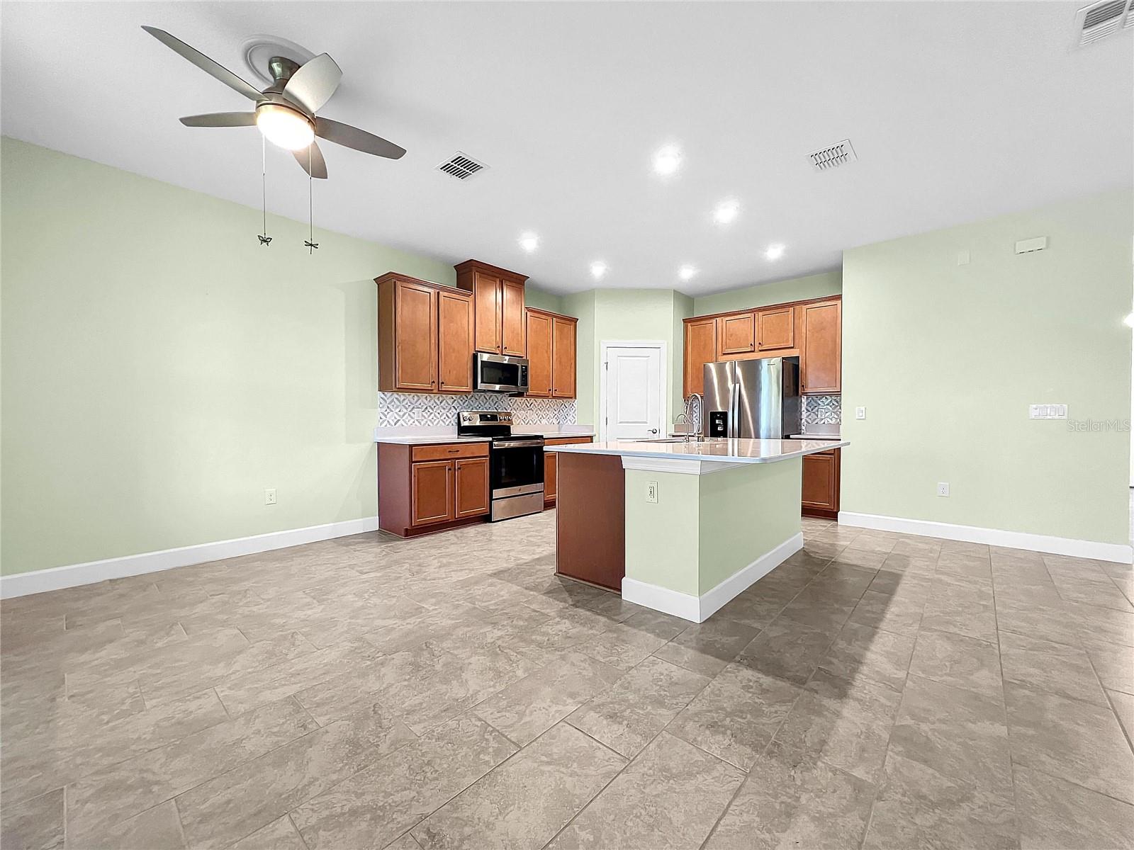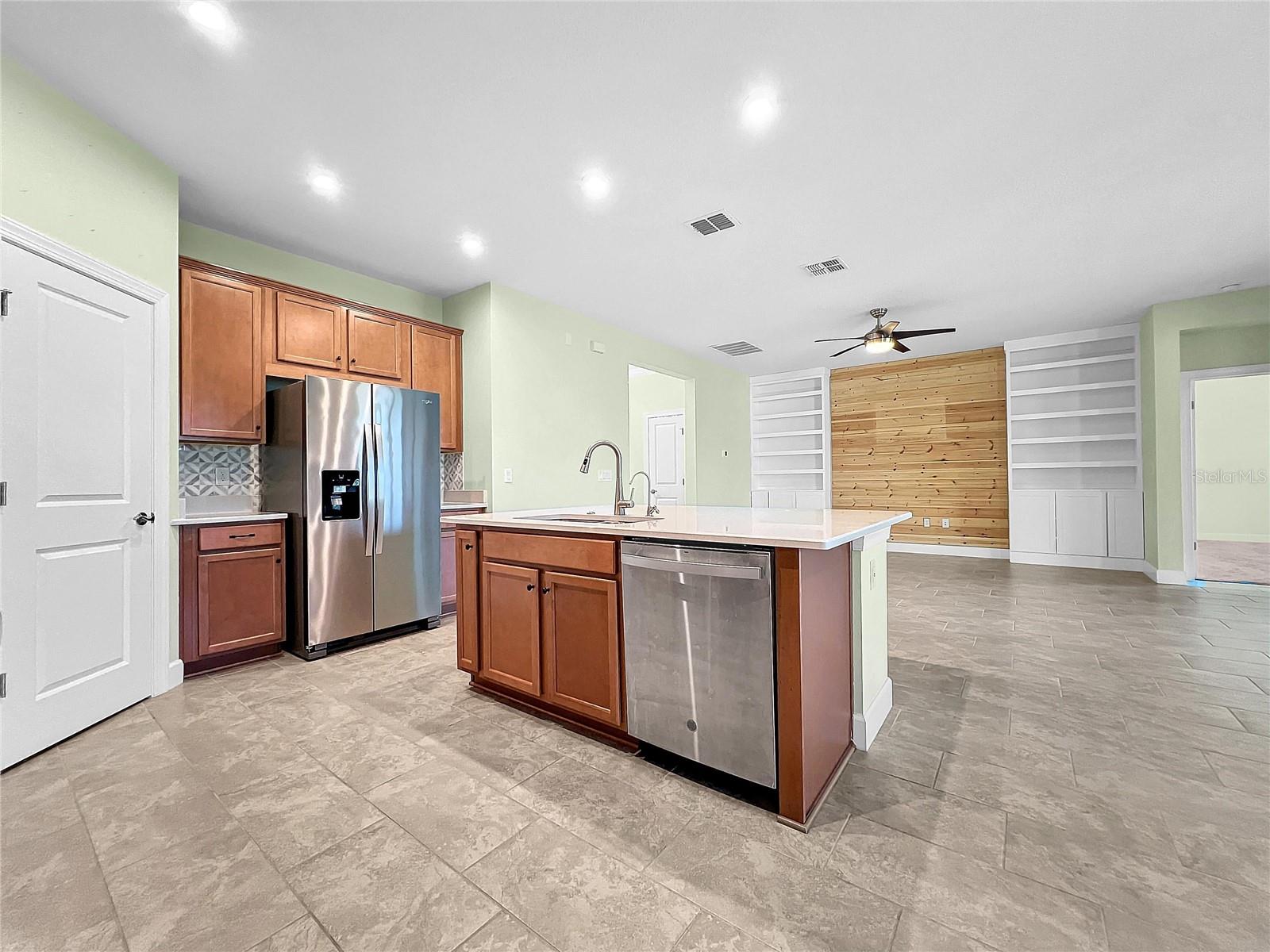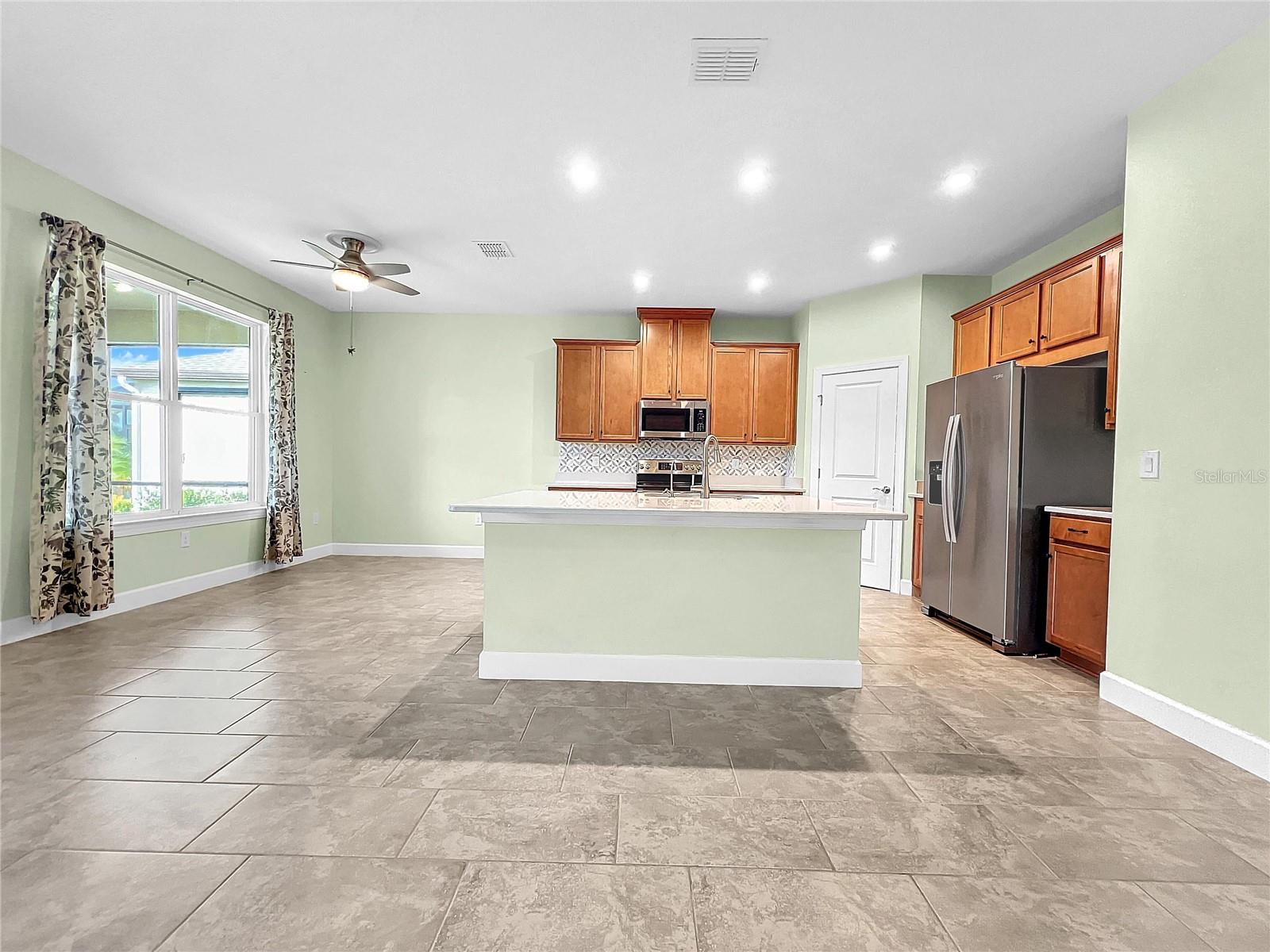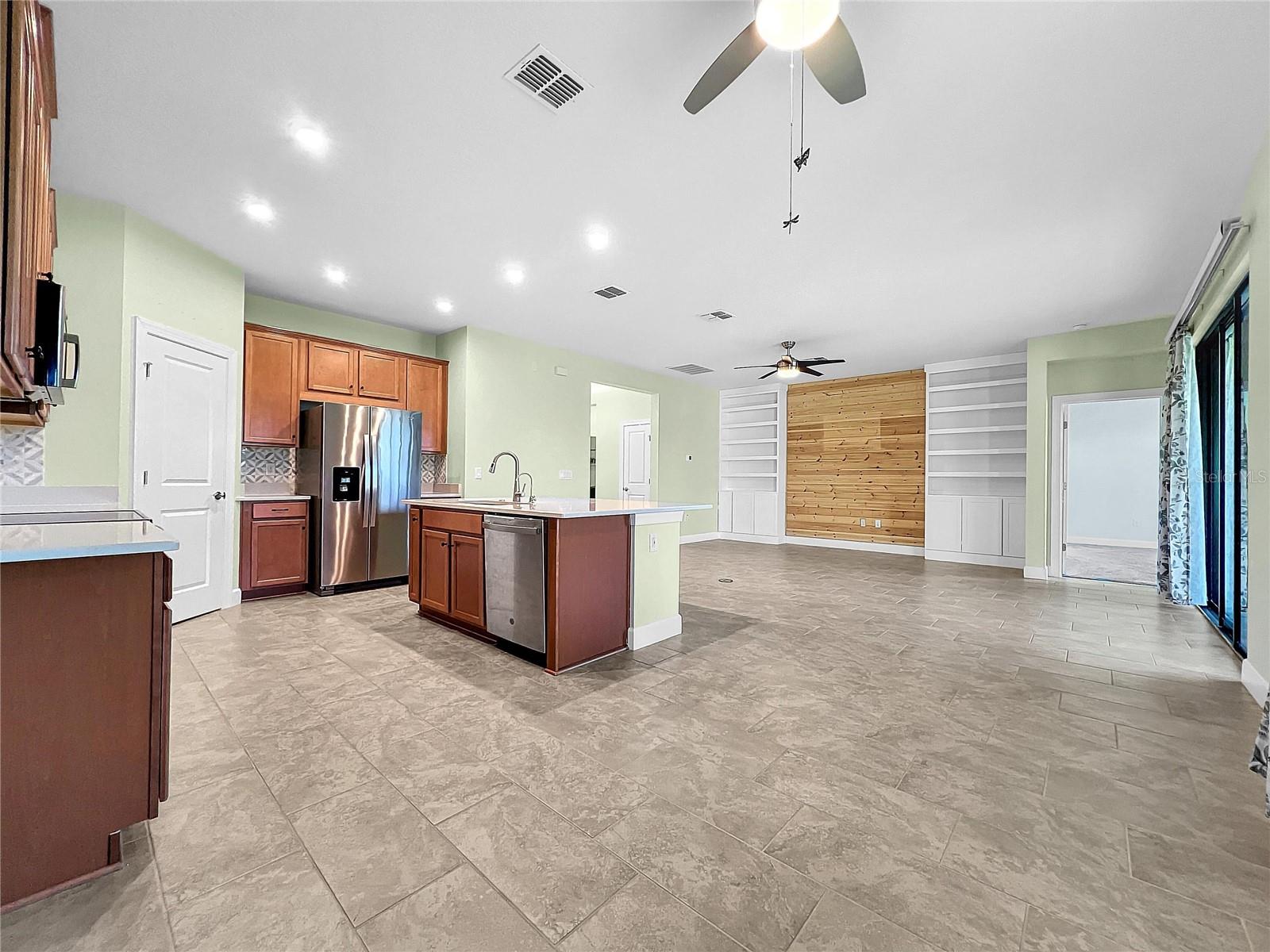 Discover the perfect blend of comfort, style, and convenience in this beautifully designed home in Solivita, a premier 55+ active adult community.** Nestled in a prime location with no rear neighbors, this home offers a peaceful setting with a distant lake view—just close enough to enjoy, yet far enough to keep nature’s critters at bay! Step inside to an inviting open-concept layout, where the spacious great room features a stunning custom accent wall with built-ins, creating the perfect focal point for relaxation and entertaining. The well-appointed kitchen boasts modern finishes and ample counter space, making meal prep a breeze for both casual dining and hosting guests. Designed with privacy in mind, the primary suite is set apart from the two front bedrooms, all of which include generous walk-in closets for plenty of storage. Natural light floods the home, enhancing its warm and welcoming ambiance. Enjoy Florida’s beautiful weather year-round with both front and back screened-in porches, ideal for catching a refreshing cross breeze during the cooler months. **Experience the ultimate active lifestyle in Solivita, where resort-style amenities await.** From championship golf courses (membership optional) to multiple pools, walking trails, a variety of social clubs, and wellness & spa services, there’s always something to do. This golf-cart-friendly, guard-gated community is conveniently located near shopping, medical facilities, and, of course, Orlando’s world-famous theme parks. Don’t miss the opportunity to make this exceptional home yours—schedule your private showing today!