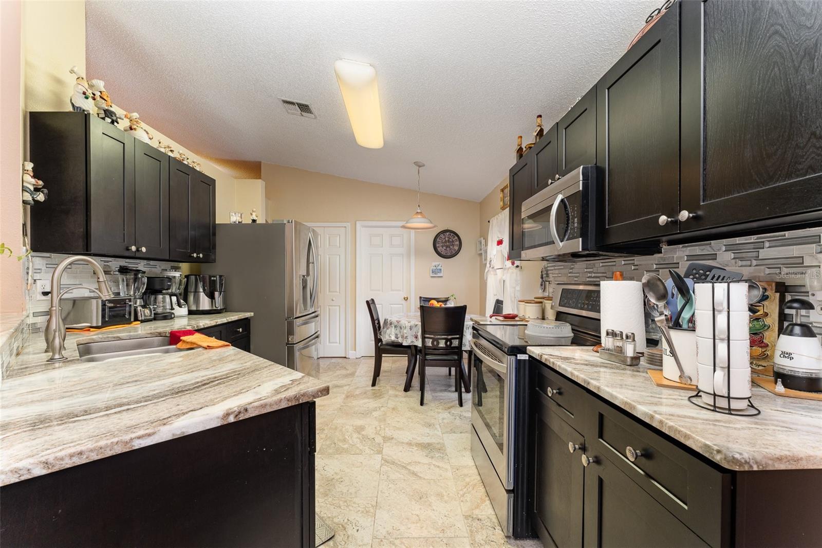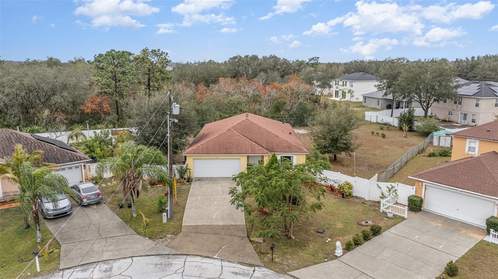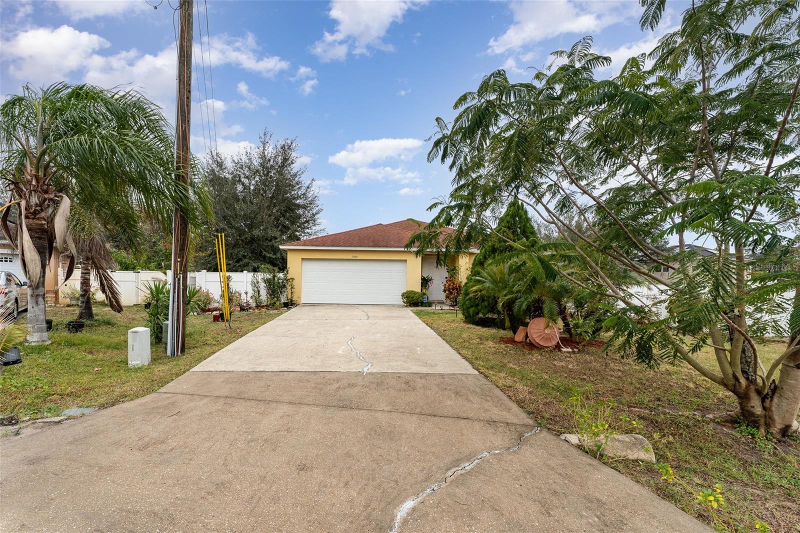TURNKEY READY - WELCOME HOME! Sitting on a private cul-de-sac with OVER 1/3 of an Acre, pie shaped Lot, one of the largest Lots in Poincciana, This BEAUTIFUL WELL-KEPT 4-bedroom, 2-bathroom, 2-car garage, home can also be configured as a 3-bedroom with a dedicated DEN/OFFICE space. As you enter the home, you can appreciate the GRAND, airy and inviting atmosphere of the High Vaulted Ceilings, a long Foyer leading you into the wide-open Family Room and Dining Room. This home boasts neutral colors with Tray Ceilings, GORGEOUS Laminate wood flooring throughout, an Open Floor Plan, a SPACIOUS, Updated Kitchen with plenty of cabinet space, all stainless-steel appliances with gorgeous GRANITE countertops and a Breakfast Bar overlooking the Family Room. Just off to the side of the Kitchen, is the Breakfast Nook/dinette area. You will appreciate the OVERSIZED master bedroom featuring a Master en-suite with dual sinks, deep soaking Garden Tub, Walk-in Shower and a HUGE walk-in closet. The other bedrooms are just as roomy, each with its own closet. The open-concept interior provides the perfect space for gatherings. This home has many upgrades, including an Alarm System, 2024 Water Softener, additional Insulation installed to promote a low cost electric bill, Roof and AC replaced in 2019. Outside, you'll find a large fenced-in backyard with fruit trees and beautiful landscaping through-out. The front yard is just as impressive, with a large driveway and an inviting front porch. Located in the desirable Poinciana Villages, you'll be surrounded by beautiful parks with boating ramps, picnic grounds, hiking trails, exercise facilities, including the Aquatic Center, the Disney Wilderness Preserve nature trail and just minutes away from Poinciana Town Center and Hospital. The community features an event center, park, and two pools all included in your HOA. This immaculate home is packed with desirable features offering a lifestyle of comfort, convenience, and elegance. Call Today for your private showing!