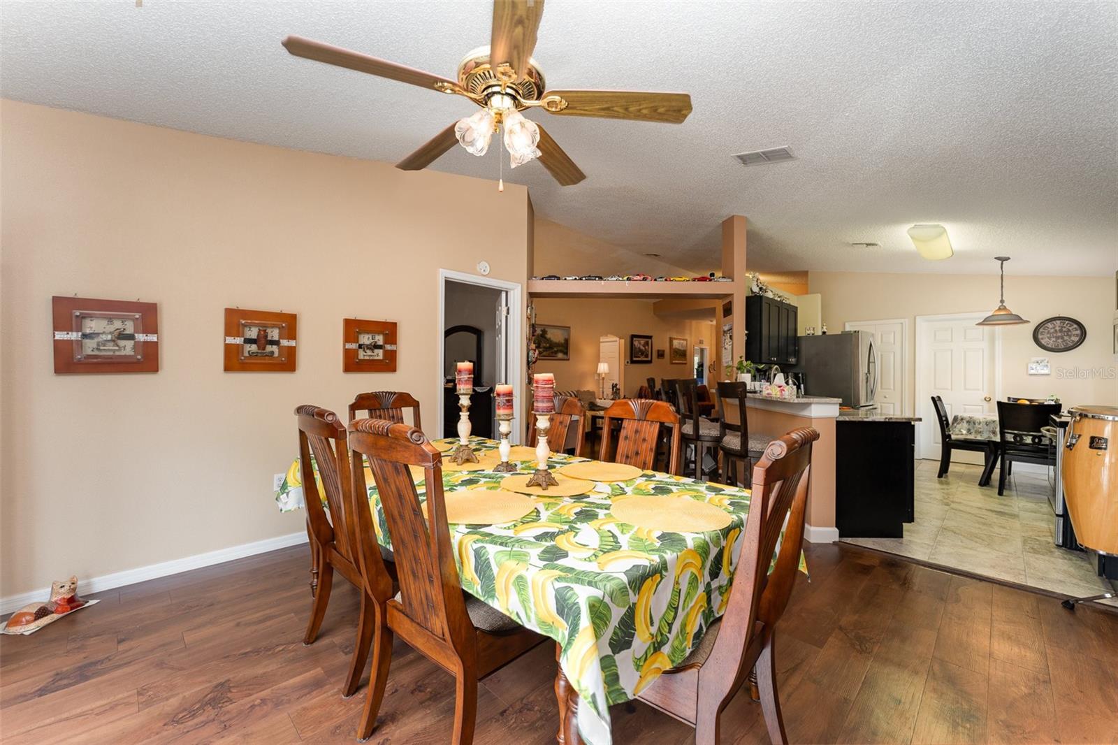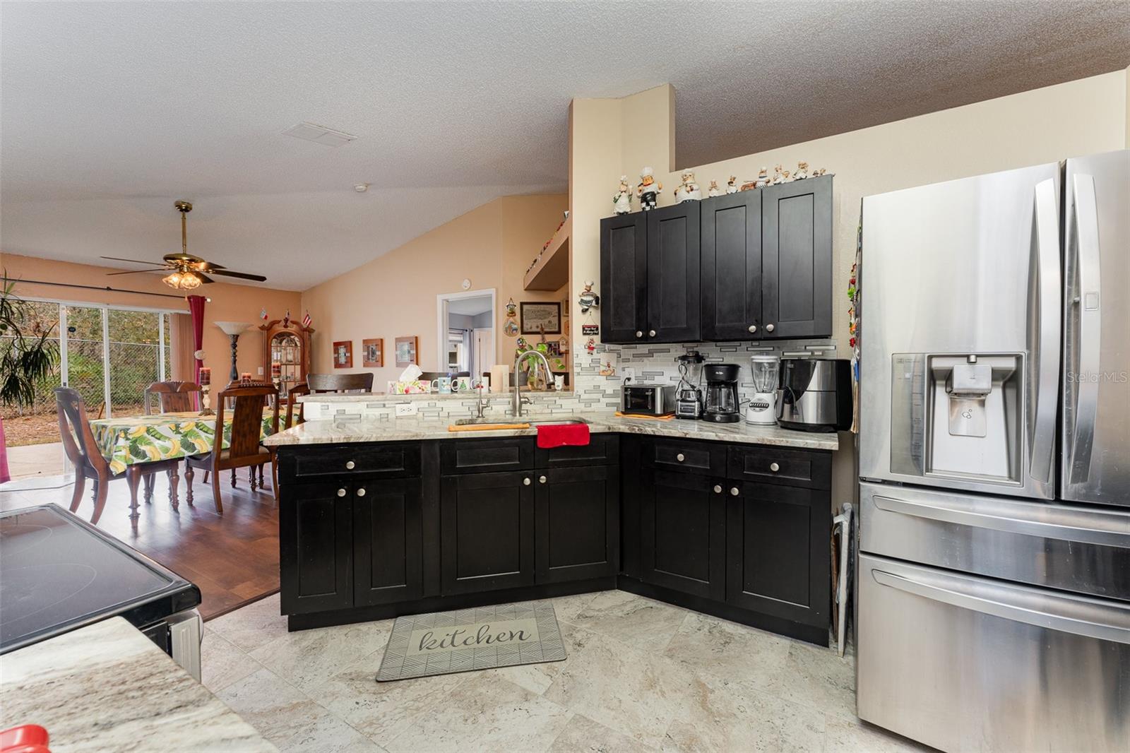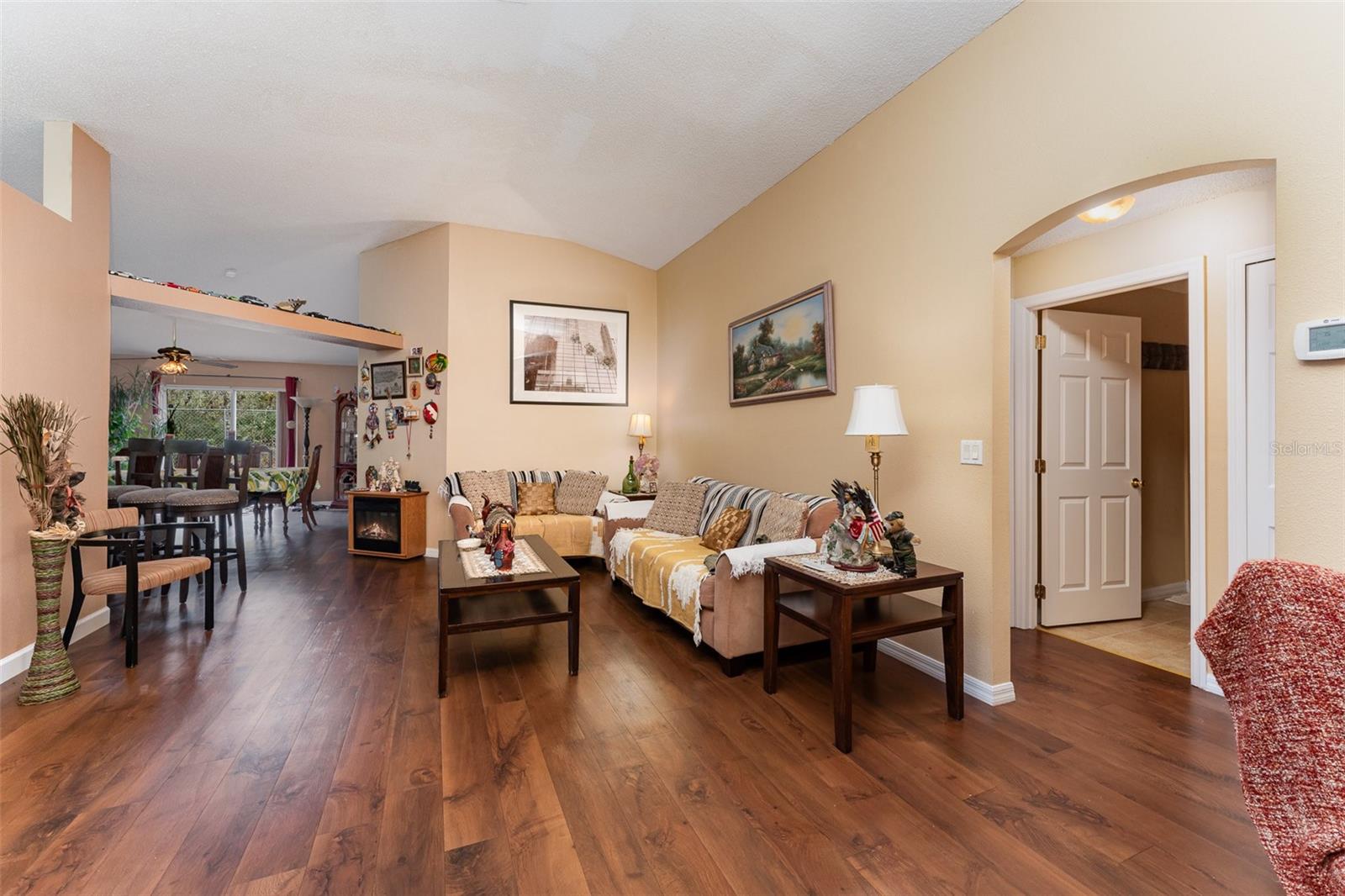 TURNKEY READY - WELCOME HOME! Sitting on a private cul-de-sac with OVER 1/3 of an Acre, pie shaped Lot, one of the largest Lots in Poincciana, This BEAUTIFUL WELL-KEPT 4-bedroom, 2-bathroom, 2-car garage, home can also be configured as a 3-bedroom with a dedicated DEN/OFFICE space. As you enter the home, you can appreciate the GRAND, airy and inviting atmosphere of the High Vaulted Ceilings, a long Foyer leading you into the wide-open Family Room and Dining Room. This home boasts neutral colors with Tray Ceilings, GORGEOUS Laminate wood flooring throughout, an Open Floor Plan, a SPACIOUS, Updated Kitchen with plenty of cabinet space, all stainless-steel appliances with gorgeous GRANITE countertops and a Breakfast Bar overlooking the Family Room. Just off to the side of the Kitchen, is the Breakfast Nook/dinette area. You will appreciate the OVERSIZED master bedroom featuring a Master en-suite with dual sinks, deep soaking Garden Tub, Walk-in Shower and a HUGE walk-in closet. The other bedrooms are just as roomy, each with its own closet. The open-concept interior provides the perfect space for gatherings. This home has many upgrades, including an Alarm System, 2024 Water Softener, additional Insulation installed to promote a low cost electric bill, Roof and AC replaced in 2019. Outside, you'll find a large fenced-in backyard with fruit trees and beautiful landscaping through-out. The front yard is just as impressive, with a large driveway and an inviting front porch. Located in the desirable Poinciana Villages, you'll be surrounded by beautiful parks with boating ramps, picnic grounds, hiking trails, exercise facilities, including the Aquatic Center, the Disney Wilderness Preserve nature trail and just minutes away from Poinciana Town Center and Hospital. The community features an event center, park, and two pools all included in your HOA. This immaculate home is packed with desirable features offering a lifestyle of comfort, convenience, and elegance. Call Today for your private showing!