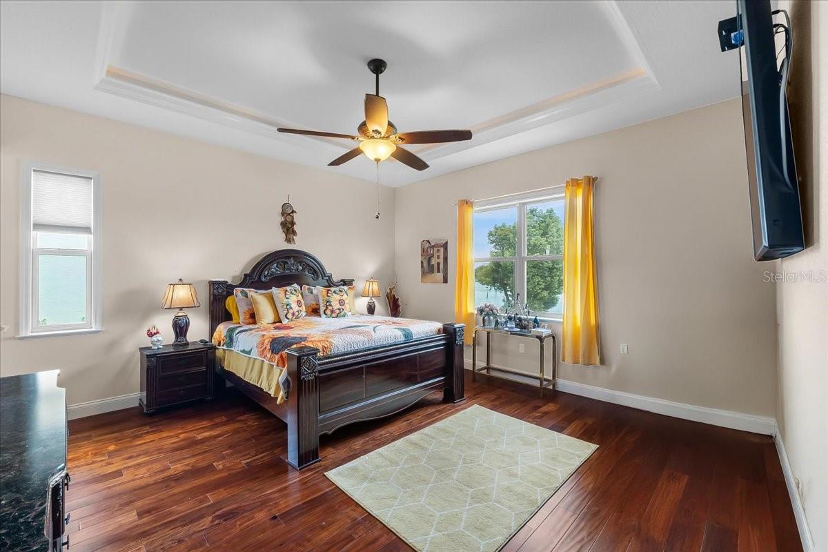 One or more photo(s) has been virtually staged. NO FLOOD OR STORM DAMAGE. Goldsmith Built LAKEFRONT HOME in Mt Olive Shores N - Class A Motorcoach Community. 85 feet of Waterfront and enough land to add a pool. 3/2 home, single story, w/1 car garage & RV port 16" x 50' w/motorized sunscreens on 3 sides of RVPort. Roof is only 8yrs old and can get insurance easily. Gourmet kitchen, double oven, induction stove, wine cooler, granite counters w/island bar & open layout to dining & living rm. Engineered Hardwood floors throughout. 2 Electric fireplaces & French doors to screened in patio w/lakefront view & steps to Clearwater Lake a 78-80 acre private lake allows boating and fishing. Master & living rooms have tray ceilings & speakers for surround sound. Mstr bath has double sinks w/granite counters walkin travertine shower and floors & walk-in closet. Additional outside deck and cooking area for grilling lakeside. Pavers line driveway & parking area in RVPort. Electric & waste hookups. Community has 2 AMAZING Clubhouse areas with the 3 P’s Pools, Pickleball, and free Pontoon boat usage. Also includes shuffleboard, tennis courts, gym, ballroom, craftroom w/classes, internet business office, fishing, and water sports allowed on lakes. Golf Carts OK. Minutes away from I-4 to Orlando or Tampa shopping, theme parks and airports. 3D Zillow walk through tour of house for out-of-state viewing. DON’T click on ask agent on Zillow-or you will be bombarded by agents that pay for ads. Do not drive to the gate first you will not get in. There is a live guard. You will need permission. Live video tours available for out of state viewing. Call NOW before the neighbors hear a coveted spot on 78 acre Lake Clearwater has opened up!!! AS IS FAR BAR contracts only with Proof of funds included. Seller request min. of 24 hours to respond for offers presented on a business day. Offers presented on weekends will be answered 1st business day of that upcoming week. NO BLIND OFFERS WILL BE CONSIDERED. Investors don't bother sending low offers, this seller is NOT your target! Most funiture, golf cart and Motorcoach on property are up for negotiation.