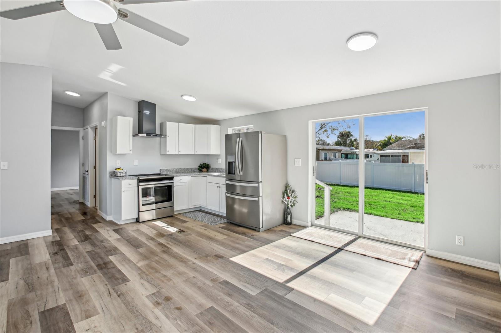 This newly renovated single-family home in Polk City, offering 3 bedrooms, 2 bathrooms, and generous interior and exterior space. The interior of the property has undergone a tasteful transformation, featuring new flooring, fixtures, paint, and stainless steel appliances for a modern appeal. The exterior has also been updated with low-maintenance landscaping and new siding. This home boasts a new 30-year architectural shingle roof, updated ductwork and AC system, a new hot water heater, and vinyl fencing, ensuring privacy and longevity. Situated in a peaceful neighborhood in Polk City, conveniently located between Tampa and Orlando with Lakeland just a few minutes away, this property comes with the added advantage of no HOA or CDD fees. Do not miss the opportunity to make this house your home. To schedule a showing or for further inquiries, please reach out to via call, text, or email.