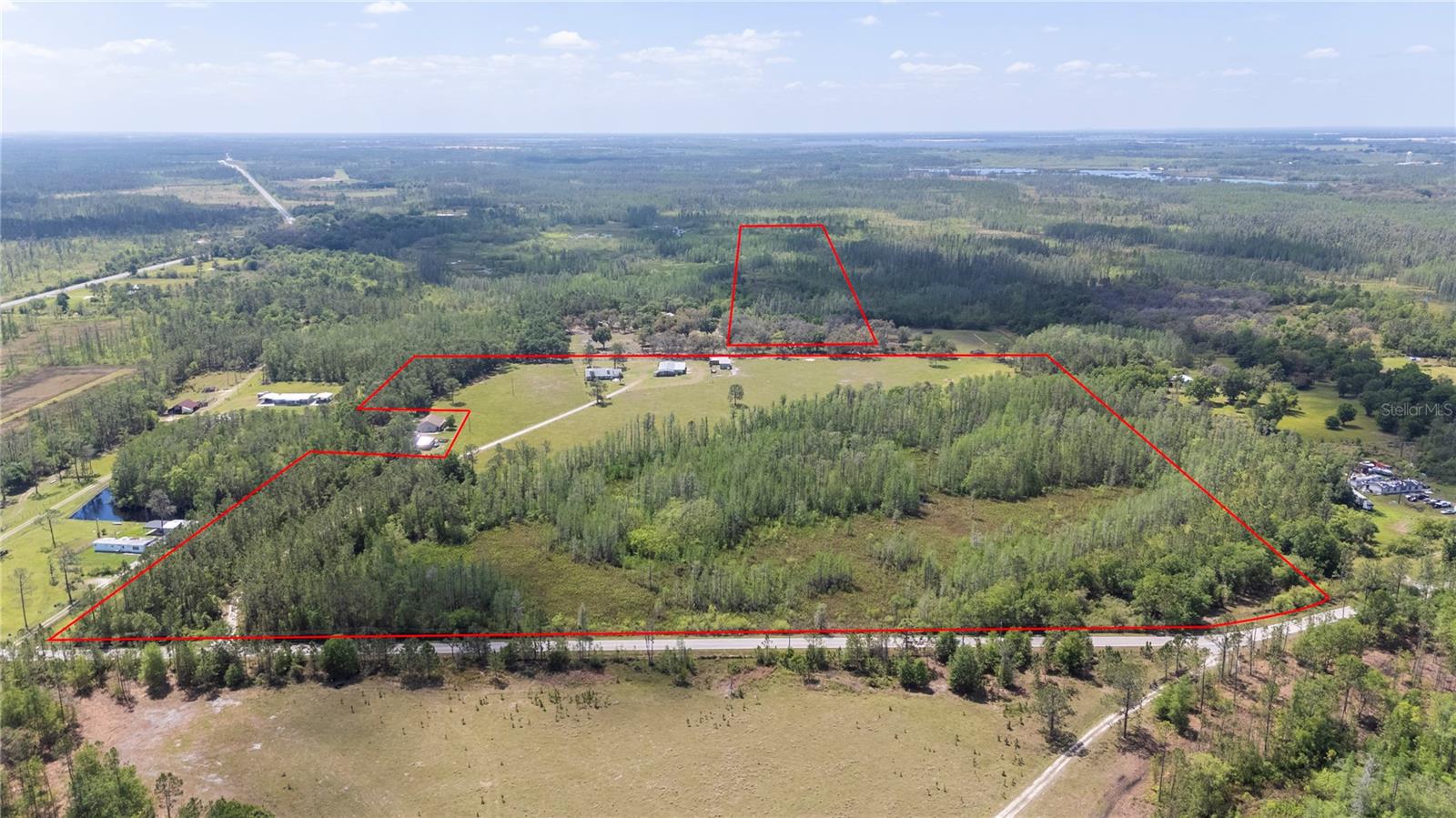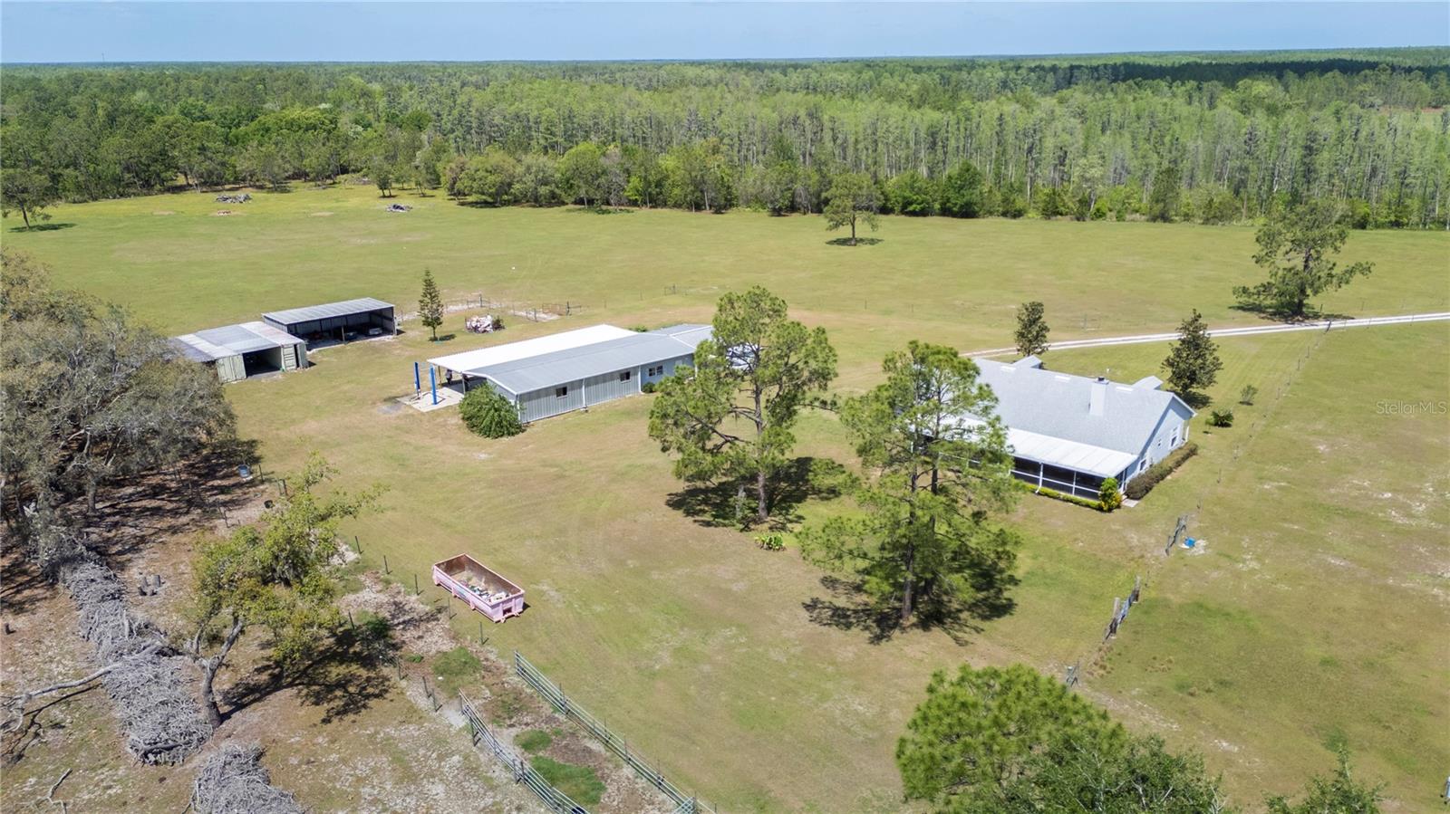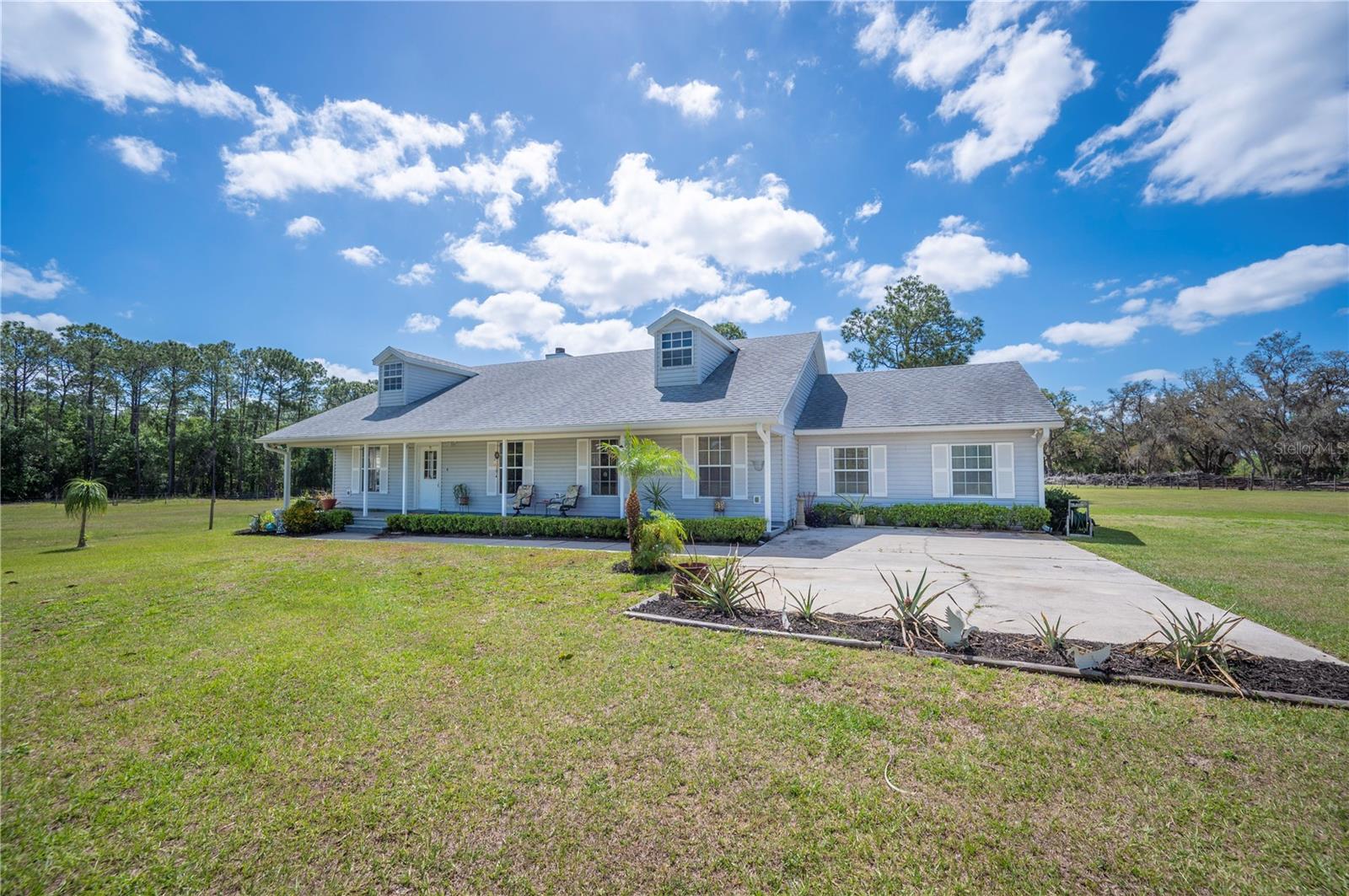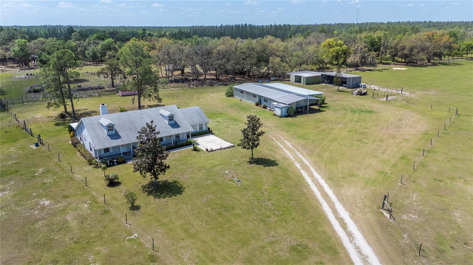 Spanning over 47 acres across three separate parcels, this exceptional property is just minutes from I-4, offering quick access to both Tampa and Orlando. The main residence features 3 bedrooms, 2.5 bathrooms, a spacious kitchen, a separate dining room, a wood-burning fireplace, and a primary suite set apart for privacy. Enjoy outdoor living with a covered front porch and a large screened-in back porch with a half bathroom. The property also includes a separate 1-bedroom, 1-bathroom apartment with a full kitchen and living room, attached to a 30x35 covered workshop/barn with concrete flooring, electric, and two storage rooms (9x11 and 14x9) with AC, one previously used as a tack room. The barn’s backside boasts three horse stalls with a newly replaced covered roof (2025). Additional amenities include a 20x40 three-sided pole barn for hay storage, two metal Conex containers with electric, a vehicle lift, two separate septic tanks, and fencing around the primary parcel. This versatile property is a rare opportunity. The primary parcel is 37.86 acres zoned Agriculture Residential Rural (ARRX), 2nd parcel 4.83 zoned Low or Inaccessible, 3rd parcel 4.84 acres zoned Low or Inaccessible.***Features and updates*** Primary residence Roof(2019), A/C(2019),septic pumped(2025), Water Heater(2020) wood burning fireplace, kitchen appliances, washer and dryer included. Barn Apartment bedroom 15x11, living room 12x15, full kitchen 8x15, updated backsplash(2024),living room repainted(2024), window unit replaced(2024), shower head with filtration system(2024), Septic to barn apartment replaced 4 years ago. Horse stalls area 22ft long with three separate doors, electric and rubber mats and roof replaced (2024), 85 gallon Well inside concreated pump house with GE breaker box, last maintenance (2024), Two fenced pasture areas, multiple gates throughout the fenced property, Barn has an exterior sink and fish cleaning area. All measurements are estimated and buyer should verify.