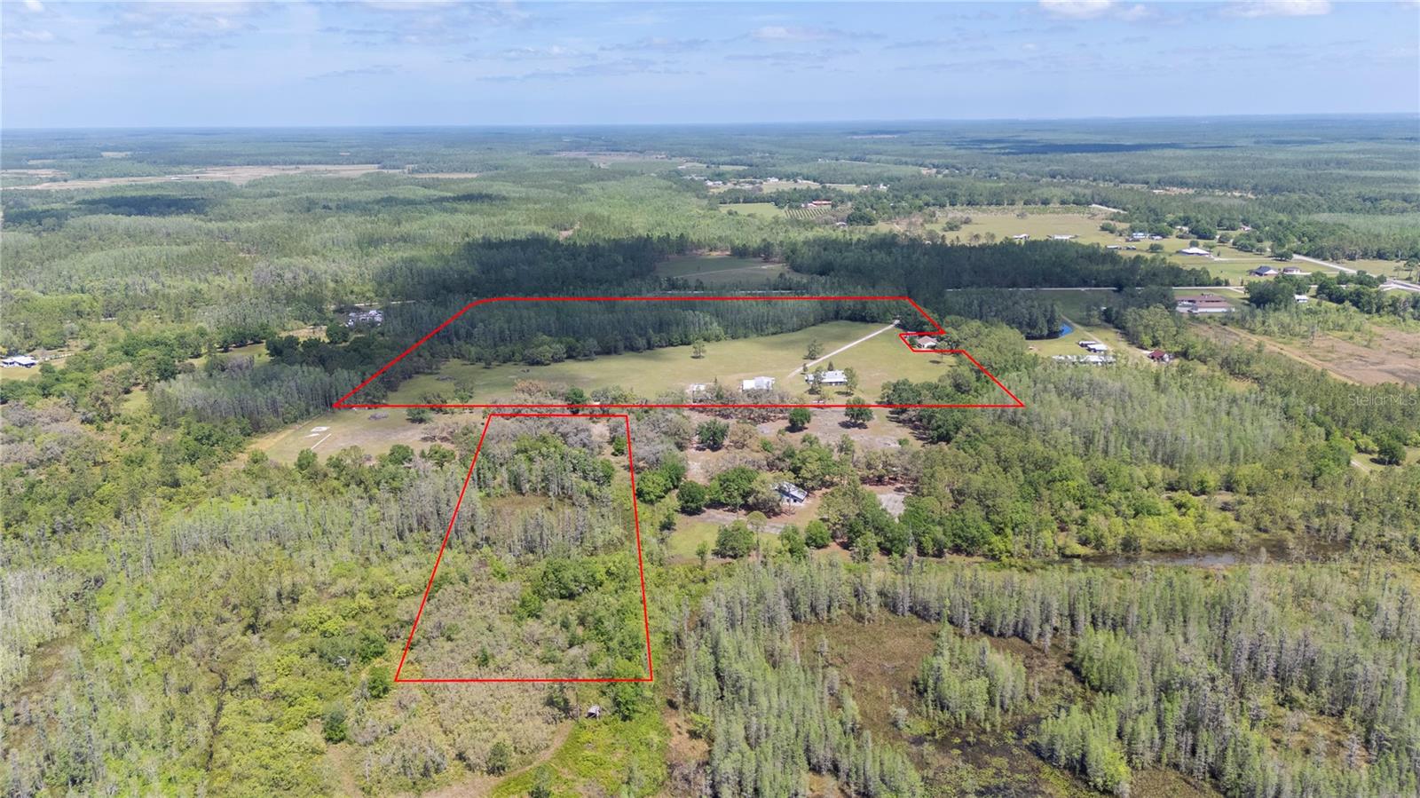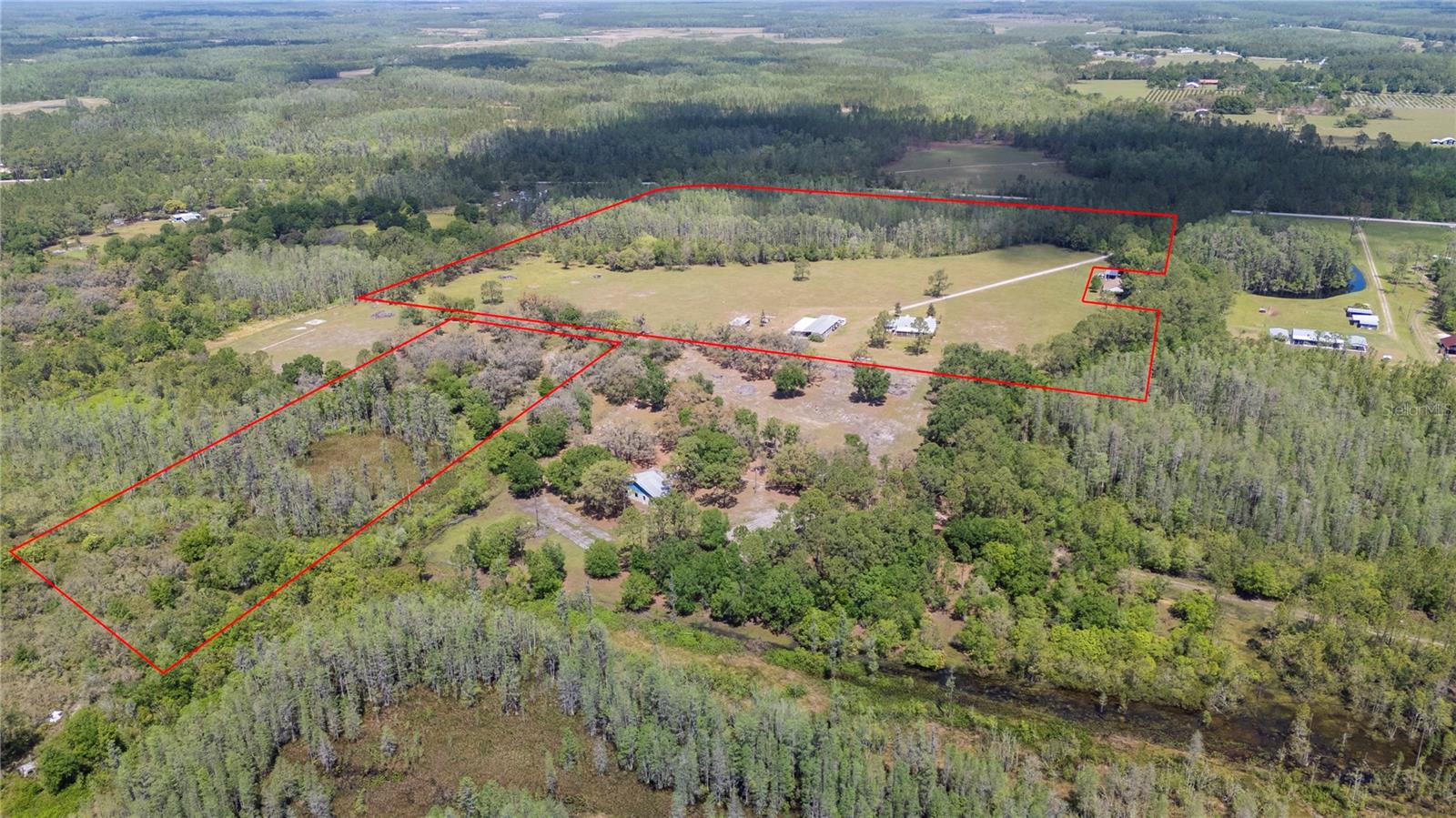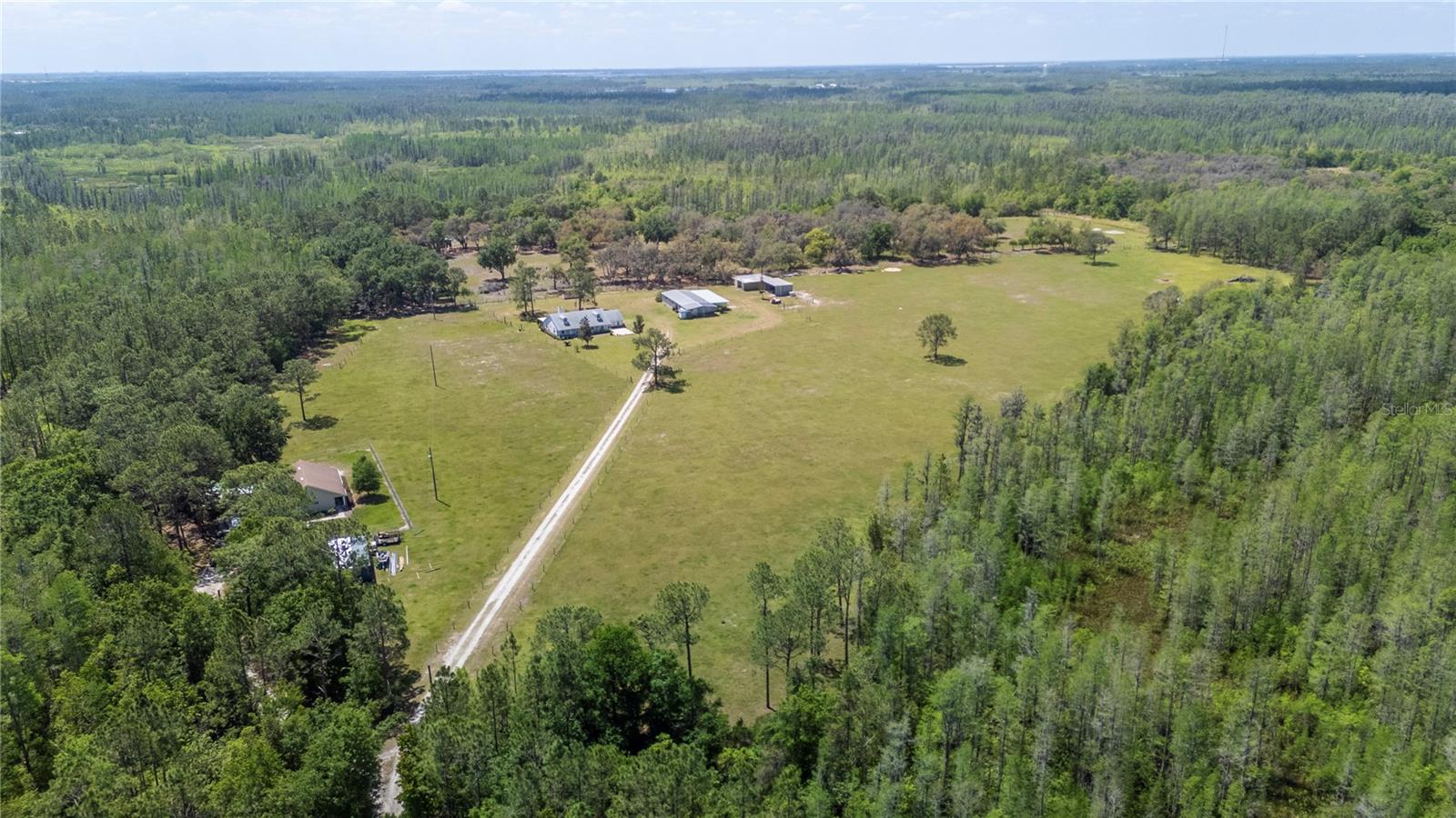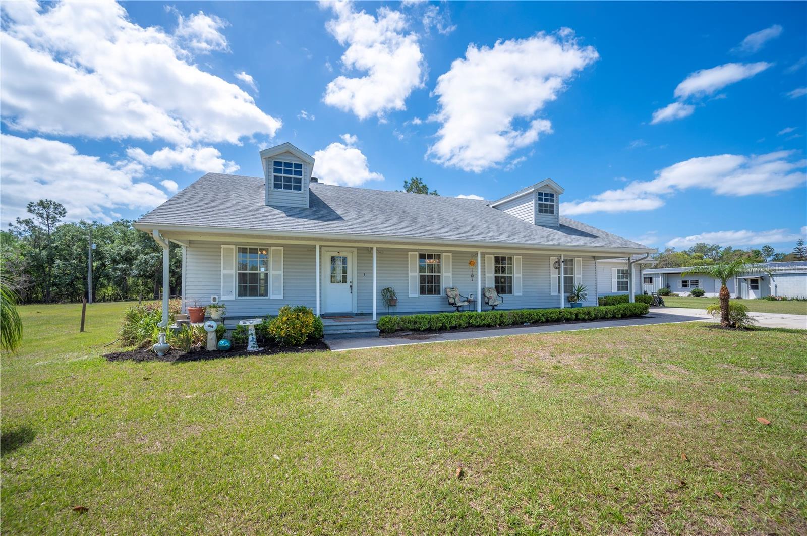 Spanning over 47 acres across three separate parcels, this exceptional property is just minutes from I-4, offering quick access to both Tampa and Orlando. The main residence features 3 bedrooms, 2.5 bathrooms, a spacious kitchen, a separate dining room, a wood-burning fireplace, and a primary suite set apart for privacy. Enjoy outdoor living with a covered front porch and a large screened-in back porch with a half bathroom. The property also includes a separate 1-bedroom, 1-bathroom apartment with a full kitchen and living room, attached to a 30x35 covered workshop/barn with concrete flooring, electric, and two storage rooms (9x11 and 14x9) with AC, one previously used as a tack room. The barn’s backside boasts three horse stalls with a newly replaced covered roof (2025). Additional amenities include a 20x40 three-sided pole barn for hay storage, two metal Conex containers with electric, a vehicle lift, two separate septic tanks, and fencing around the primary parcel. This versatile property is a rare opportunity. The primary parcel is 37.86 acres zoned Agriculture Residential Rural (ARRX), 2nd parcel 4.83 zoned Low or Inaccessible, 3rd parcel 4.84 acres zoned Low or Inaccessible.***Features and updates*** Primary residence Roof(2019), A/C(2019),septic pumped(2025), Water Heater(2020) wood burning fireplace, kitchen appliances, washer and dryer included. Barn Apartment bedroom 15x11, living room 12x15, full kitchen 8x15, updated backsplash(2024),living room repainted(2024), window unit replaced(2024), shower head with filtration system(2024), Septic to barn apartment replaced 4 years ago. Horse stalls area 22ft long with three separate doors, electric and rubber mats and roof replaced (2024), 85 gallon Well inside concreated pump house with GE breaker box, last maintenance (2024), Two fenced pasture areas, multiple gates throughout the fenced property, Barn has an exterior sink and fish cleaning area. All measurements are estimated and buyer should verify.
