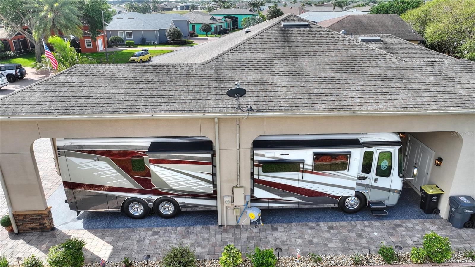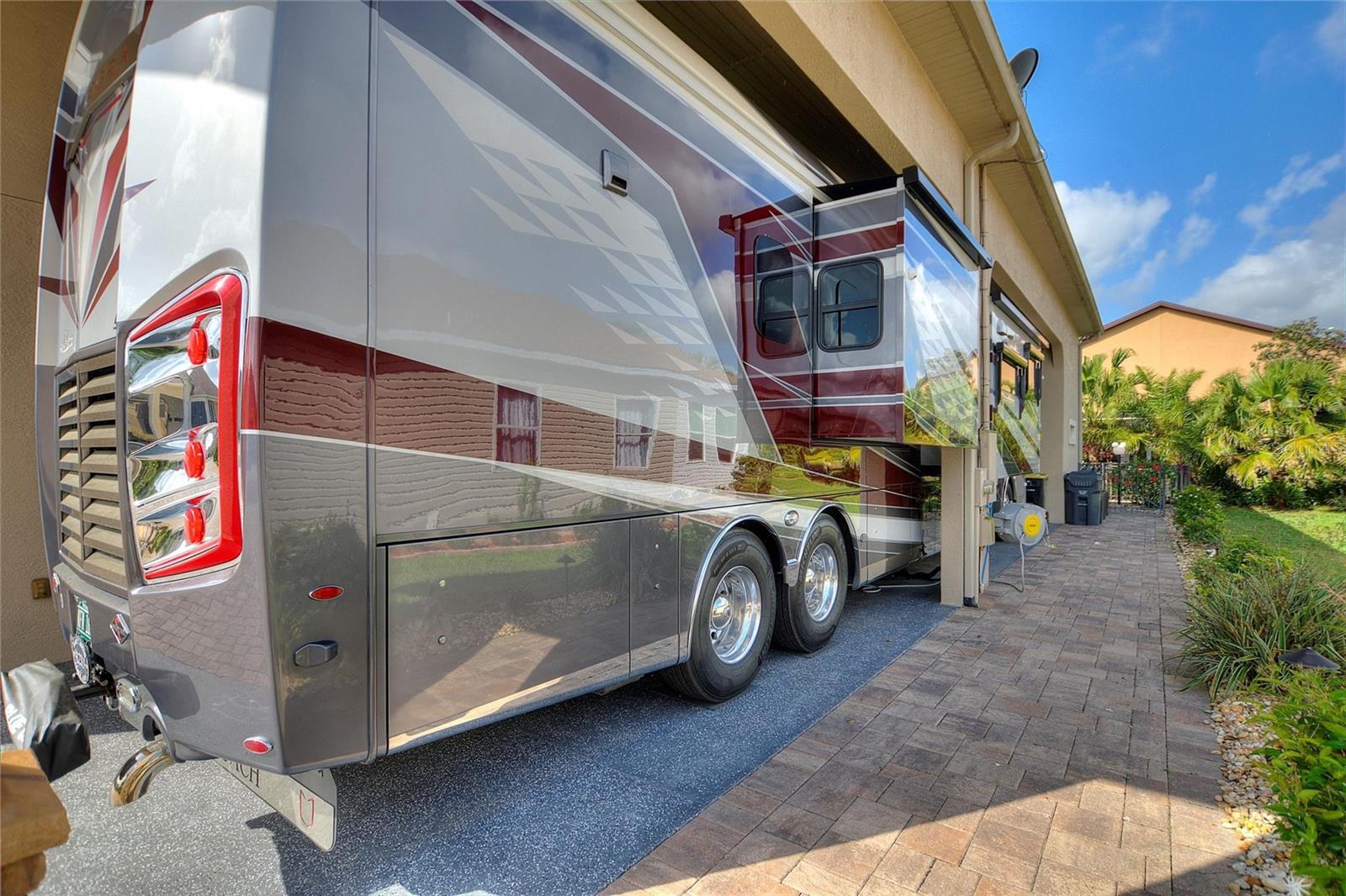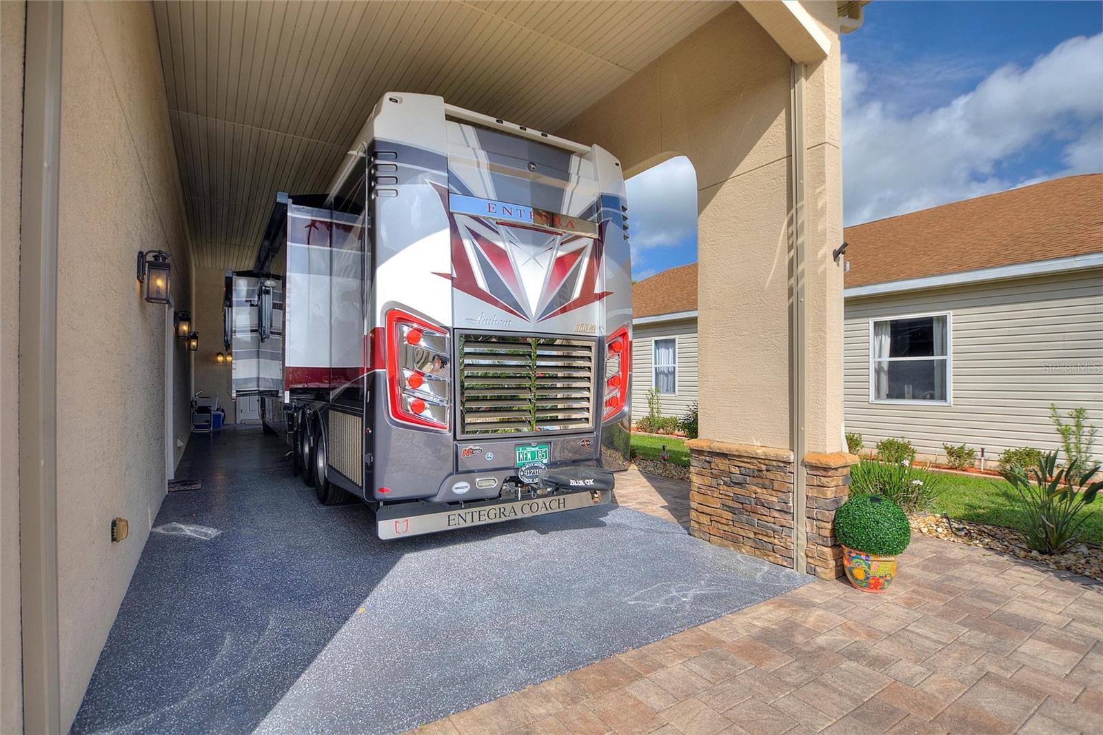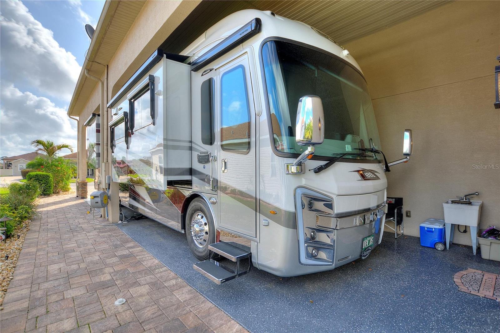 Welcome to luxury living in the heart of Polk City! This beautifully maintained 2 bed, 2 bath Florida home offers 2,267 sq ft of open-concept elegance on an oversized 121’ x 76’ lot in a premier RV community. The home boasts a fenced backyard, an extended patio and walkway, an enclosed lanai with sliding windows, and a fully equipped outdoor kitchen—perfect for entertaining. Interior highlights include a walk-in closet, spacious laundry room plantation shutters, 8 inch crown molding throughout, tray ceilings in each room, solar tube above the dining area, and upgraded features such as a new dishwasher, sealed pavers, and a renovated RV port storage area. Enjoy added convenience with a garage door screen, RV port sunscreen, low-voltage landscape lighting, and a painted RV port floor. Reverse osmosis system includes fresh filters and pressure tank. Enjoy the best of Florida living in a secure, welcoming neighborhood tailored for RV enthusiasts. Washer and dryer do not convey with the house.