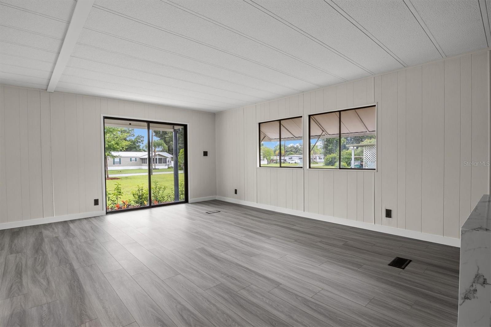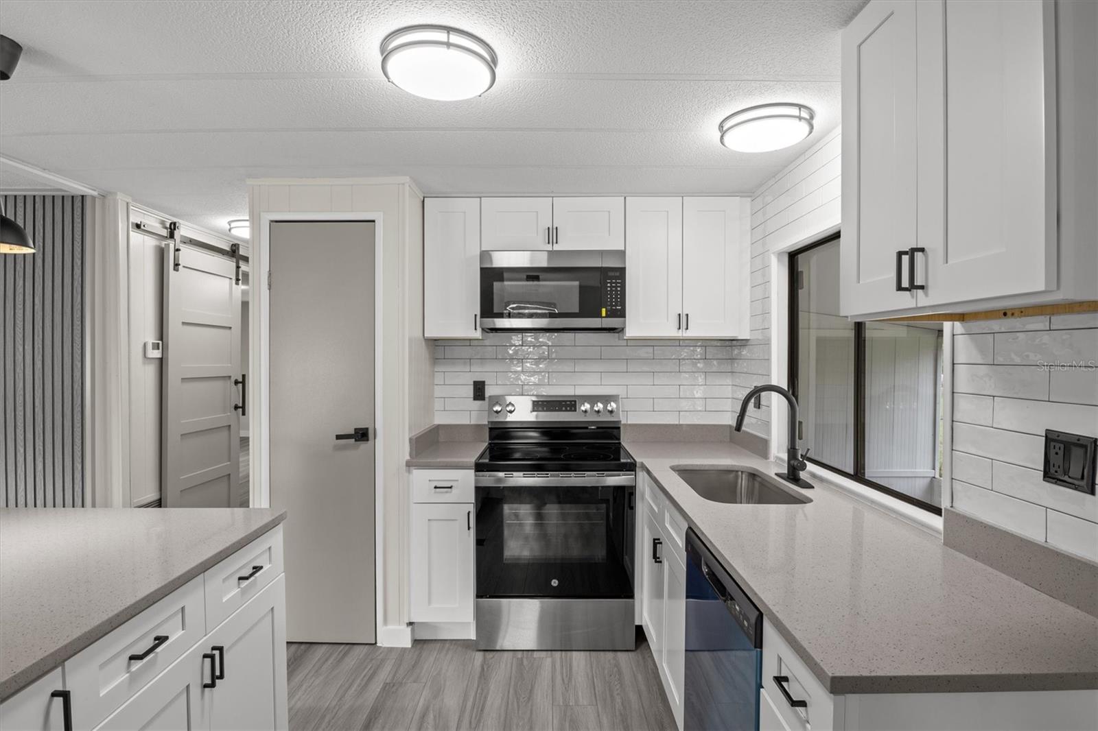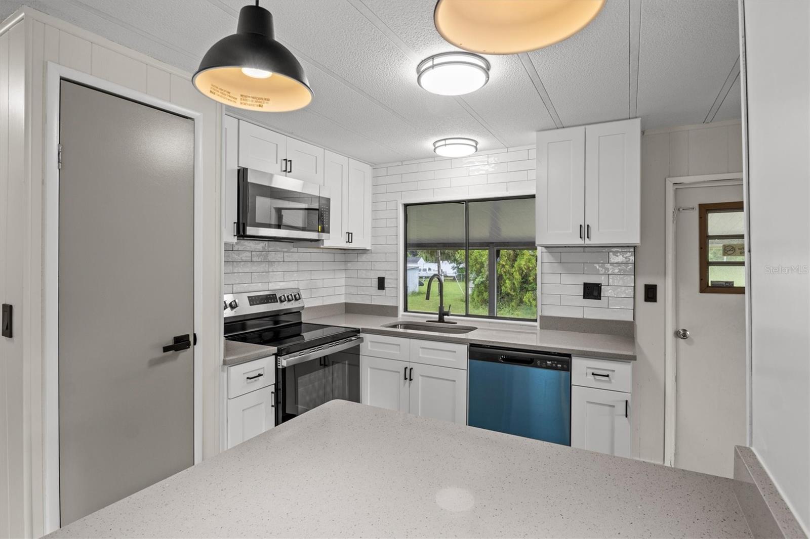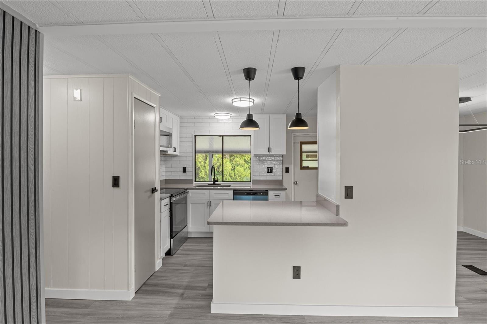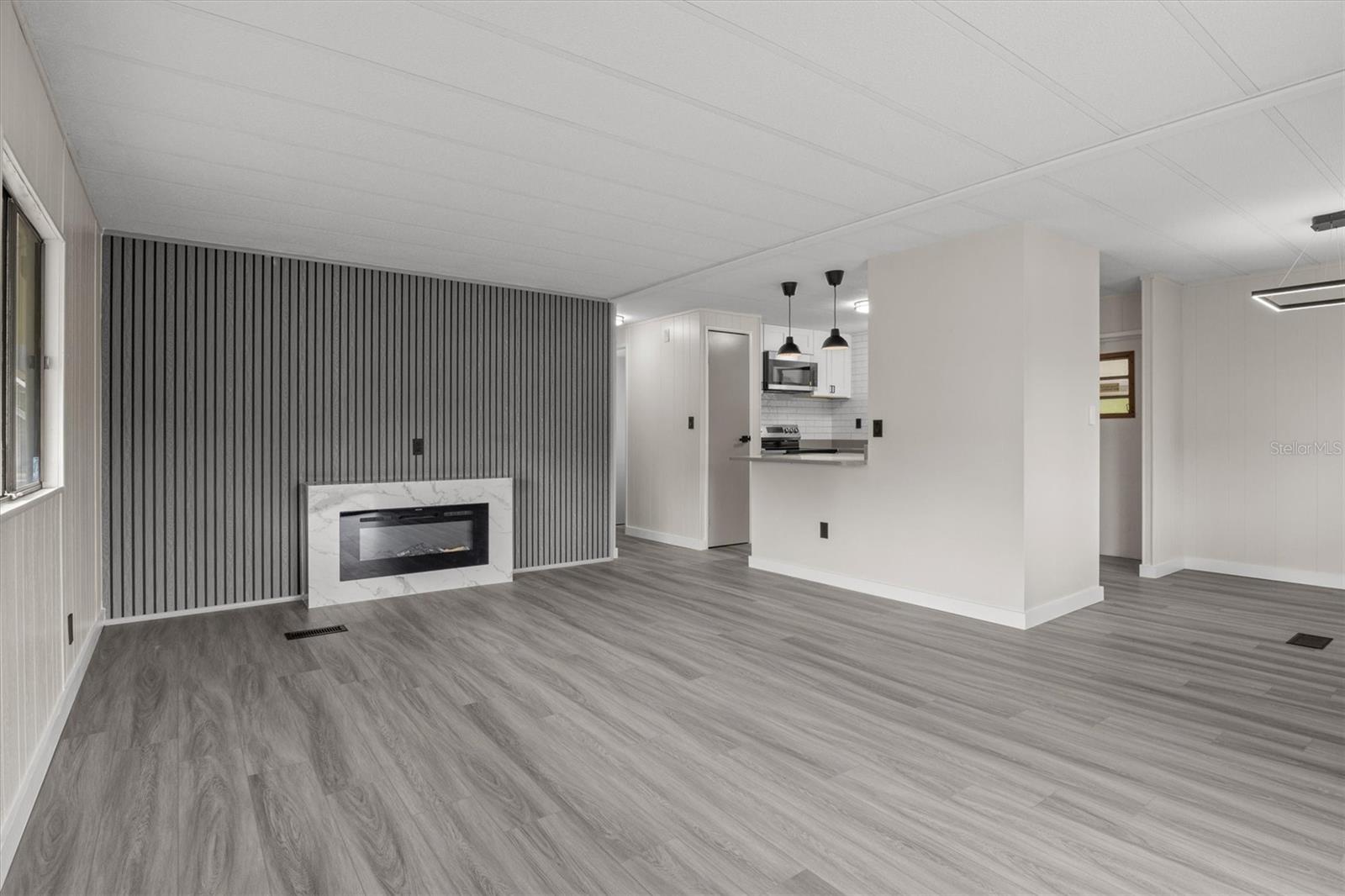 This beautifully updated 2-bedroom, 2-bath home is move-in ready! Situated on over half an acre, it offers the perfect blend of modern upgrades and comfortable living. Inside, luxury vinyl plank flooring runs throughout, setting the stage for a bright, open layout. The brand-new kitchen features quartz countertops, stainless steel appliances, and a spacious island with seating for three. It flows seamlessly into the oversized family room, perfect for entertaining or everyday living. Even more charm is added with its electric fireplace and custom accent wall. The primary suite is a true retreat, complete with a bold accent wall, ample space, and a fully renovated en-suite bath. The second bedroom is generously sized, and the guest bathroom has also been updated with new fixtures and finishes. Every detail has been thoughtfully redone, from lighting to appliances—all included—making this home truly move-in ready. With plenty of outdoor space and a stylish interior, this one won't last long. Come see it today! American Home Shield Warranty available. **Seller is a licensed real estate Broker/Owner** Seller may contribute to closing costs if preferred lender is used.