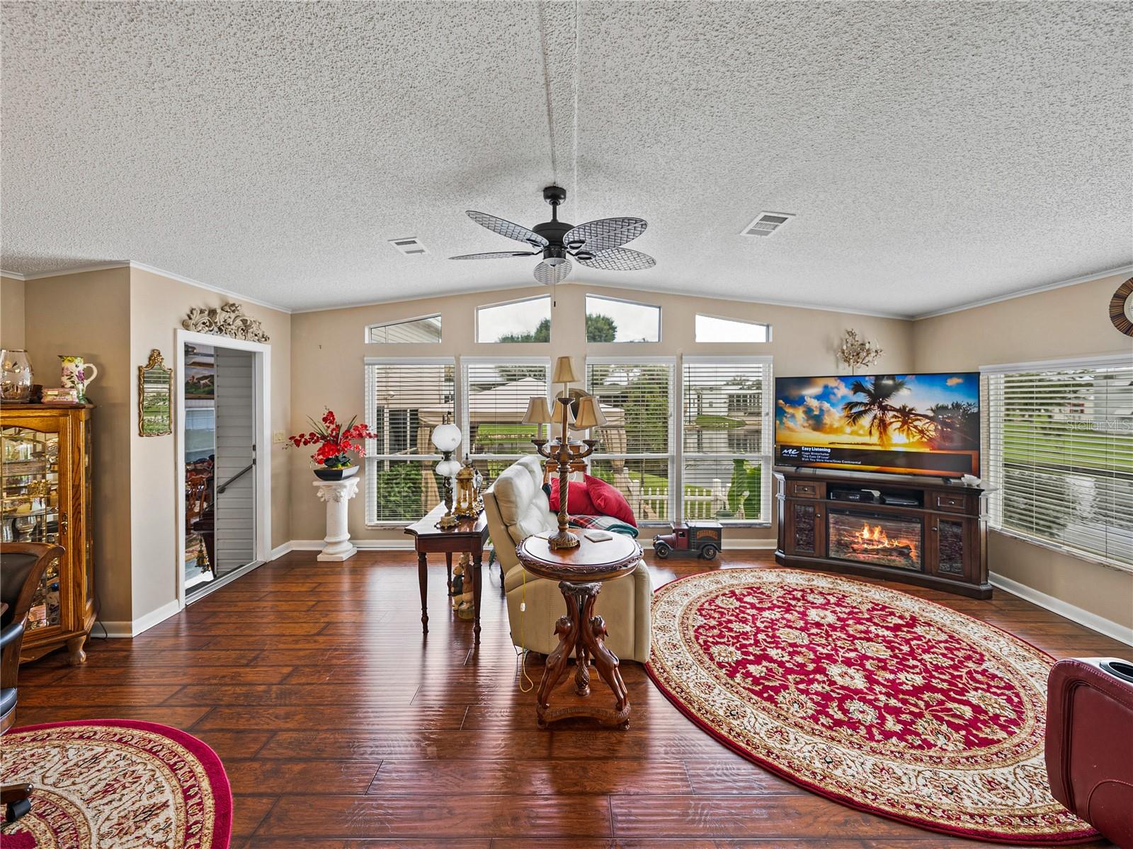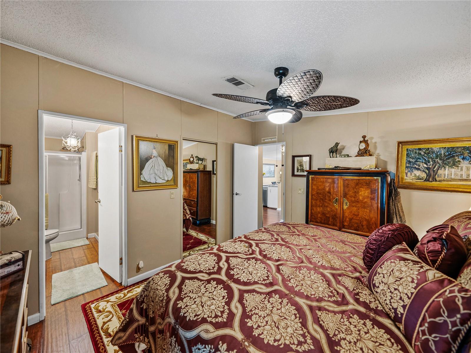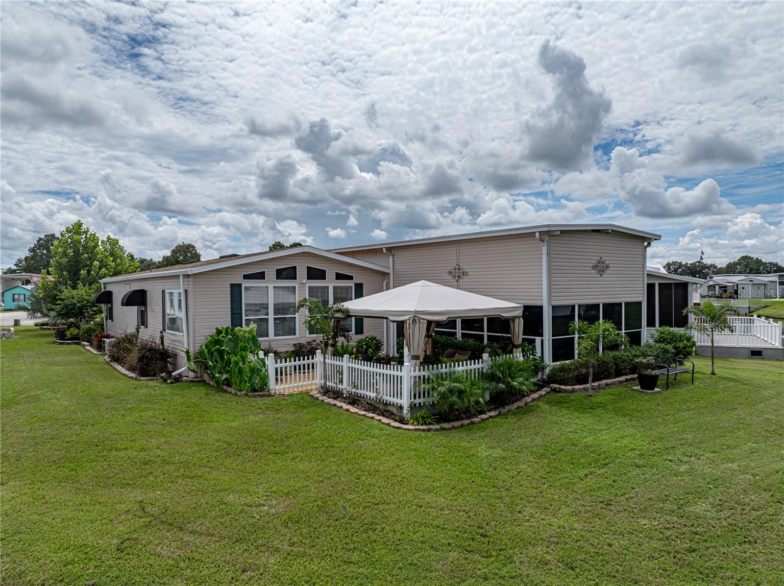 Welcome home to this meticulously updated and thoughtfully enhanced waterfront residence in the highly sought-after community of Mount Olive Shores. This immaculate home offers a perfect blend of modern luxury and timeless elegance, boasting numerous upgrades that elevate its appeal. As you step inside, you will be greeted by the warmth of new luxury engineered wood flooring (2023), seamlessly flowing throughout the living spaces, creating a cozy and inviting atmosphere. The kitchen, a culinary haven, features top-of-the-line stainless steel appliances and a stylish backsplash that adds a touch of sophistication to the space. Natural light bathes the interior thanks to two new designer glass doors that amplify the sense of openness and provide stunning views of the surrounding landscape and water. Every detail has been carefully considered, from the all-new wood blinds that add privacy and style to the custom window awnings that enhance the home's curb appeal. The newly installed roof (2023), patio (2023), and landscaping (2023) all contribute to the property's freshness and curb appeal. Outside, the newly laid cement patio provides an ideal spot for entertaining or enjoying quiet moments by the water. The upgraded RV power to 50-amp service (2022) and recently extended RV port open possibilities for travel enthusiasts. The home's interior and exterior have been given a fresh coat of paint, creating a clean and modern aesthetic. Additionally, new ceiling fans enhance airflow and add a touch of contemporary design to each room. Practical updates, such as new tie-down straps (2022), ensure the home's structural integrity. The attention to detail and commitment to quality craftsmanship are evident throughout this property, making it a true turnkey and move-in-ready residence. A One-Year Home Warranty will be included with the purchase. Discover a lifestyle of comfort, style, and modern convenience at your private oasis. This is more than a home; it's an invitation to indulge in the finest features and luxuries Mount Olive Shores offers. This community is just minutes from I-4 and gives you quick access to local theme parks and attractions, retail, medical facilities, major metro areas, and local beaches. Mount Olive Shores is a Class A Motor Home, Deed Restricted Community. You must own or lease a Class A Motor Home the first year of accumulated residency. The annual HOA fee includes lawn maintenance. Don't miss the opportunity to make this exquisite property your own!