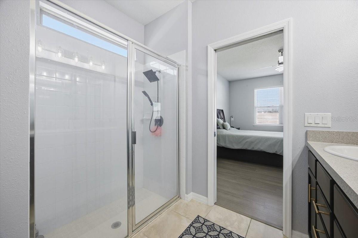 Welcome home to this bright and well-kept 3-bedroom, 2-bath home in the Fountain Park community of Polk City. With a split-bedroom layout and an open, easy-flow floorplan, this home works perfectly for both everyday living and hosting friends and family. The kitchen is truly the heart of the home, featuring granite countertops, stainless steel appliances, and a large island that opens right into the spacious family room, ideal for gatherings, movie nights, or just hanging out. The primary suite is tucked away for privacy and offers a comfortable retreat with a walk-in closet, dual sinks, and a walk-in shower. Two additional bedrooms are located toward the front of the home and share a full bathroom with a tub/shower combo. Ceramic tile runs through all the living areas and bathrooms. You'll also love the large indoor laundry room, 2-car garage, and the covered patio, a great spot to relax and enjoy the outdoors. Washer & Dryer do not convey. Sitting on a corner lot, this home offers extra privacy, plus there's a small playground just steps away. Conveniently located between ChampionsGate and Lakeland with quick access to I-4, making commuting to Orlando, Disney, or Tampa simple.