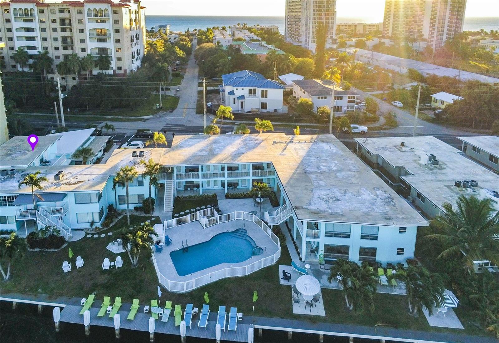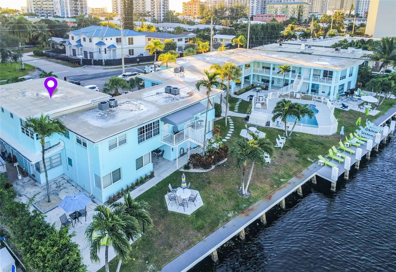 Great investment opportunity. Daily rentals allow. No pets. 1 block away from the ocean. Water view from unit. Largest 1 bedroom 1 bathroom in the 24 units boutique rental building. Pool, patio, BBQ, dock and lounging area. Near beaches, Pier, restaurants, shops, international airport. Dock available for pick-up and drop-off. Fully furnished.