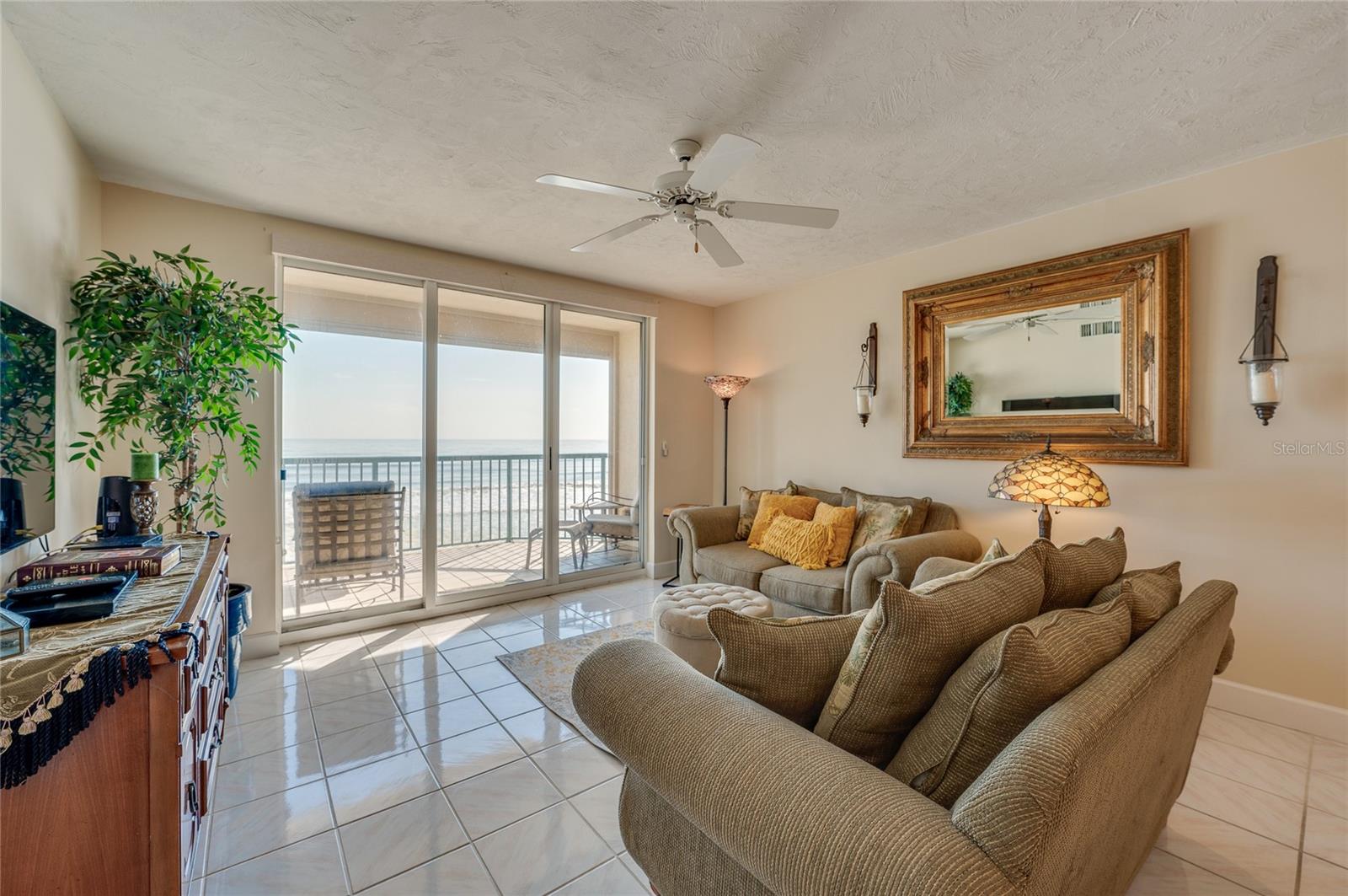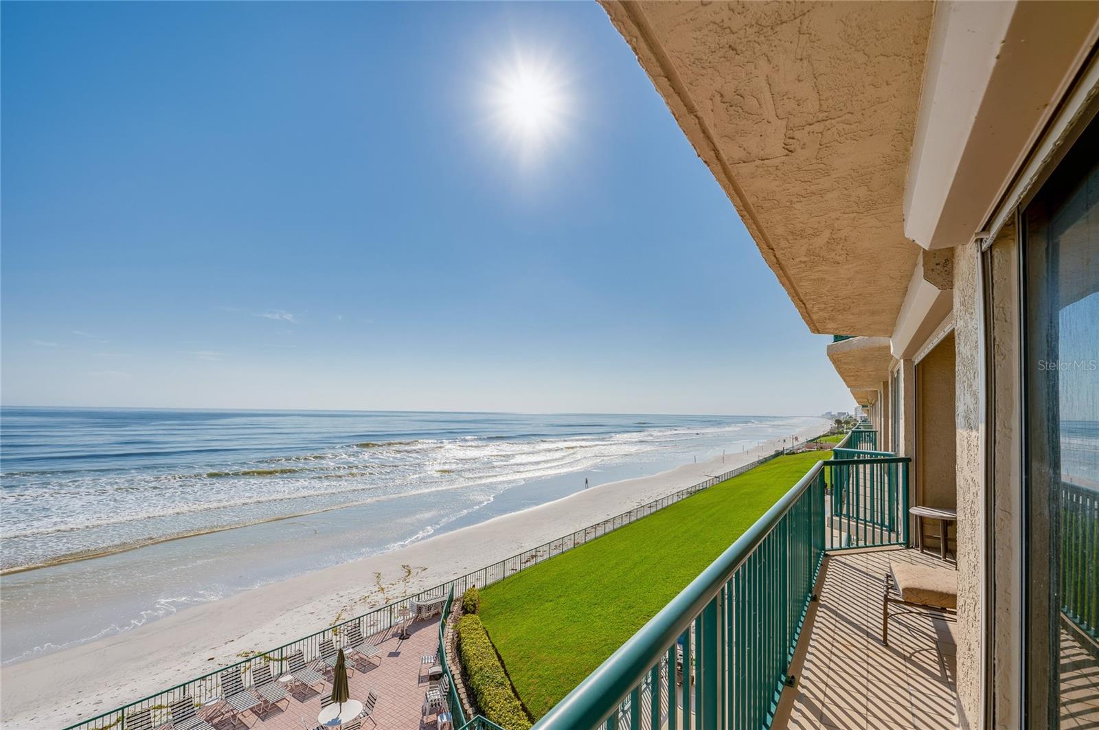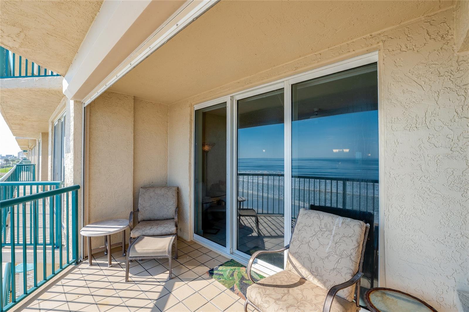 This oceanfront condo boasts million-dollar views from its 3rd-floor balcony, offering a direct view of the Atlantic. Featuring 2 bedrooms and 2 baths, it allows easy access to the private pool and no-drive beach. The oversized balcony, accessible through sliding glass doors in both the living room and master bedroom, invites relaxation and seamless outdoor living. Inside, enjoy high-end updates like quartzite countertops, custom cabinetry with under-cabinet lighting, and spacious walk-in closets. The condo has a breakfast nook and a Roman tub in the master bath. The tile and wood laminate floors throughout make for low-maintenance living, and there's a glass-enclosed lanai perfect for watching sunsets over the Intracoastal. Additional features include motorized hurricane shutters, an in-unit laundry room, and access to resort-style amenities like 3 outdoor pools, Jacuzzis, a large fitness center, and tennis/pickleball courts. Located in the serene Towers at Ponce Inlet, you'll enjoy living in a quaint town with a traffic-free beach, the historic lighthouse, the Marine Science Center, parks, and dining options. Boat dockage and storage are available, making it a boater's paradise.