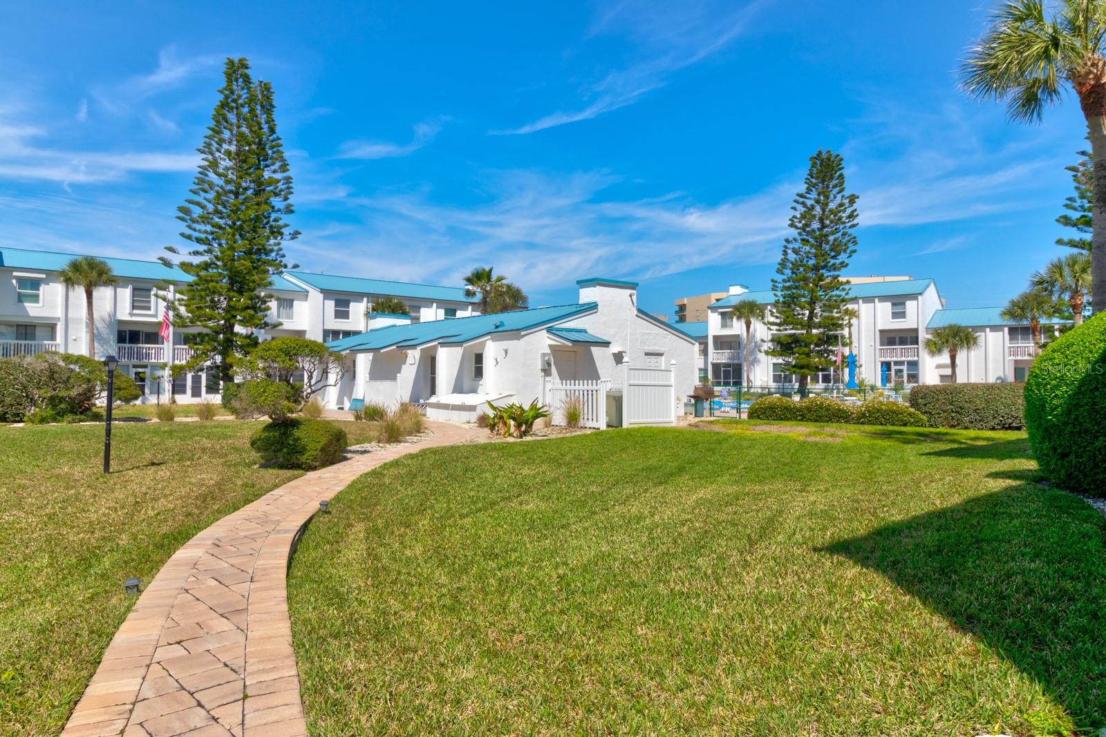 What a great location in beautiful Ponce Inlet! Enjoy white sand and rolling waves of the beach right across the street! This second floor 2 bedroom 2.5 bathroom condo has a great floor plan with kitchen, living and half bathroom in first floor. Kitchen opens to living and dining area. Sliding glass doors bring in lots of natural light and leads to a balcony overlooking the large community pool and lush courtyard. There's plenty of storage with 2 storage closets on the first floor. As you make your way upstairs, you will find 2 bedrooms with private bathrooms. One bathroom features a standing shower, while the other has a tub/shower enclosure. HVAC is 2017 and water heater is 2020. Enjoy all that Ponce Inlet has to offer! The Ponce Inlet Lighthouse is just 1.5 miles away where you can soak up the history of the area, restaurants, access to the beach, public restrooms, showers and a picnic pavilion. There's even a dog friendly area of the beach for your pets to enjoy!