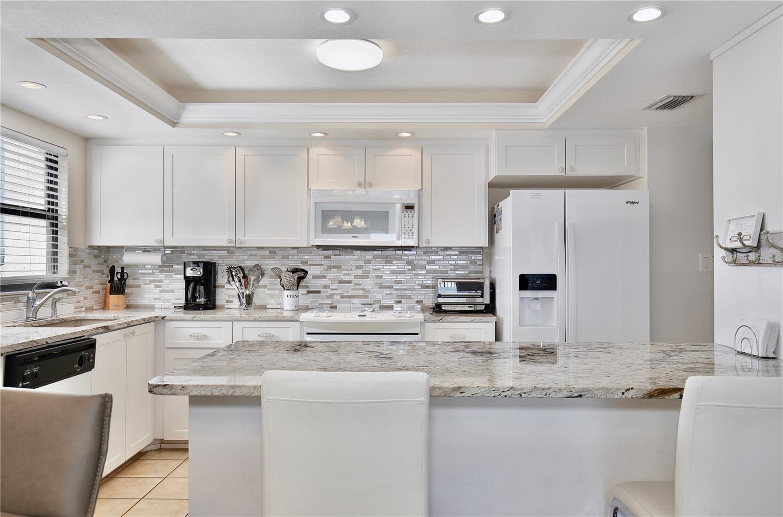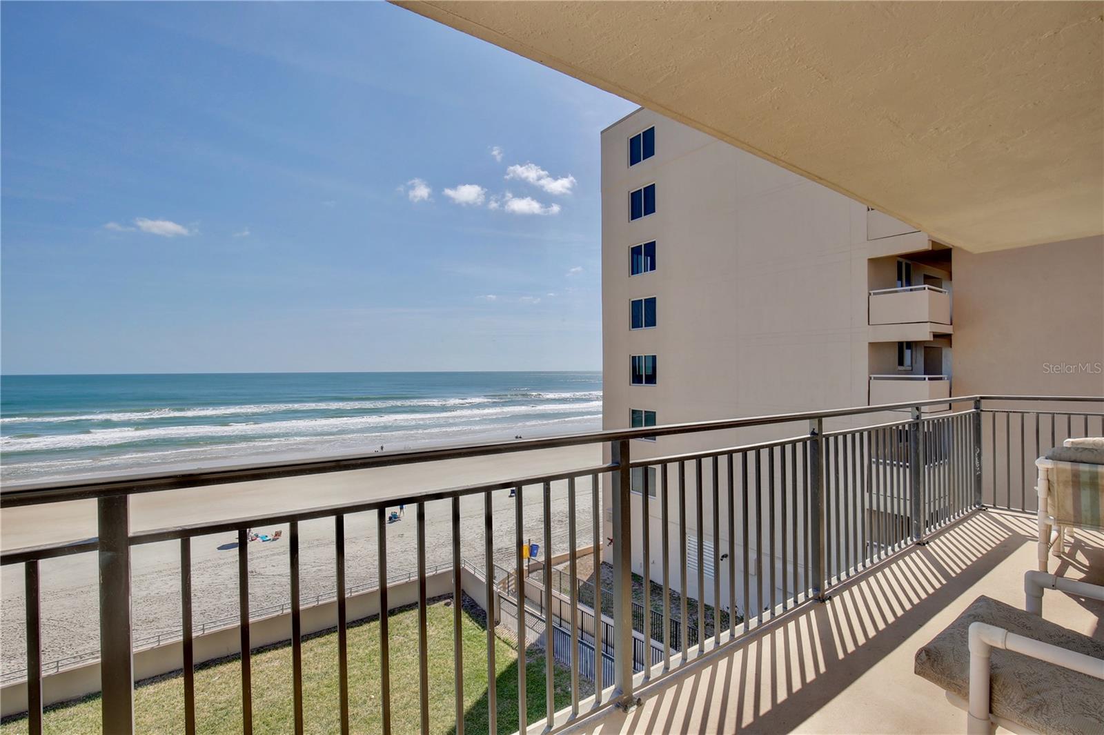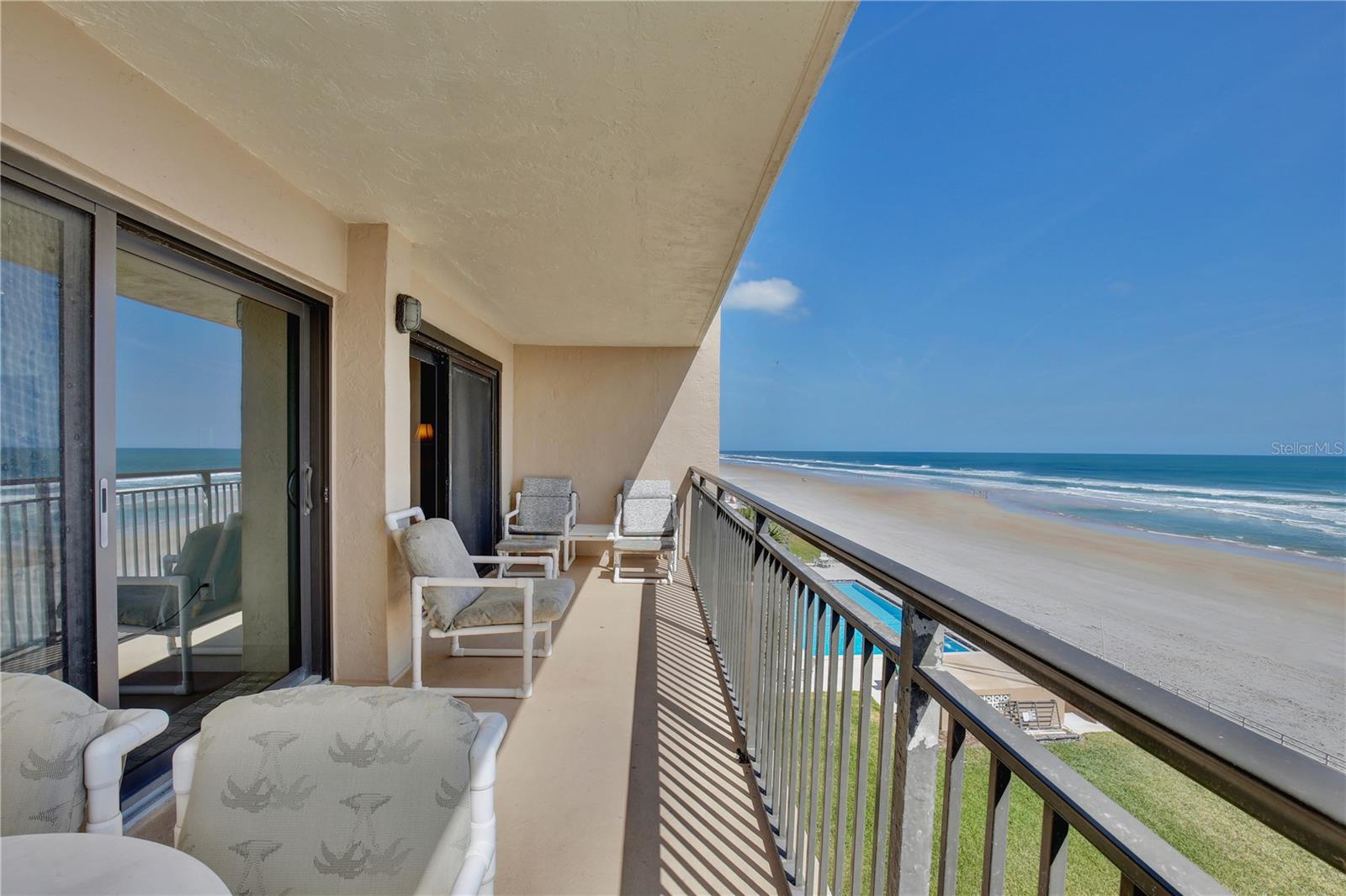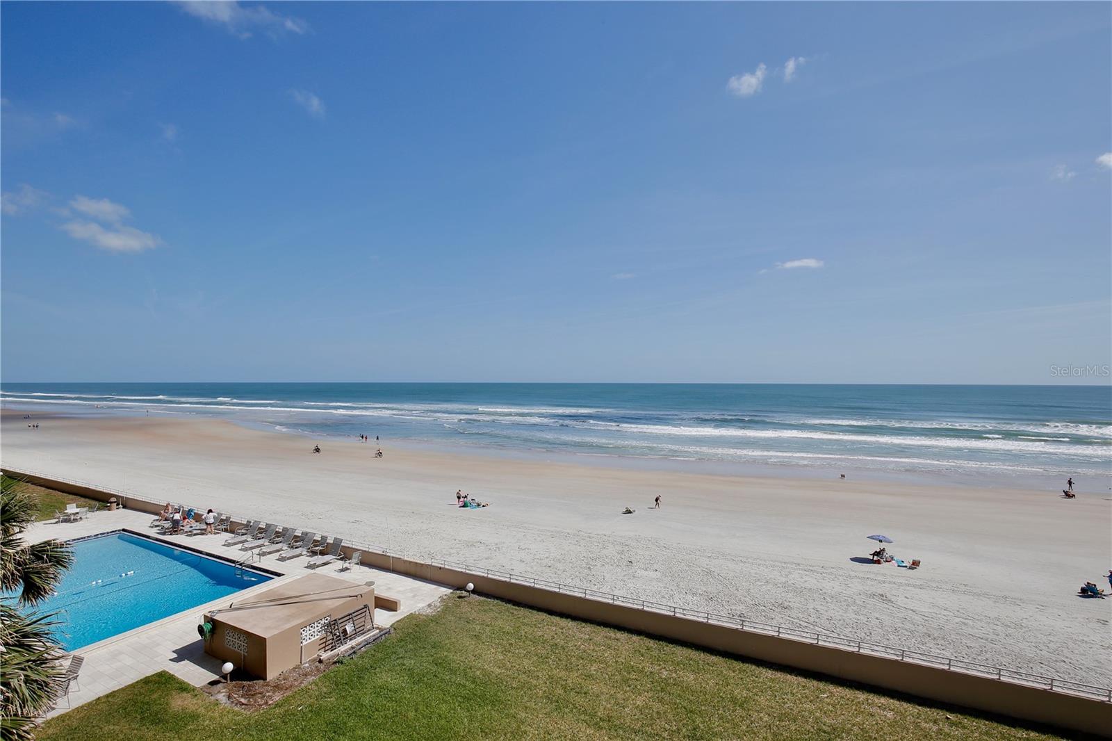Welcome home to Sandcastle Condominiums! This beachfront condo offers direct beach access, a swimming pool with a view of the ocean, an office space, and a clubhouse meeting room. Inside this beautiful three bedroom unit you’ll be greeted by a bright open floor plan with neutral colors, ceramic tile and wood floors. The kitchen offers granite counters with a bar top island, modern backsplash, an elegant tray ceiling, shaker cabinets, a wine bottle rack and recessed lights. The dining room flows into the living space with crown molding and incredible views of the gentle ocean waves rolling onto the shore. Open the sliding glass doors to the balcony and relax with the tranquil sounds of the ocean as you unwind after the day. Wake up to beach views in the primary suite with balcony access and an on suite bath featuring a granite counter vanity and glass door shower. The other two bedrooms are spacious and bright, and the guest bathroom features ample counter space and a tub/shower combo with sliding glass doors. Spend the weekends lounging in the sand and jumping waves, go fishing out on the Halifax River, visit the Ponce de Leon lighthouse, indulge in amazing seafood by the water, and experience the serenity the beach life has to offer. To see this captivating three bedroom condo on the beach, call today to schedule a showing and view the 3D virtual tour!