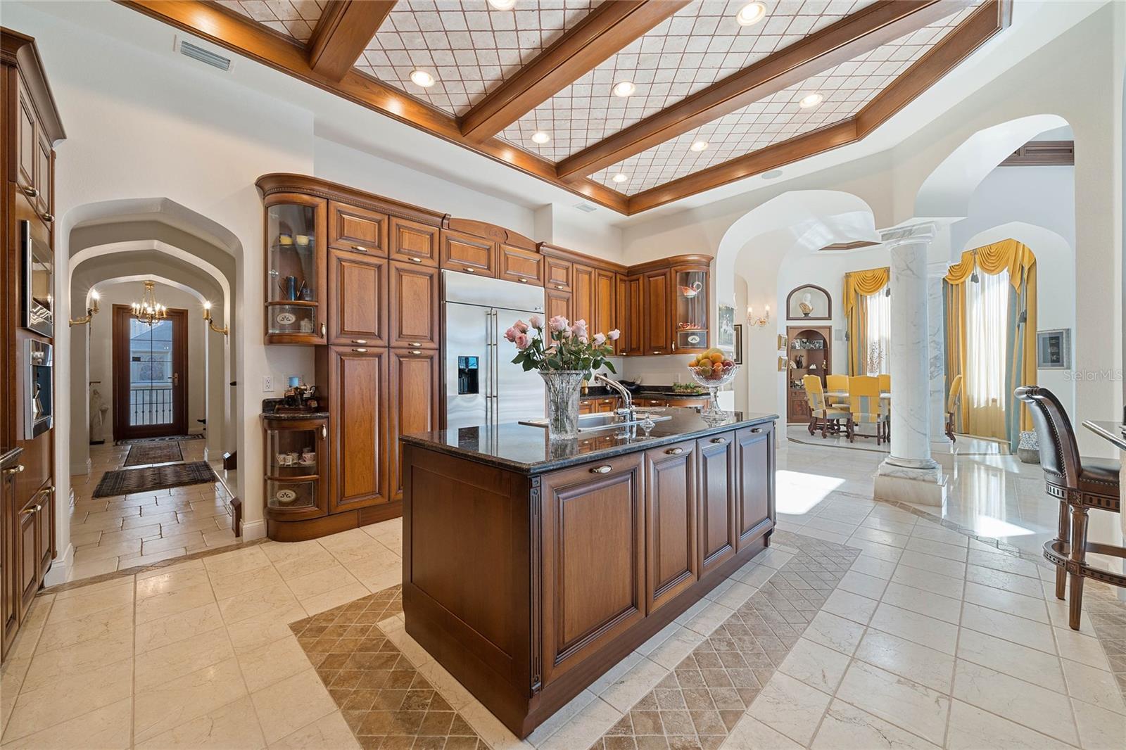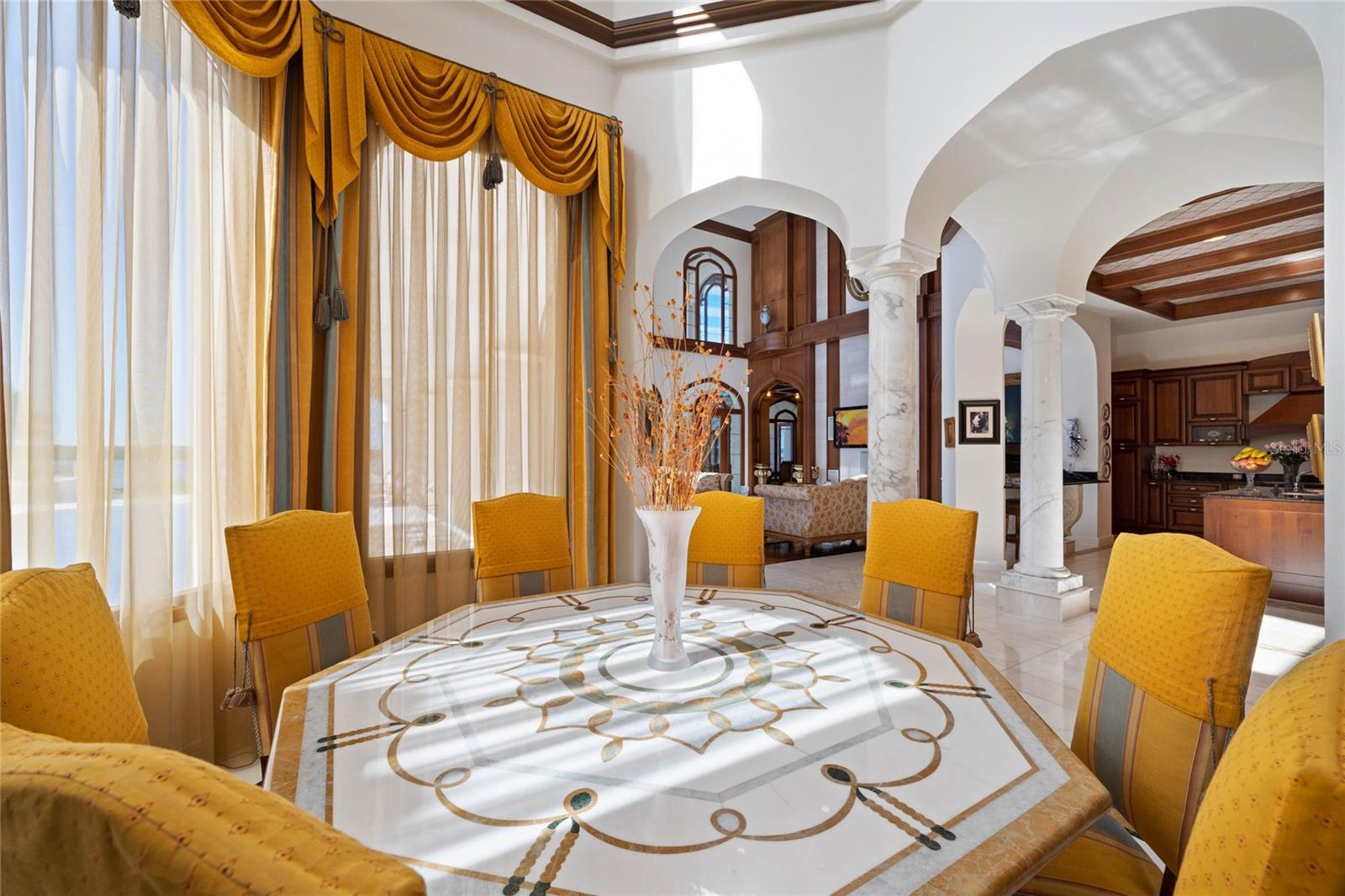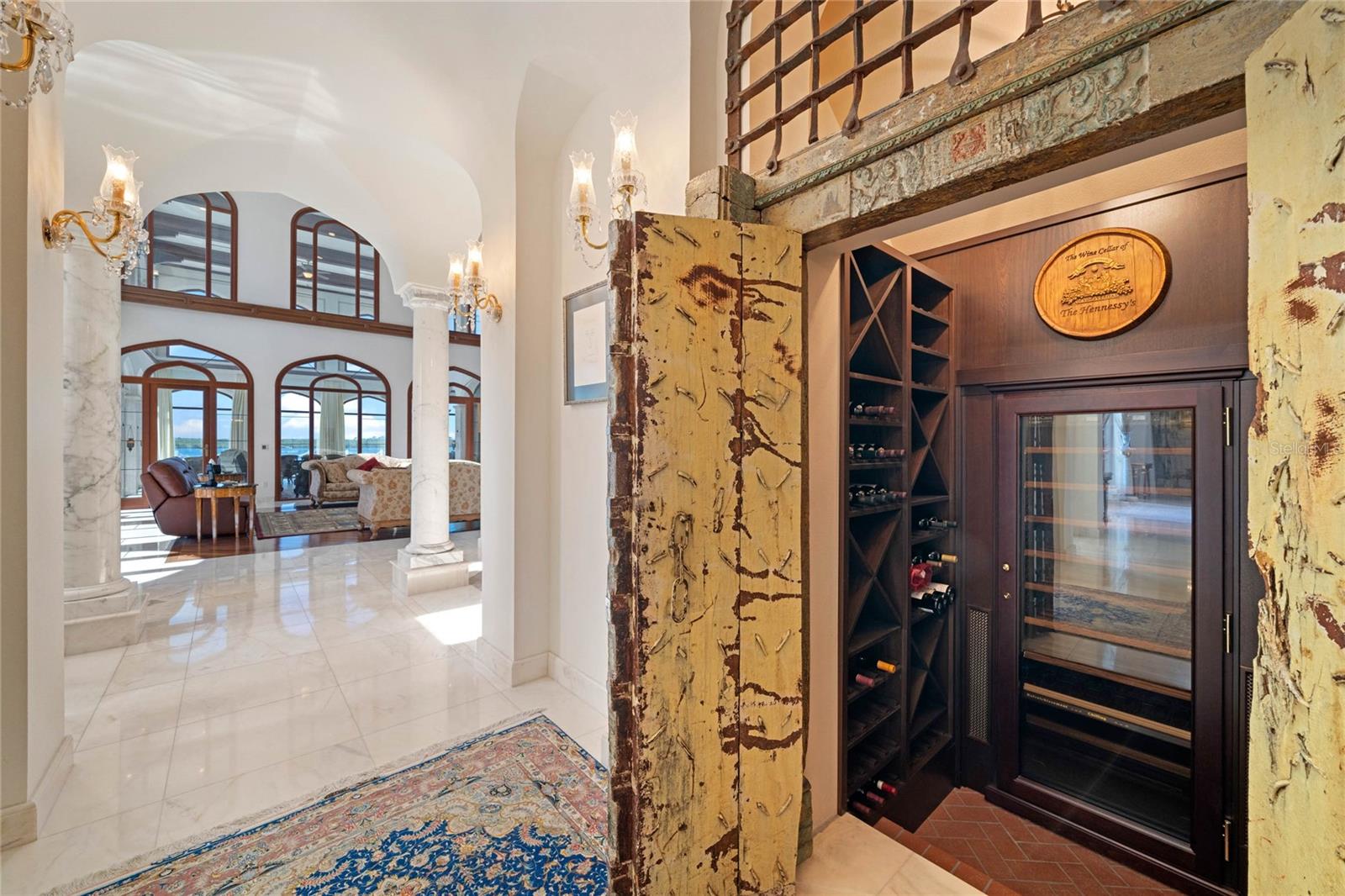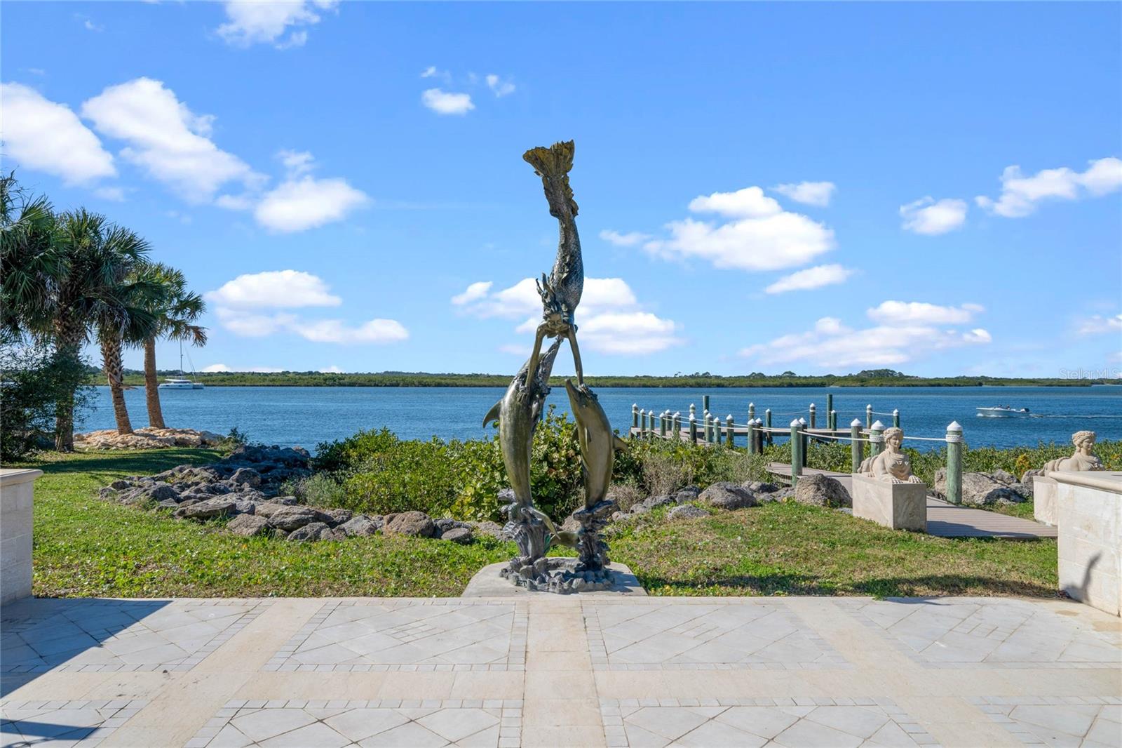A Masterpiece of Unparalleled Elegance on the Intracoastal A rare opportunity to own an architectural triumph—this 12,000-square-foot gated estate is the epitome of European craftsmanship, set on three private acres with 130 feet of direct Intracoastal waterfront. Designed over five years at a cost exceeding $11 million, this palatial masterpiece would require nearly $20 million to replicate today. A grand stone-paved drive, flanked by imported sculptures, leads to a majestic motor court centered by a custom marble fountain. The travertine-clad exterior, French mahogany windows, and handcrafted mahogany doors with African wood inlays and 24-karat gold fixtures set the tone for the opulence within. Step into the stunning foyer, where a dome ceiling imported from Italy and painted by Poli Verona crowns a grand staircase by Luis Beltran. The home is adorned with solid Carrara marble columns, open book marble flooring, and an entryway inlaid with a now-extinct marble—a true collector’s rarity. Crystal chandeliers from Milan illuminate each space, complementing the meticulously curated ceiling and floor designs. Designed for grand-scale entertaining, the home boasts a great room with soaring 24-foot ceilings, a lavish bar with intricate mosaic tile artwork, and a private movie theater featuring a Rolls-Royce-inspired Starlite ceiling and hand-painted Hollywood portraits. The expansive atrium, lined with panoramic water views, seamlessly blends indoor and outdoor living. The main kitchen showcases Italian walnut cabinetry by Aster Cucine, while a separate chef’s kitchen with commercial-grade appliances ensures seamless catering via the butler’s pantry. The primary suite is an oasis of grandeur, featuring rosewood flooring and ceiling beams, a private balcony, a sitting room, office/gym, and two opulent walk-in closets. The spa-like master bath boasts dual private water closets with bidets, a steam shower, and heated towel bars. Each guest suite offers a private balcony and en suite bath, providing five-star accommodations. Outdoors, the estate continues to impress with a 20’ x 60’ floating-edge pool and spa, framed by a custom-designed marble pergola. The veranda and sprawling outdoor entertaining spaces offer breathtaking water views, perfect for hosting unforgettable gatherings. A well-appointed guesthouse with a kitchen, living area, and two en suite bedrooms ensures privacy for visitors. A residence of this caliber is not merely a home—it is an unparalleled statement of prestige, craftsmanship, and timeless luxury.