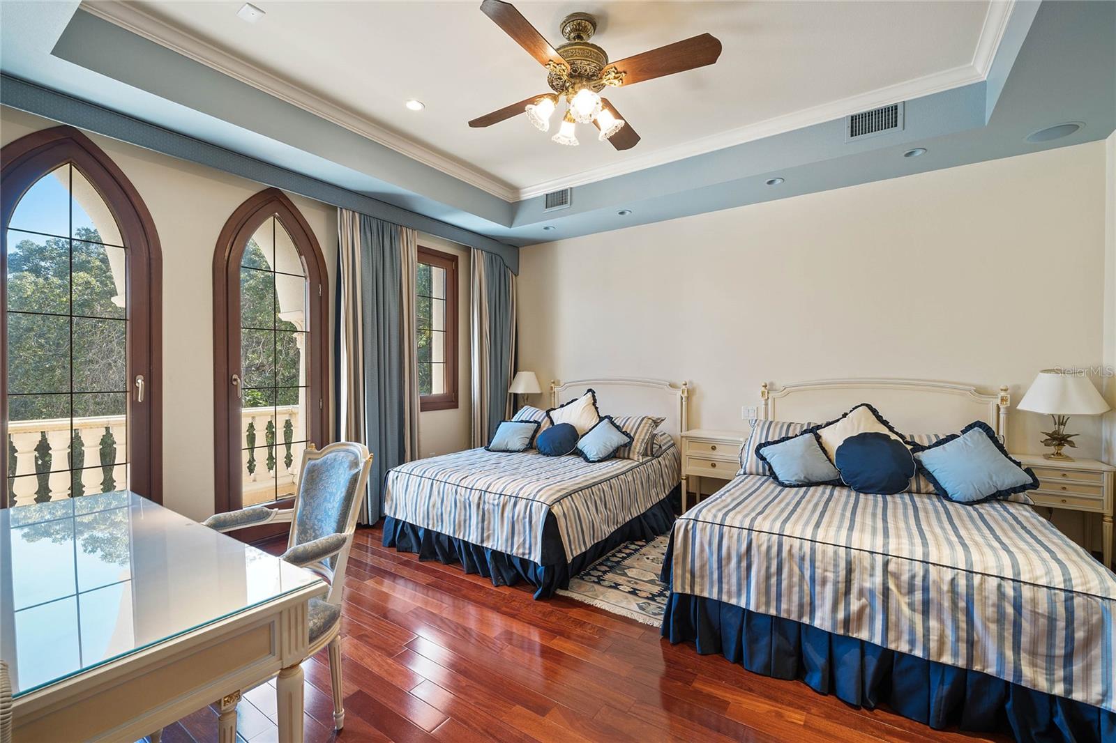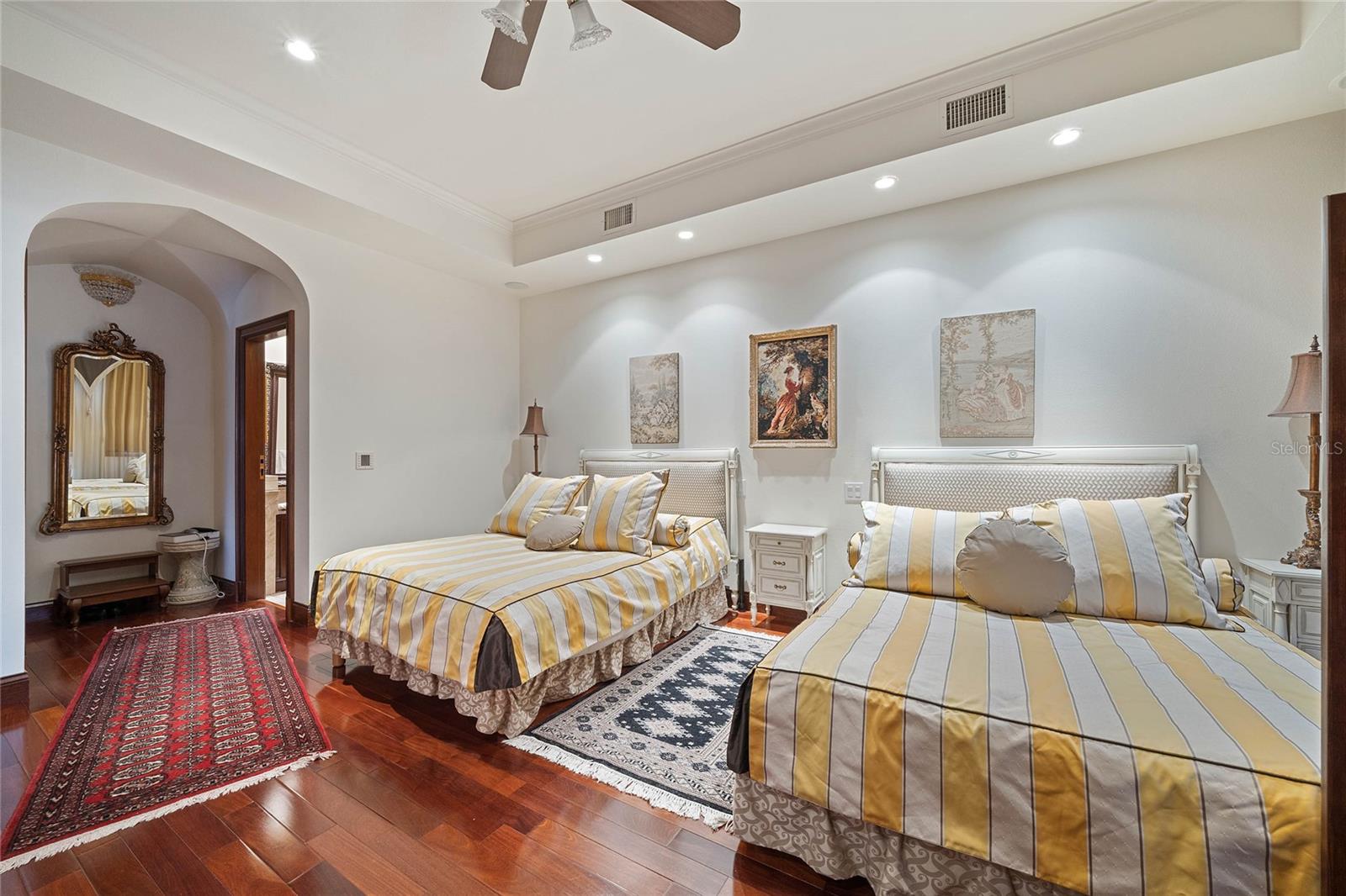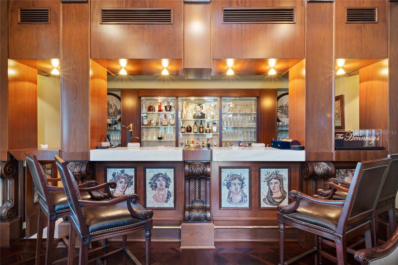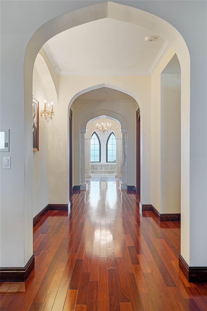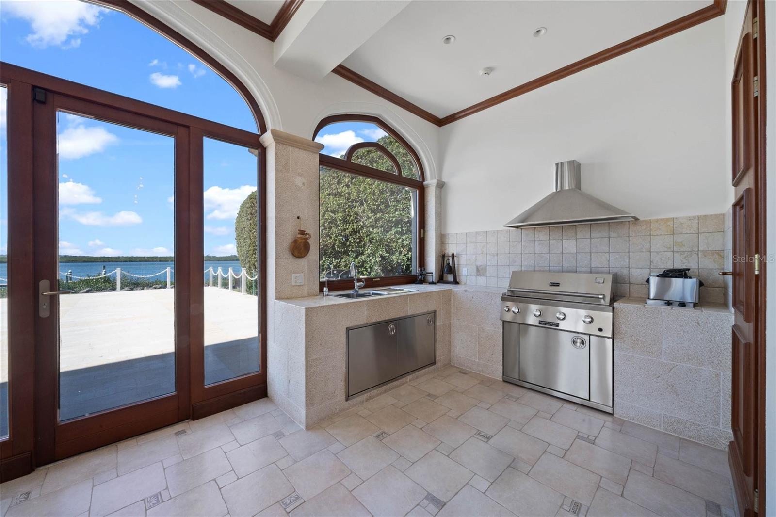 A Masterpiece of Unparalleled Elegance on the Intracoastal A rare opportunity to own an architectural triumph—this 12,000-square-foot gated estate is the epitome of European craftsmanship, set on three private acres with 130 feet of direct Intracoastal waterfront. Designed over five years at a cost exceeding $11 million, this palatial masterpiece would require nearly $20 million to replicate today. A grand stone-paved drive, flanked by imported sculptures, leads to a majestic motor court centered by a custom marble fountain. The travertine-clad exterior, French mahogany windows, and handcrafted mahogany doors with African wood inlays and 24-karat gold fixtures set the tone for the opulence within. Step into the stunning foyer, where a dome ceiling imported from Italy and painted by Poli Verona crowns a grand staircase by Luis Beltran. The home is adorned with solid Carrara marble columns, open book marble flooring, and an entryway inlaid with a now-extinct marble—a true collector’s rarity. Crystal chandeliers from Milan illuminate each space, complementing the meticulously curated ceiling and floor designs. Designed for grand-scale entertaining, the home boasts a great room with soaring 24-foot ceilings, a lavish bar with intricate mosaic tile artwork, and a private movie theater featuring a Rolls-Royce-inspired Starlite ceiling and hand-painted Hollywood portraits. The expansive atrium, lined with panoramic water views, seamlessly blends indoor and outdoor living. The main kitchen showcases Italian walnut cabinetry by Aster Cucine, while a separate chef’s kitchen with commercial-grade appliances ensures seamless catering via the butler’s pantry. The primary suite is an oasis of grandeur, featuring rosewood flooring and ceiling beams, a private balcony, a sitting room, office/gym, and two opulent walk-in closets. The spa-like master bath boasts dual private water closets with bidets, a steam shower, and heated towel bars. Each guest suite offers a private balcony and en suite bath, providing five-star accommodations. Outdoors, the estate continues to impress with a 20’ x 60’ floating-edge pool and spa, framed by a custom-designed marble pergola. The veranda and sprawling outdoor entertaining spaces offer breathtaking water views, perfect for hosting unforgettable gatherings. A well-appointed guesthouse with a kitchen, living area, and two en suite bedrooms ensures privacy for visitors. A residence of this caliber is not merely a home—it is an unparalleled statement of prestige, craftsmanship, and timeless luxury.
