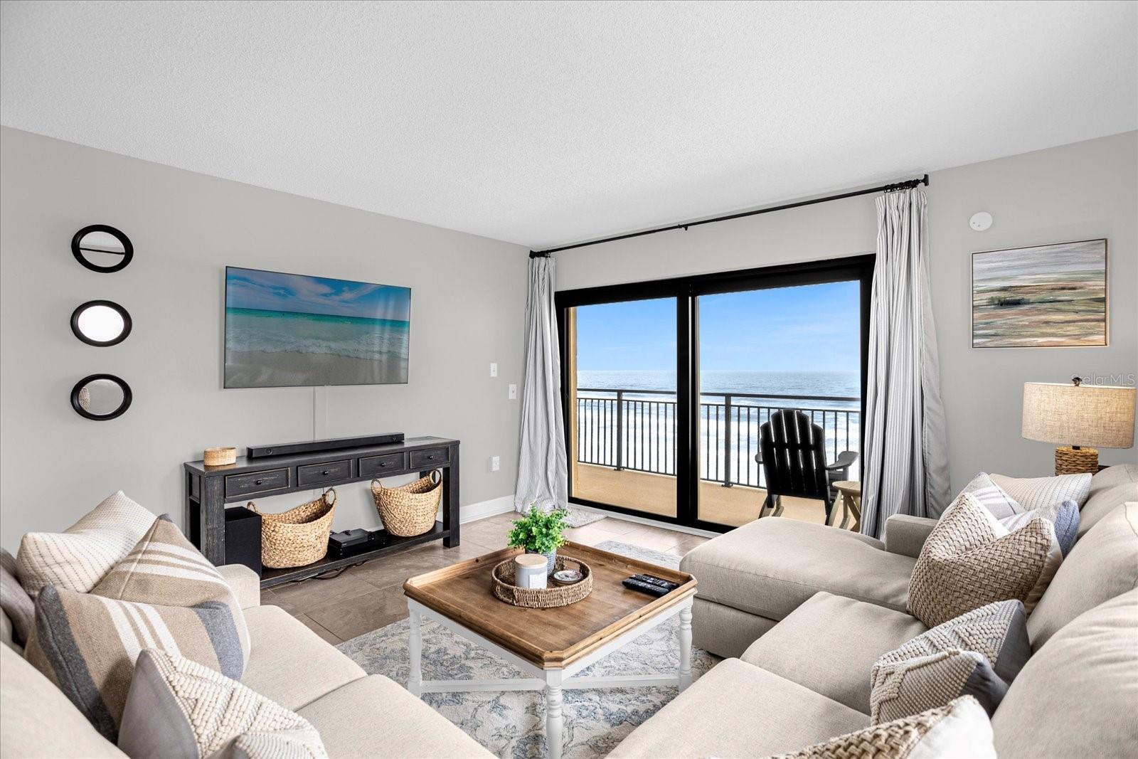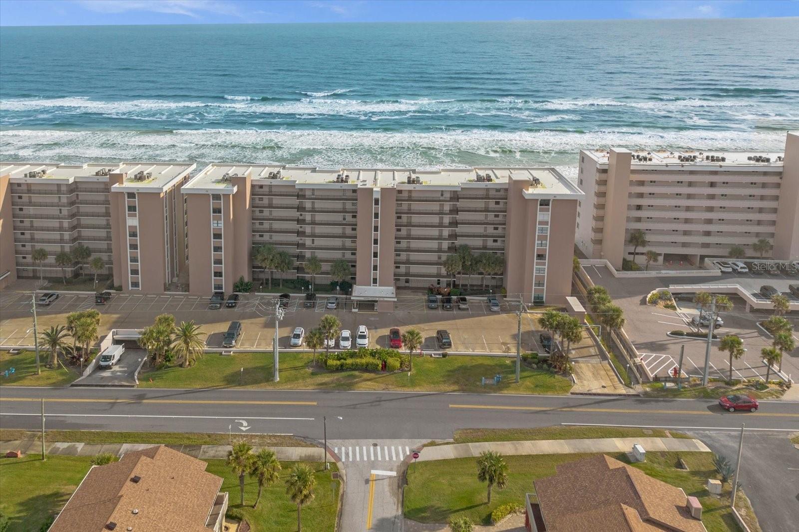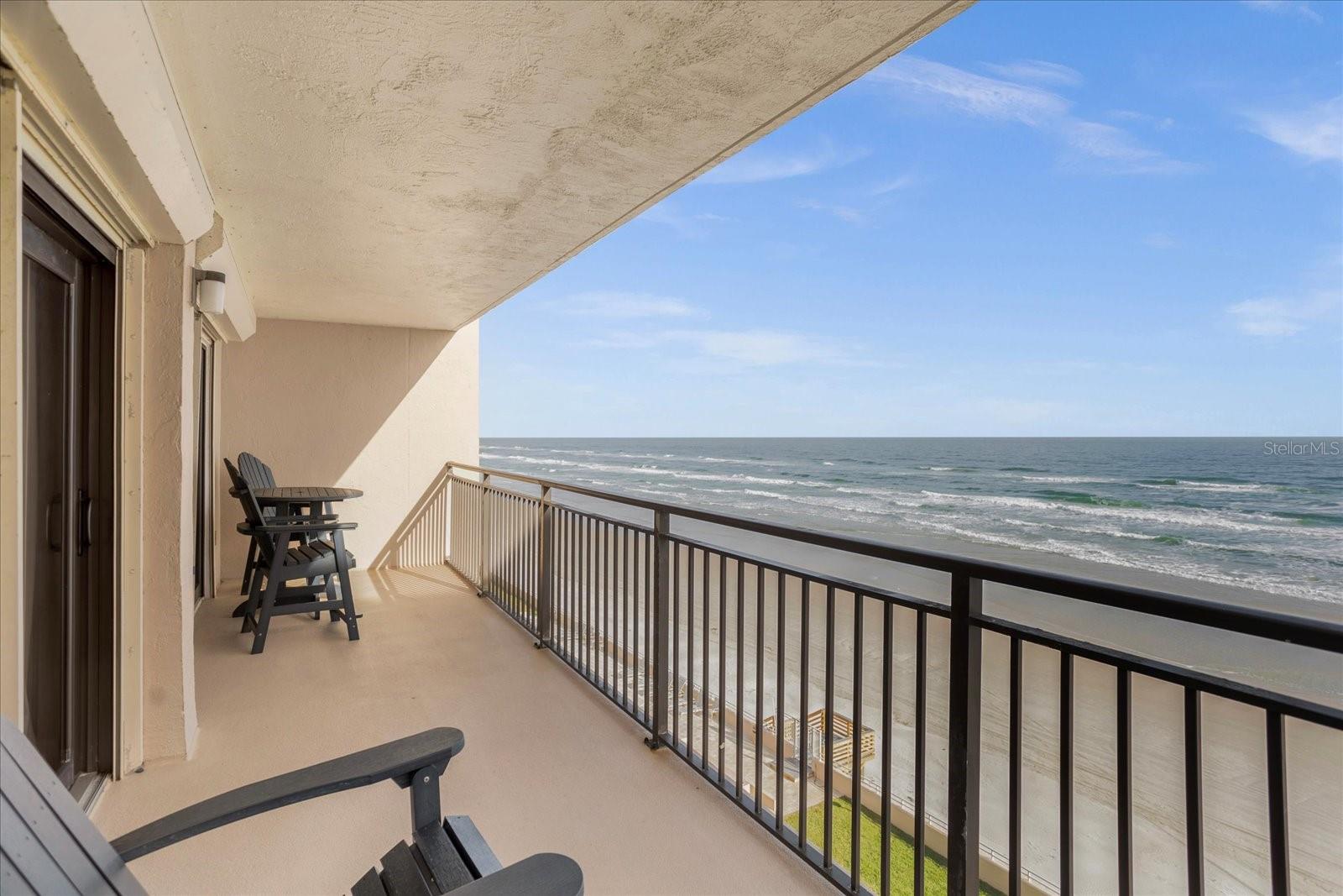 Experience coastal luxury at Sandcastle Condominiums. This three-bedroom beachfront condo offers direct beach access, an ocean-view pool, and versatile spaces, including an office and a clubhouse meeting room. The interior features a spacious open floor plan with neutral colors and ceramic tile. The gourmet kitchen boasts granite counters, a bar-top island, modern backsplash, and an elegant tray ceiling. Sliding glass doors open to a balcony with breathtaking ocean views. Two additional bright bedrooms share a guest bathroom. Explore local attractions, from the historic Ponce de Leon lighthouse to waterfront seafood indulgence. Schedule a private viewing today.