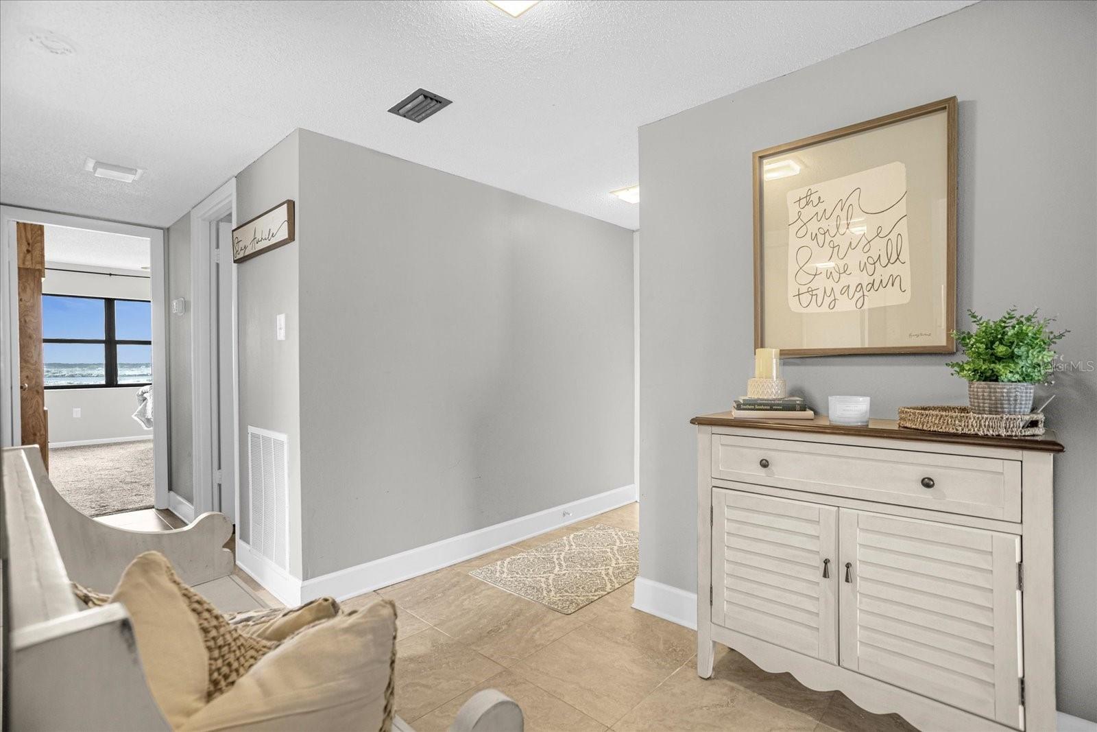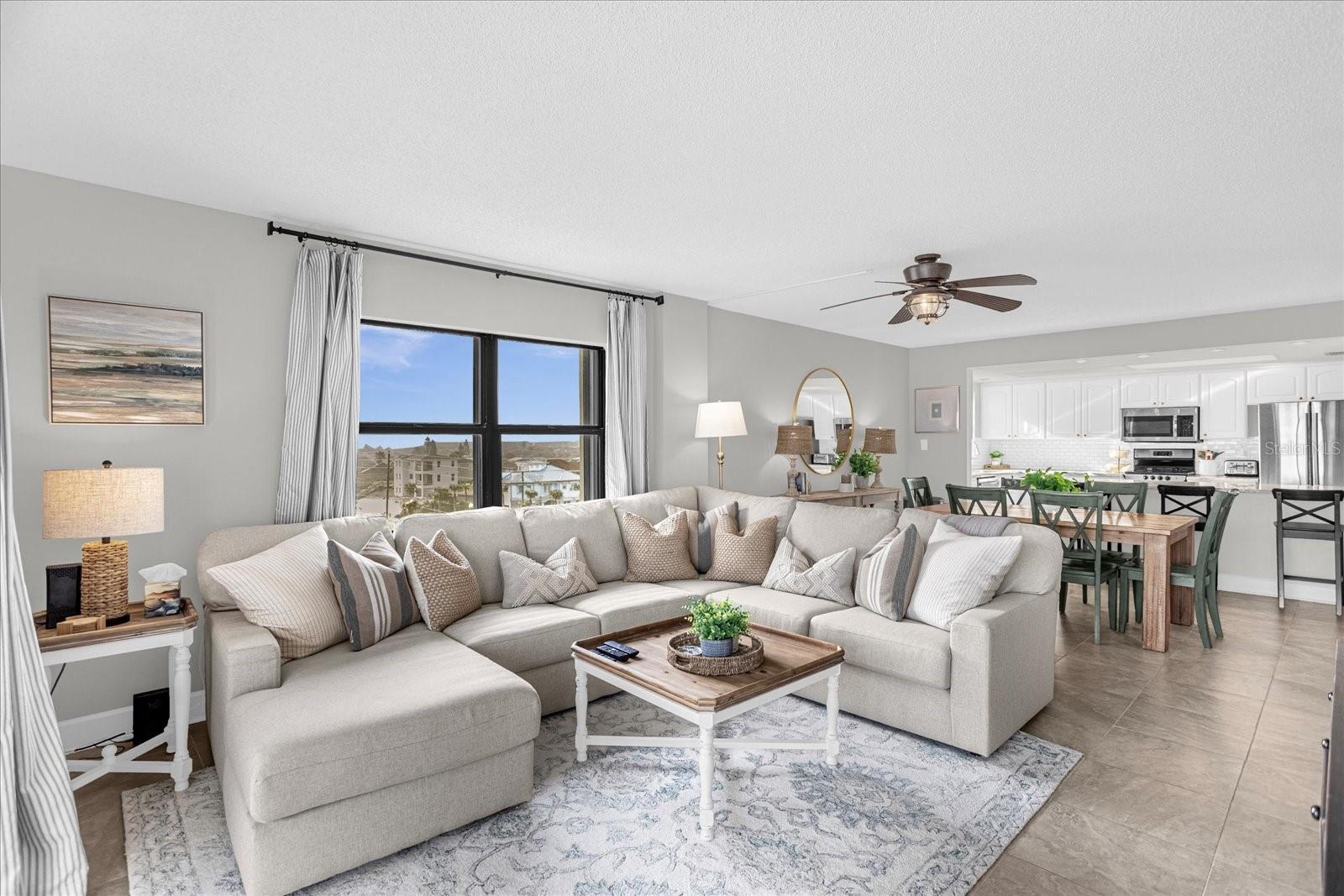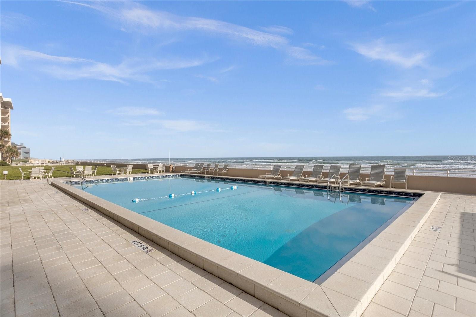 Experience coastal luxury at Sandcastle Condominiums. This three-bedroom beachfront condo offers direct beach access, an ocean-view pool, and versatile spaces, including an office and a clubhouse meeting room. The interior features a spacious open floor plan with neutral colors and ceramic tile. The gourmet kitchen boasts granite counters, a bar-top island, modern backsplash, and an elegant tray ceiling. Sliding glass doors open to a balcony with breathtaking ocean views. Two additional bright bedrooms share a guest bathroom. Explore local attractions, from the historic Ponce de Leon lighthouse to waterfront seafood indulgence. Schedule a private viewing today.