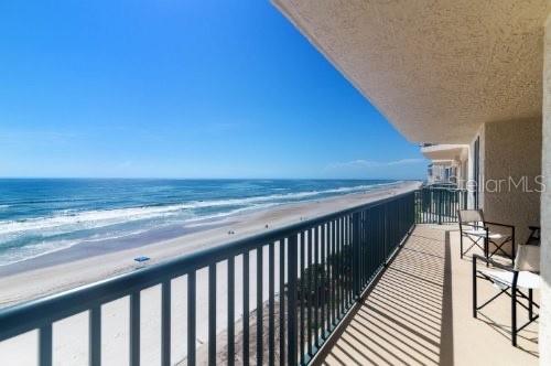 Rare opportunity! Spectacular oceanfront oasis on the historic, no-drive beach in legendary Ponce Inlet. This completely renovated, spacious and open floor plan provides three bedrooms and three full baths and offers unparalleled views of the Atlantic Ocean and Halifax River. This fully furnished, rarely available floor plan provides two primary suites, each oceanfront and with full balconies in addition to an oceanfront living room with a full balcony. Panoramic ocean views immediately relax and recharge you. Located on the sixth floor of Dimucci Tower 9, one of the most sought-after buildings in Ponce Inlet just minutes from the Ponce Inlet Lighthouse, fabulous restaurants and bars along with million-dollar views from every gorgeous sunrise to majestic sunsets that can each be viewed daily from the comfort of your new beach paradise. This 2,174-square-foot condominium boasts a large open floor plan with loads of living space to entertain or just spread out and enjoy the eastern and western views. As you enter you are immediately drawn to the views through the brand-new, UV rated, impact-resistant sliders accompanied with special turtle glass to protect the beautiful creatures, out to the expansive ocean to a balcony that extends the entire length of the unit. You walk into a large living space with brand new floors throughout and a wall of windows with plantation shutters to take in the amazing views facing west. A bright and open kitchen with wraparound bar height counters is perfect for gathering anytime the kitchen is in use and another large living space to take in those ocean views while relaxing with family and friends. The primary suite has a large walk-in closet in addition to two large linen closets. Both suites have private baths with new counters, tile, showers and fixtures. The third bedroom comes with a spacious walk-in closet and attached full bath, also with new updates. This unit also boasts a large laundry room with room for storage and a lockable owner's closet with ample space for all those beach toys. This is resort-style living at its best with an oceanfront pool/hot tub, club/social and fitness rooms, and plenty of parking including one designated space in the garage. Come enjoy coastal paradise today! Building has just undergone a complete exterior renovation. Including the full exterior of the building, front and rear balconies, elevators, etc.