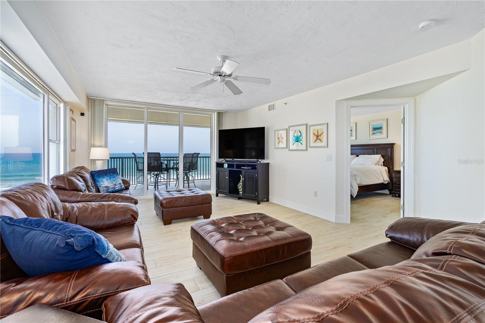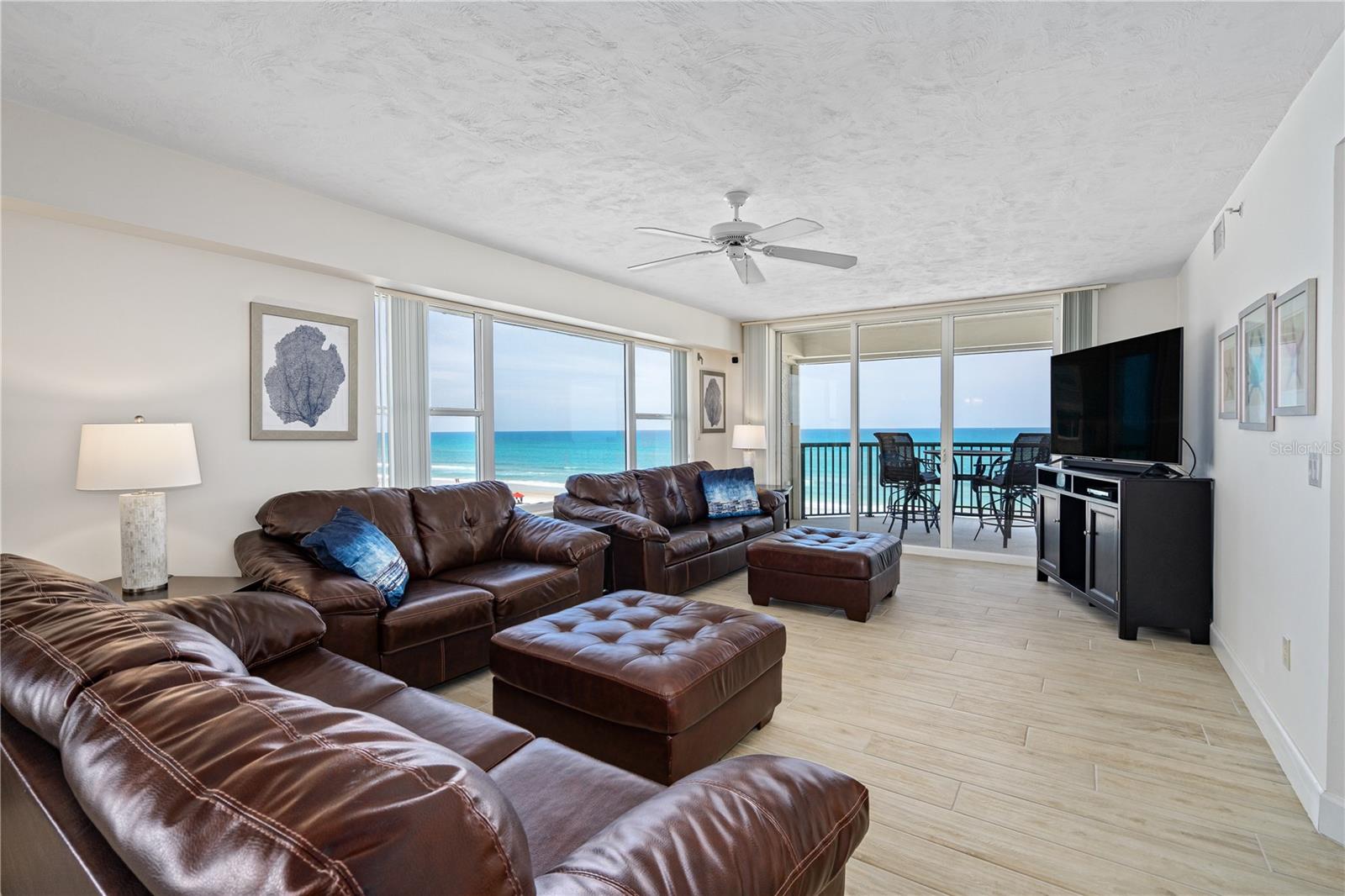 Completed and passed MILESTONE Inspections. Building in impeccable condition! This pristine, END UNIT, WATERFRONT condo in the desired Towers Nine! This highly sought-after DiMucci Development is renovated and move-in ready just waiting for you. A gorgeous 3 bedroom, 3 bathroom home with open floor plan so bright and airy, top of the line updates throughout. Beautiful wood-like tile in front porch leads to the charming entryway. Oversized living and dining room, with space for formal dining room or eat-in kitchen and additional seating. The beautiful open kitchen has newer appliances, backsplash and bright plentiful 42-inch cabinetry. Exquisite wood-like tile flooring in all of home - no carpet. The front patio/ sitting room off the kitchen gives you space to enjoy your river and treetop views. The spacious OCEANFRONT patio is ideal for your morning coffee or evening night cap. Stunning views in every room. You are welcomed by the spacious bedroom with stunning wood-like tile flooring and private en-suite bathroom. So much storage, large walk in closet and amazing VIEWS. Second bedroom has private bath with walk in closet. Features large primary bedroom OCEANFRONT and balcony. Updated bathroom with dual sinks, walk-in shower and separate bathtub. Spacious walk-in closet. A full-sized laundry room comes complete with washer and dryer. Brand NEW HVAC. SMART home apps accessible by phone. Electric Hurricane Shutters on every window/ sliding glass doors! This CORNER/ END UNIT condo has been so well cared for and is in mint condition. Furnishings negotiable. Towers Nine is luxurious living of the finest. Everything you want that is newly renovated from a large resort style pool and spa, fitness room, and beautiful club house with pool table. Covered parking and one assigned parking space. Additional locked storage and bike rack. Towers Nine is a NO DRIVE Beach conveniently situated next to Historic Ponce Inlet Lighthouse & Jetty Park. Many parks, marinas, fabulous restaurants, dog park and so much more! SELLER FINANCING AVAILABLE. Book your private viewing today before it’s too late! Welcome Home!!!