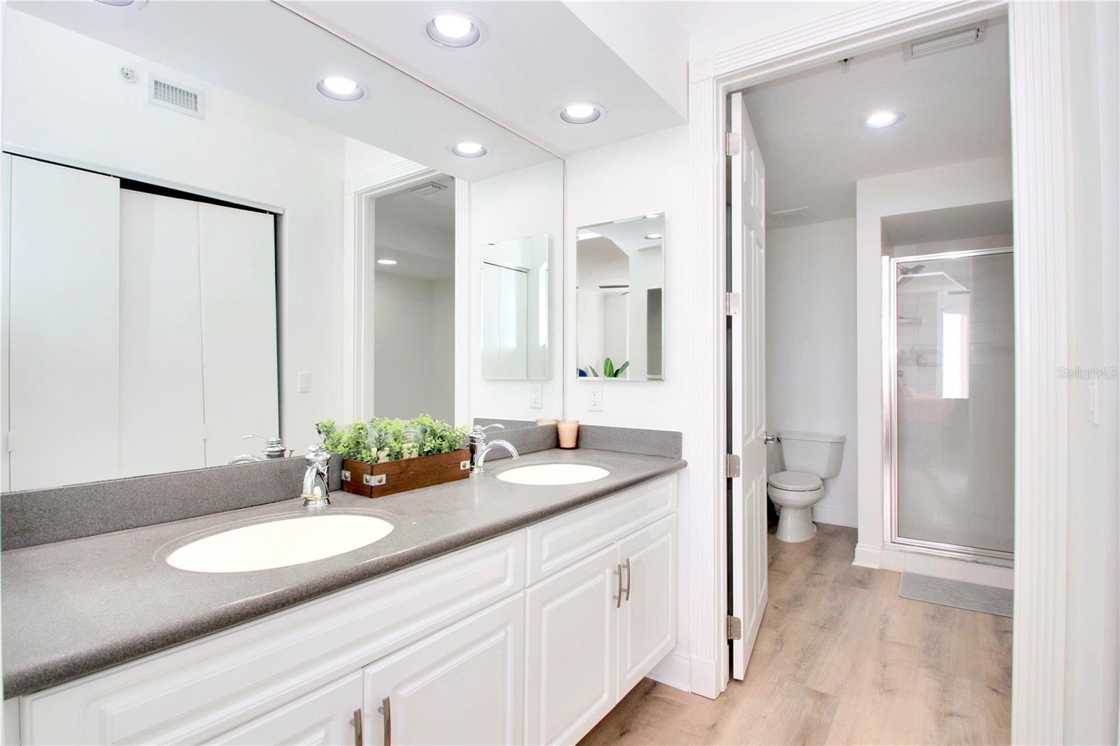 A bit of paradise! Perfect location for this 3 bedroom fourth floor "Tarpon" model overlooking the marina. Beautiful view of the pool, marina and river from balcony. Bright open floor plan with formal dining area and breakfast bar. Two of the bedrooms have en-suite bathroom and access to the balcony. Primary bath offers double vanity, shower and separate tub. Vinyl flooring throughout plus 10 ft ceilings, crown molding and granite counters in kitchen. Reserved garage parking plus lockable storage unit. Wonderful amenities including 3 POOLs, 9 hole par three GOLF, 4 TENNIS courts, two FITNESS centers, BEACH club with sauna & steam, onsite restaurant, fishing PIER and 142 slip MARINA available for lease or purchase. Building had new roof and exterior painting in 2024. Seller offers one year home warranty. You will love HARBOUR VILLAGE!