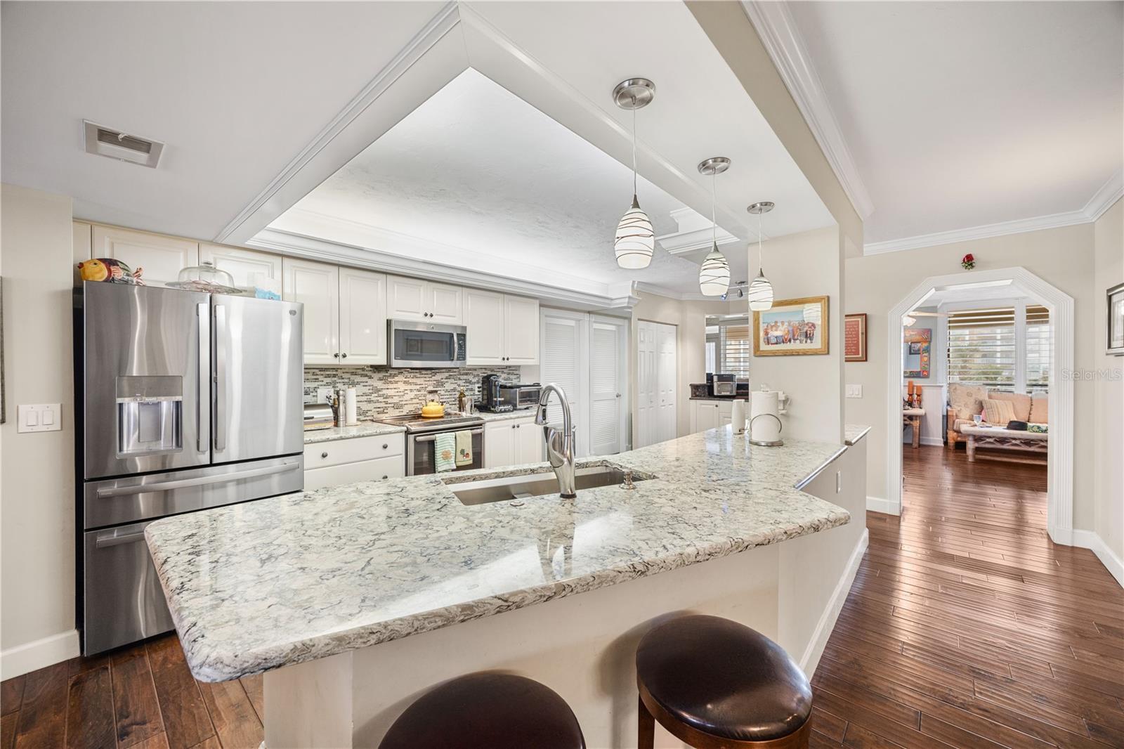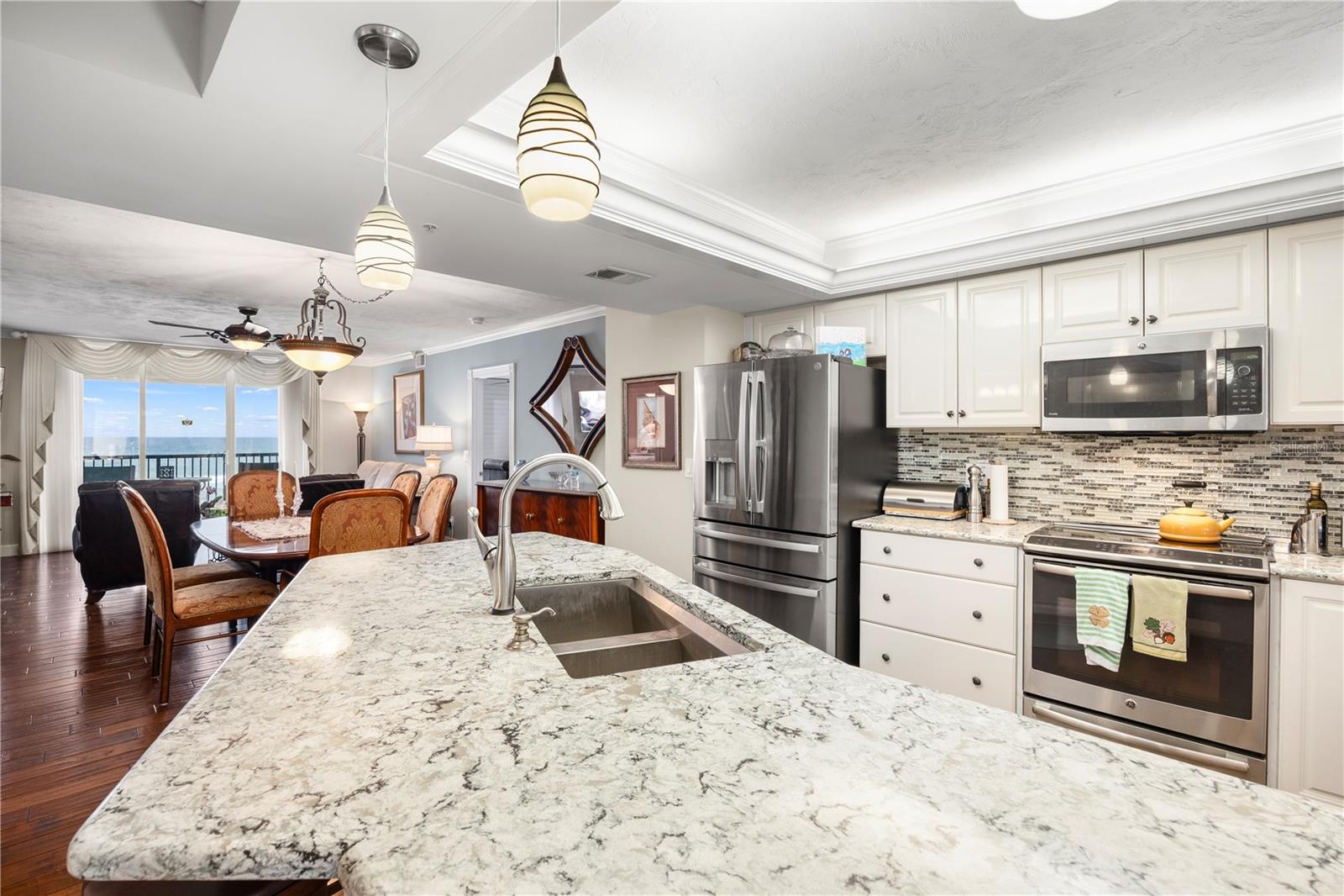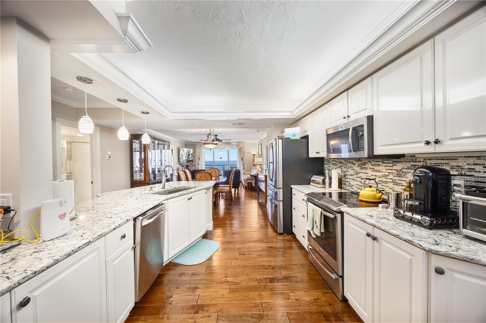 Experience refined oceanfront living in this beautifully upgraded 3BR/3BA condo at the exclusive Towers VII in Ponce Inlet, located directly on the no-drive beach. Featuring a fully enclosed lanai that expands the under-air living space, this unit offers rare versatility and comfort. Highlights include hardwood floors, crown molding, plantation shutters, a granite kitchen with custom cainbets, stainless appliances, and two oceanfront primary suites with spa-like baths. Towers VII is highly sought after for its one-year minimum lease policy, preserving its quiet, upscale atmosphere. The building features a newly completed seawall and is undergoing amenity upgrades within the next 90 days, enhancing its resort-style offerings, which include a heated oceanfront pool and spa, fitness center, social room, secure underground parking, and extra storage. Pet-friendly (2 pets up to 60 lbs) and ideally located near dining, marinas, parks, the Ponce Inlet Lighthouse, and more. Embrace coastal living at its finest—schedule your private tour today!