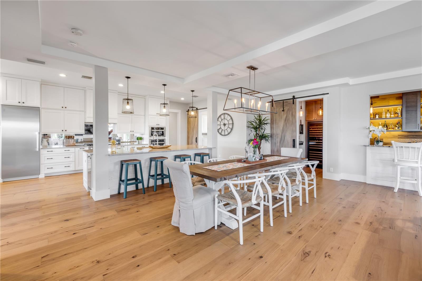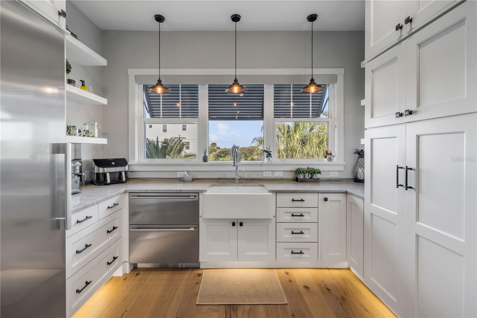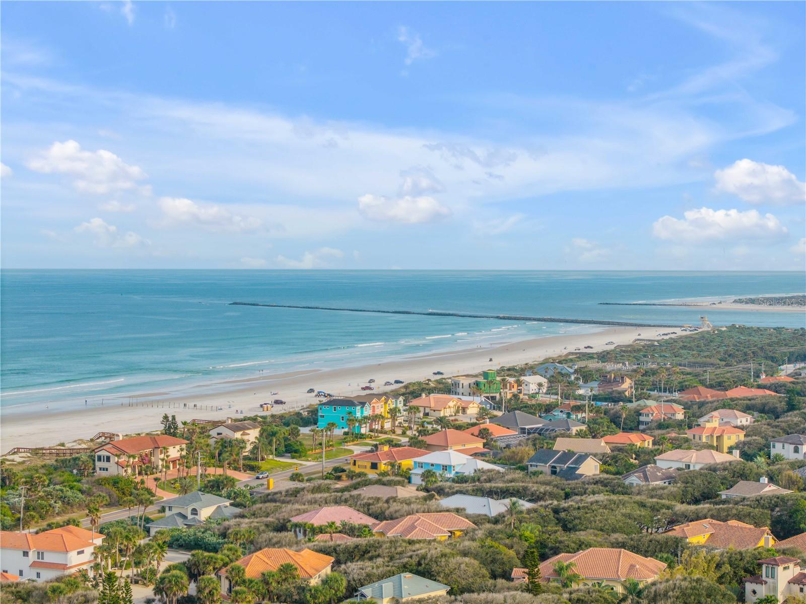 Completed in 2017, this three-story concrete block estate represents the pinnacle of refined coastal living, offering 5022 square feet of thoughtfully designed space. With four bedrooms, four bathrooms, a private elevator, and a heated resort-style pool, the residence delivers an exceptional blend of elegance, privacy, and elevated oceanfront lifestyle. Situated on a prominent corner lot, the home is framed by professionally designed landscaping that functions as a natural bioswale. A serene ornamental waterfall and pond border one side of the property, ensuring permanent privacy with no future development permitted—a rare and valuable feature along the coast. Sweeping, unobstructed Atlantic Ocean views are enjoyed from the second and third levels, as well as the expansive sky deck, while the primary suite offers a truly extraordinary retreat, where the endless ocean horizon becomes both the evening backdrop and the morning view. The gourmet kitchen is appointed with premier Miele appliances, including dual ovens, multiple refrigeration units, a commercial-grade ice maker, and generous storage—ideal for both intimate gatherings and sophisticated entertaining. An adjacent custom bar features dual wine coolers, beverage refrigeration, and refined display shelving. A bespoke two-room dressing suite provides exceptional wardrobe capacity with custom cabinetry and an integrated safe. The home’s open-concept design allows each level to flow seamlessly between indoor and outdoor spaces, inviting abundant natural light and coastal breezes throughout. Adding both convenience and distinction, a quiet private elevator offers effortless access to all floors. Fireplaces on the second and third levels enhance ambiance on cooler evenings, while a fully automatic gas-powered generator ensures uninterrupted power—an essential feature for Florida coastal living. Additional highlights include a generous laundry room with custom cabinetry and a commercial-grade Speed Queen washer and dryer, reflecting the home’s focus on quality and durability. Peace of mind comes standard with a full security system covering every door and window, along with motion sensors and alarms throughout. Set within the only gated community on the barrier island, the property offers a rare sense of privacy and exclusivity for coastal living. Additional features include deeded private access to the Atlantic Ocean, a heated pool with Pentair wireless controls that can be managed from anywhere, an oversized three-car garage ideal for boat or motorhome storage with both 30 and 50 amp hookups, and a fully fenced backyard finished with high-quality artificial turf for easy, low maintenance living. This distinguished residence is more than a home—it is a private coastal sanctuary, thoughtfully designed for those who value sophistication, security, and timeless ocean views.