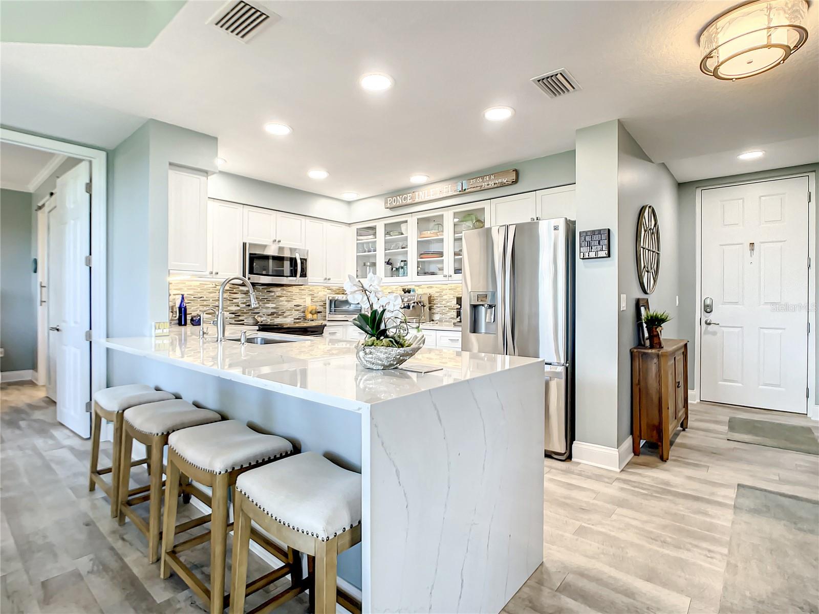 Discover your dream coastal haven in the serene community of Harbour Village. Nestled in the heart of Ponce Inlet, this immaculate 2-bedroom, 2.5-bathroom condo, remodeled into two luxury suites, is a gateway to a luxurious beachside lifestyle. With stunning intercoastal and ocean views, this property offers the perfect blend of tranquility and adventure. This charming condo welcomes you with an open, sun-soaked floor plan. The spacious living room seamlessly connects to the dining area and kitchen, making it ideal for hosting family and friends. The remodeled layout provides two luxurious suites, offering versatility and sophistication. Prepare meals in the modern kitchen, equipped with stainless steel appliances and ample cabinet space. The primary suite includes a cozy seating area, providing a private retreat within your coastal oasis. Residents of Harbour Village enjoy an array of amenities, including two resort-style pools, a hot tub, private beach access, and a private beach club. Stay active with two gyms, and take advantage of easy access to the marina for all your boating adventures (boat slip available for purchase separately). This well-maintained community offers the ultimate Florida lifestyle, combining luxury living with the natural beauty of Ponce Inlet. This is your golden opportunity to own a slice of paradise in one of Florida's most sought-after coastal destinations.