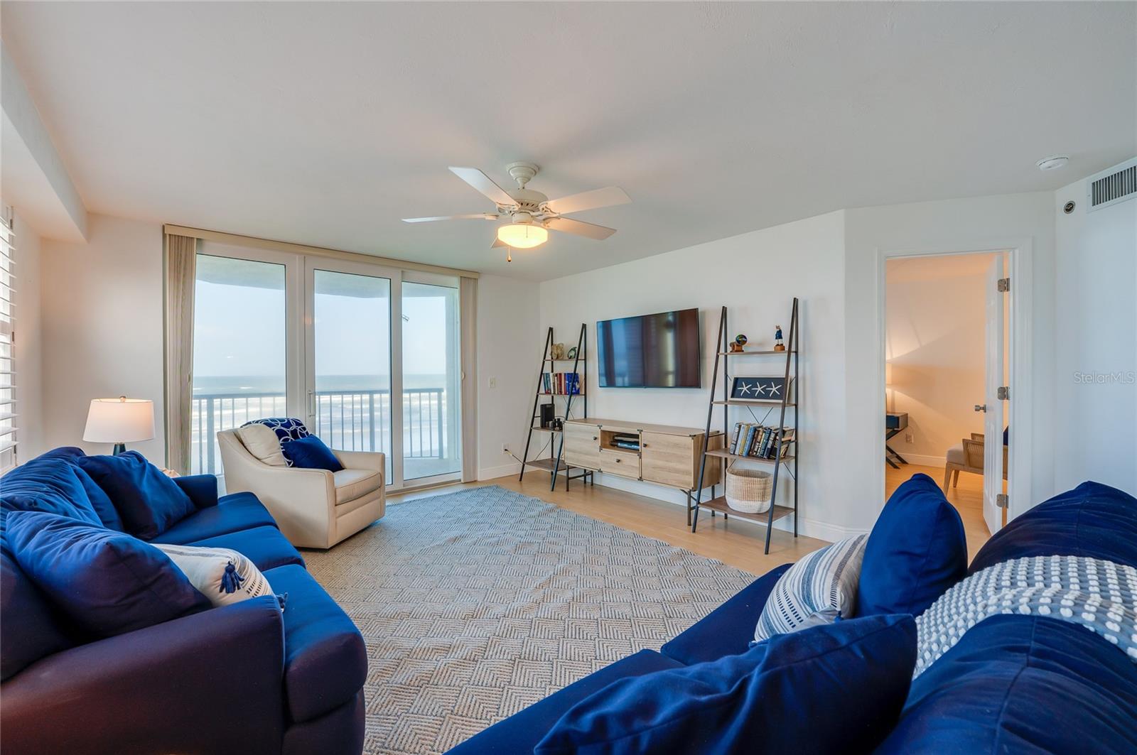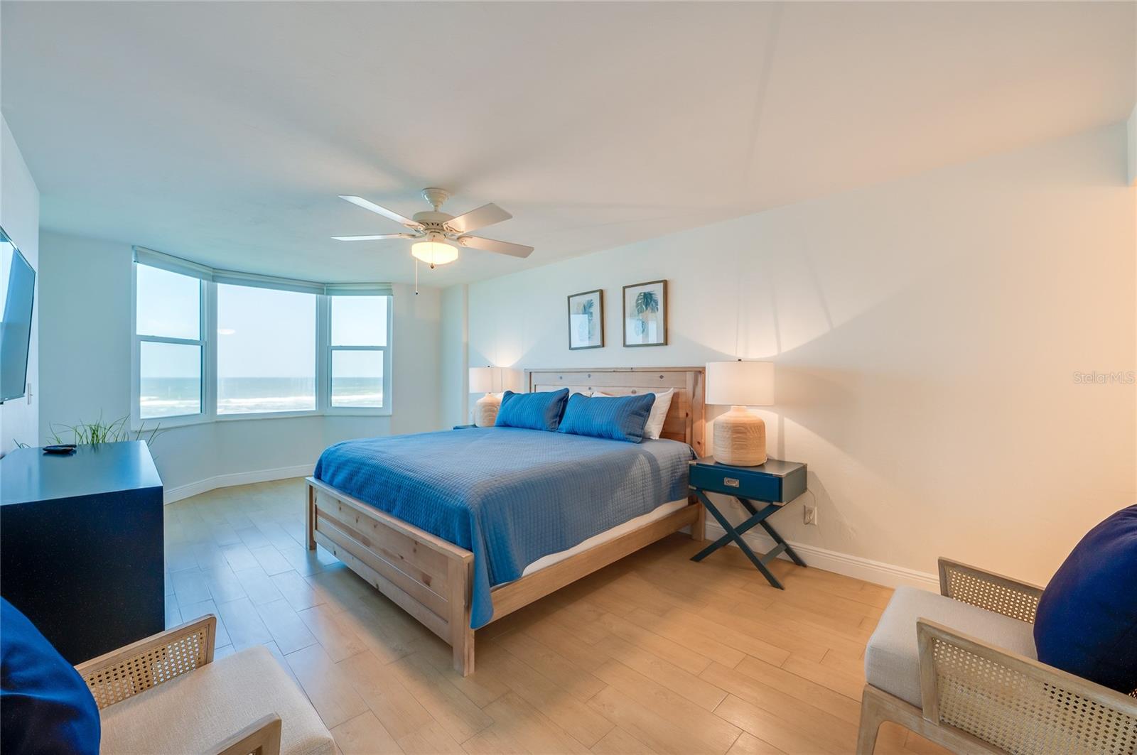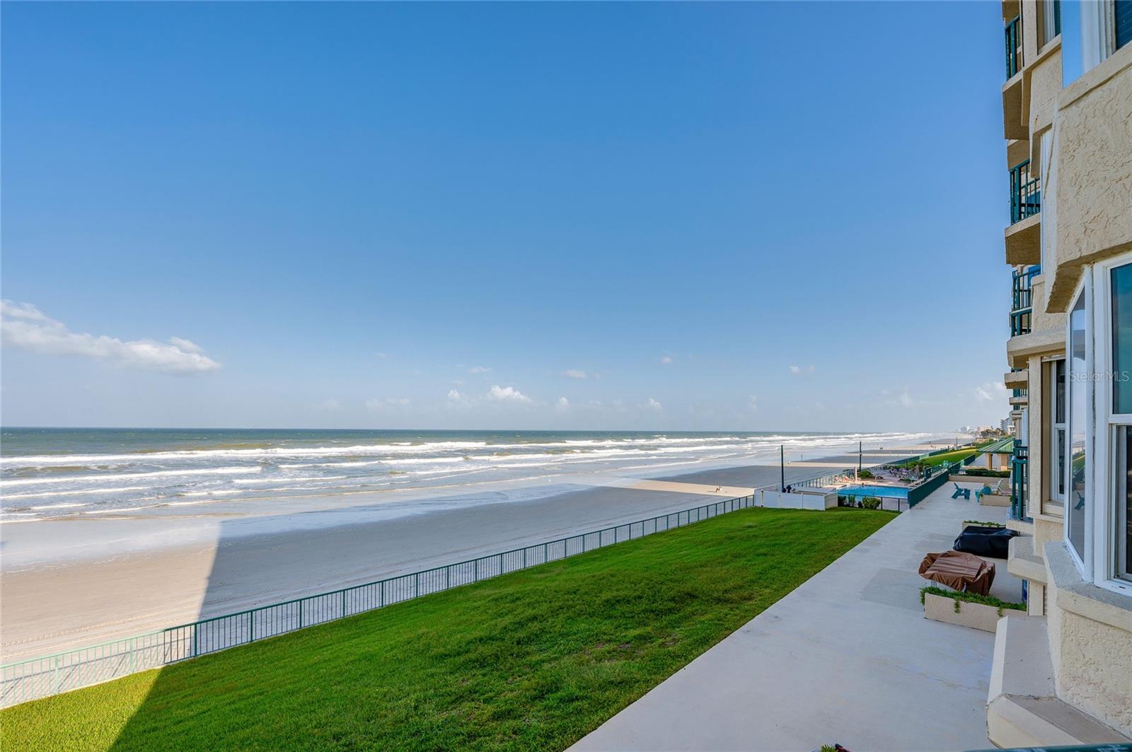 Direct Oceanfront corner unit with tons of sunshine! No damage from hurricane Milton. Experience coastal luxury in this exceptional, stunning, fully furnished 3 bedroom, 3 bathroom end unit in the gated Towers at Ponce Inlet. Behold the beauty of a private, no-drive beach just steps away, offering mesmerizing sunsets and invigorating sunrises. Step onto the balcony and enjoy a morning coffee or evening cocktail overlooking the endless expanse of the Atlantic ocean. The generous 2,060 sqft of living space is perfect for comfortable living and entertaining. The kitchen boasts white cabinets and counters that create a bright and airy ambiance, recessed lighting and the breakfast bar provides additional seating for casual gatherings. The generous primary suite features a bay window that frames breathtaking ocean views. Revel in the luxury of a large walk-in closet and an ensuite with a double sink vanity, garden tub, and a walk-in shower. This sanctuary opens up to the balcony through its own sliding door, allowing you to relish the ocean breeze at any time. New AC in 2023. Additional storage space in the storage closet on the lanai and underground assigned parking. Immerse yourself in leisure with 3 pools, a club room featuring a pool table, kitchen, and library, an oceanfront fitness center, sauna, tennis and pickleball courts, and even an EV charging station. Indulge in the epitome of coastal living, where every moment is a celebration of the sea and the endless horizon. All information recorded in the MLS is intended to be accurate, but cannot be guaranteed.