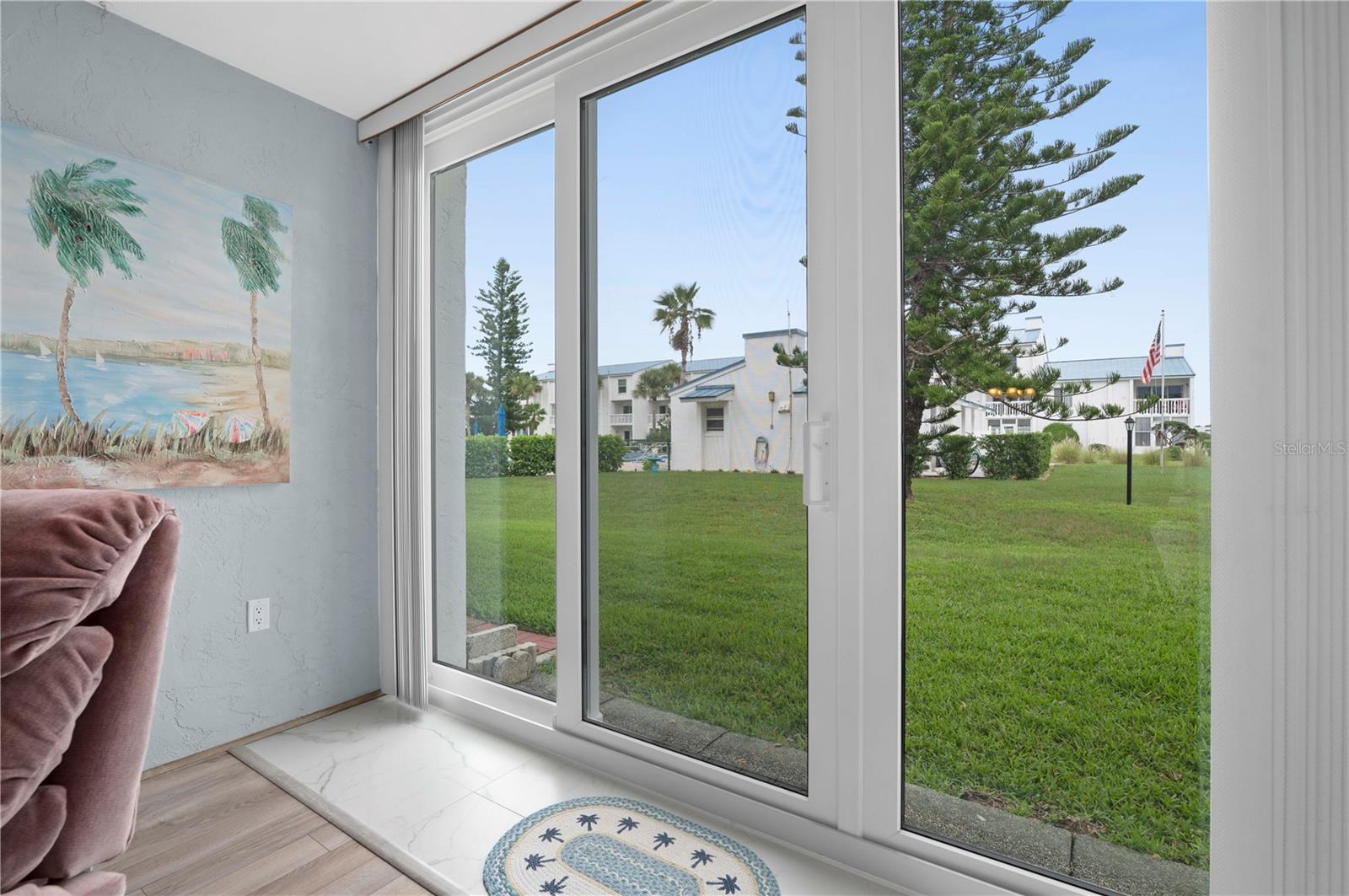 ***BRAND NEW HURRICANE WINDOWS AND SLIDERS JUST INSTALLED***Beautifully upgraded and tastefully designed - this TURN KEY FURNISHED 2/2 first floor condo located just steps from the ocean in gorgeous Ponce Inlet is ready for new owners! Through the front door you are greeted with tile flooring and natural sunshine. To your left is your upgraded kitchen, bright and inviting, with ample cabinet space, newer appliances, and backsplash. Beyond the kitchen and into the dedicated dining space, this open floor plan is perfect for entertaining as it seamlessly flows into the living room and beyond. Large windows showcase the greenery out back, and through the back door you are just steps from the huge community's swimming pool. The master bedroom is generous in size with deep closets and a bump out, perfect for an office/sitting area with oversized windows, allowing the sunshine to pour into the space. The master bathroom has a floor to ceiling tiled stand up shower and upgraded vanity with plenty of storage. Down the hall is the nicely sized bedroom, with another deep closet. The guest bathroom is beautifully designed with new tile and accent glass in the shower/tub combo. Units in Beacon Point don't become available often. It features an oversized community swimming pool, and is located walking distance to a no drive beach and Winter Haven beach park with restrooms, grills, and more. This community rests between the Halifax River and Atlantic Ocean, only 1.5 miles from the Ponce Inlet lighthouse as well as your favorite restaurants in the area! This unit has a 1.5 year old AC, new water heater, stackable washer and dryer, upgraded wood like flooring in the main living area, brand new refrigerator, and more. Furniture is negotiable! This unit is turnkey! Association fees include water, trash, cable internet, roof, building insurance, lawn, and common areas. Call today for your private tour!