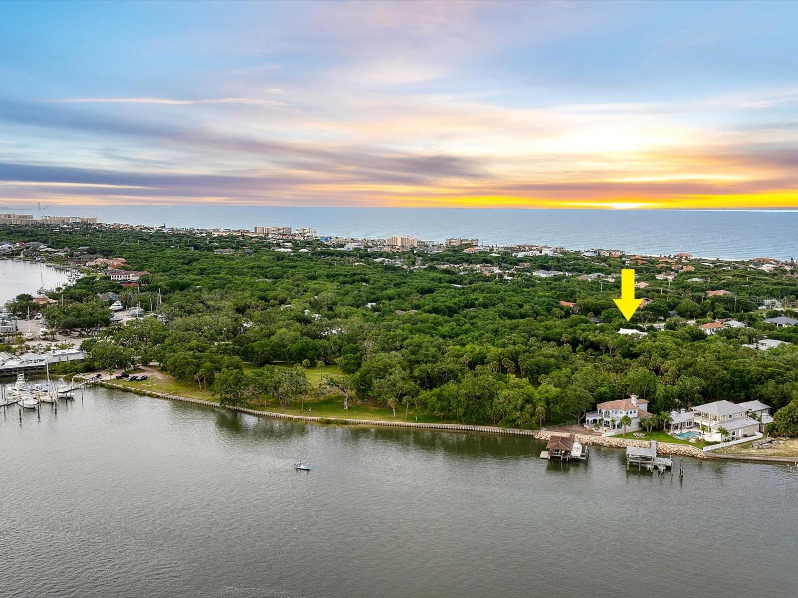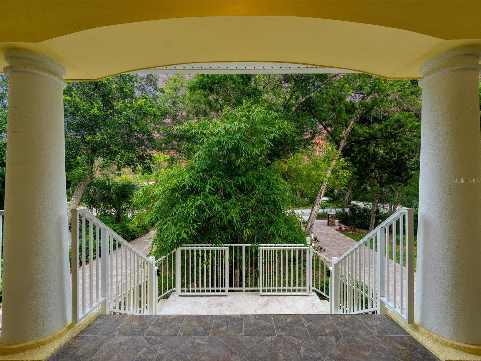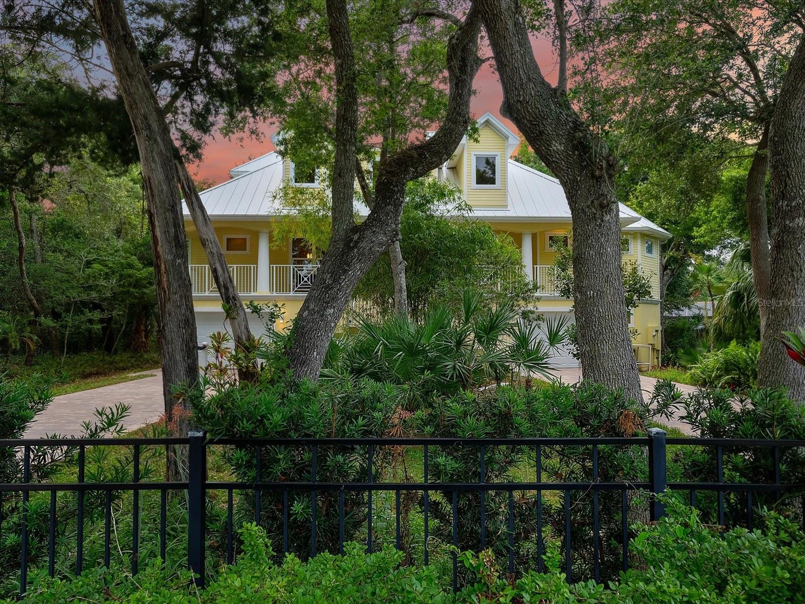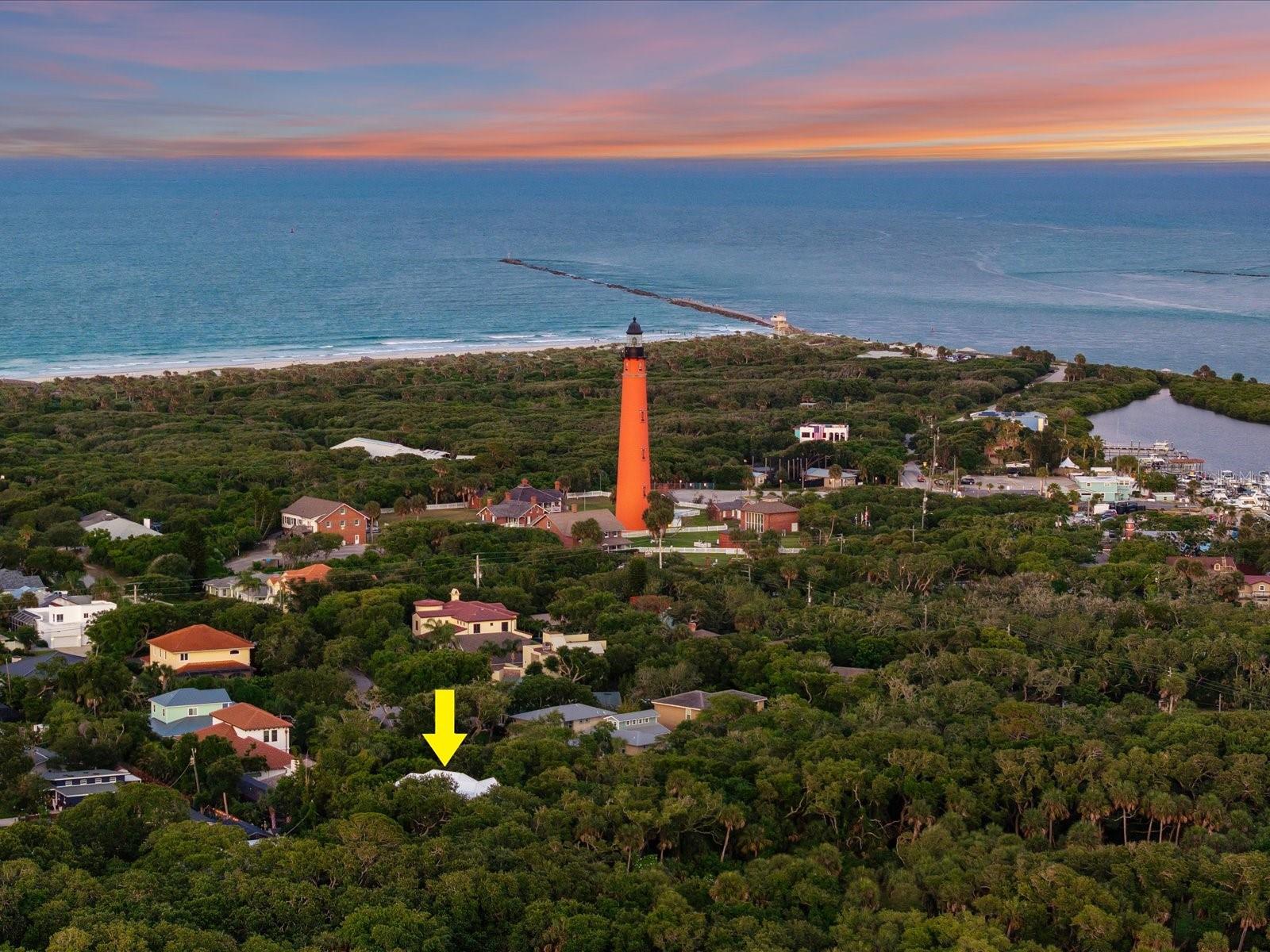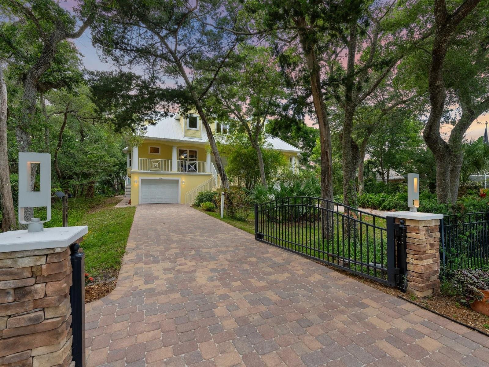Enviably set near Lighthouse Point Park, this stately Ponce Inlet home is a must-see! Towering trees and verdant foliage border the gated bookend driveways leading to this delightful custom-built abode, further elevating its captivating curb appeal. Venture up the staircase to the sheltered front porch - the ideal spot to unwind and appreciate the beautiful surroundings. Through the striking double doors, discover a sun-soaked interior where expansive picture windows spill abundant natural light at every turn, filling the heights of the two-story ceilings above the living areas. Exquisite millwork, tailor-made shelving, easy-care tiles, and gorgeous hardwood flooring continue throughout, including the dining room adorned with chic pendant lighting that sets an intimate mood. Impeccably crafted, the chef-inspired kitchen beckons you with its stainless steel appliances, artisan cabinetry, neatly tucked walk-in pantry, and gleaming granite countertops extending to the two-seater prep island. After a long day, retreat to the comfortable proportions of your bedrooms, the grandest of which is the primary suite with bespoke built-ins, an oversized closet, and a rejuvenating ensuite with dual vanities, a bidet, a separate shower, and spa-like soaking tub. Step out to the covered balcony where an outdoor fireplace lends warmth as you gather in cooler seasons. One level down, you can access the screened-in patio and serene garden. Additionally, there's a library and work room with window-side seating, a music room, a rooftop lookout tower, a laundry nook, a versatile workshop area, and two attached 1-car garages. Other notables are the ICF foam blocks and poured concrete construction making this gem a fortress. Come make this home yours while it's still available!