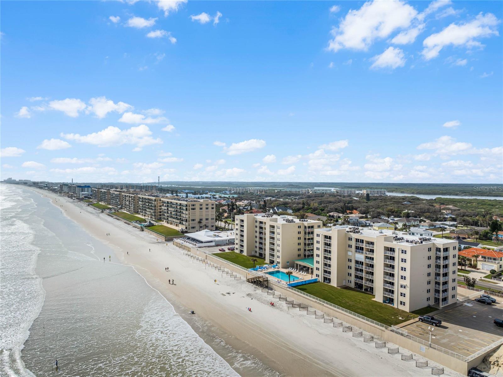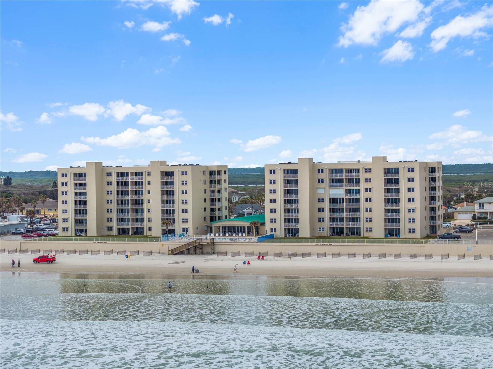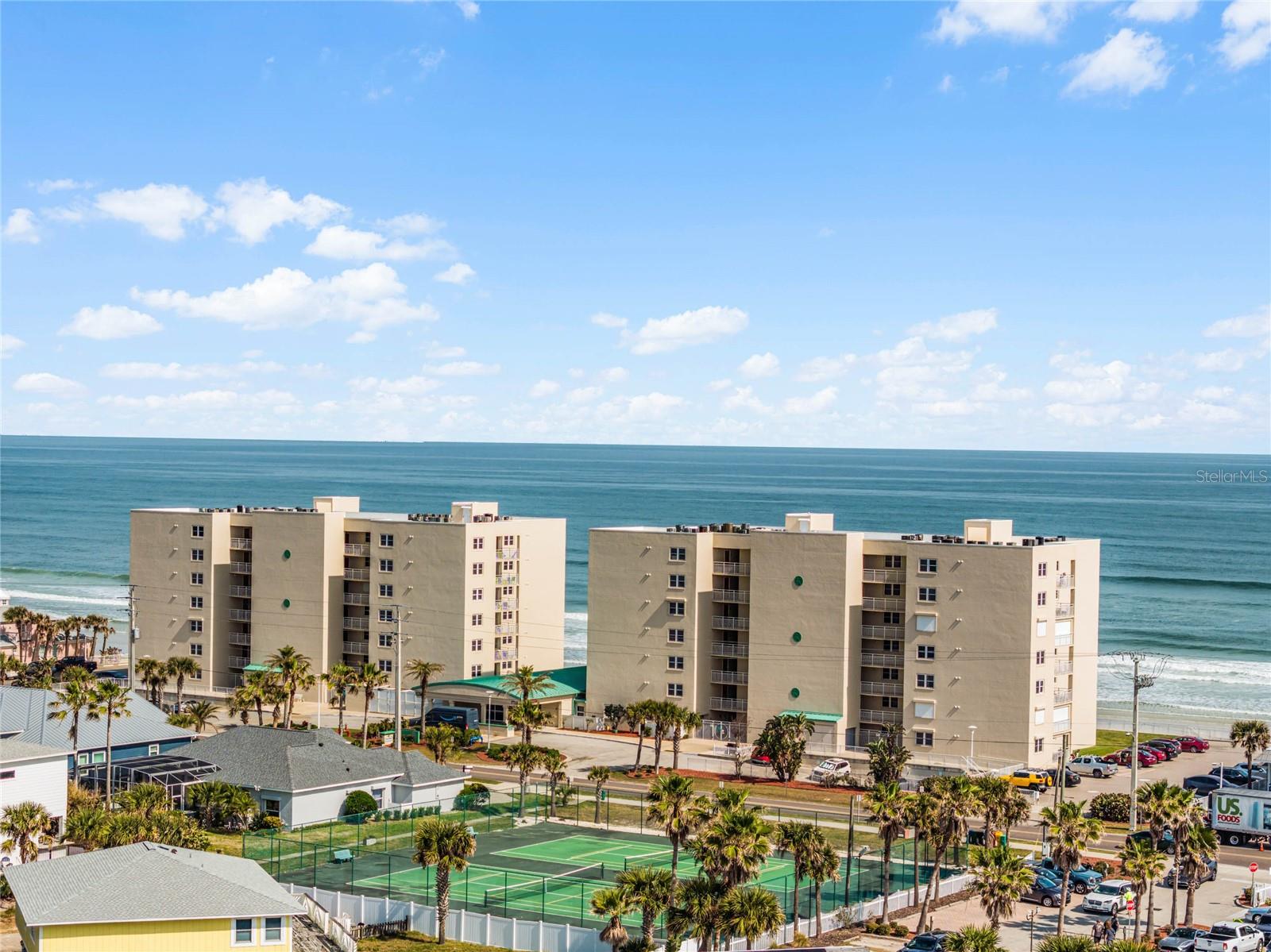 PONCE INLET- One of the few complete ocean front properties below $425K. Completely new $9K AC just installed. Welcome to this gorgeous and well-maintained 2 bedroom, 2 bath Condominium directly on the no-drive pedestrian beach with endless ocean views. It comes fully furnished and is located on the fifth floor of the East Wind North Tower. One parking spot in the underground garage and another one outside at ground level. Ceramic tile throughout for easy maintenance with a new shower in the master bathroom. Recent set of washer and dryer. Enjoy the panoramic views of the ocean from your balcony and get lulled by the sound of the waves! Relax by the heated pool, play tennis on your own courts, or enjoy a daily walk or bike ride on the beach. Get your piece of paradise - Schedule your showing today! Motivated seller.