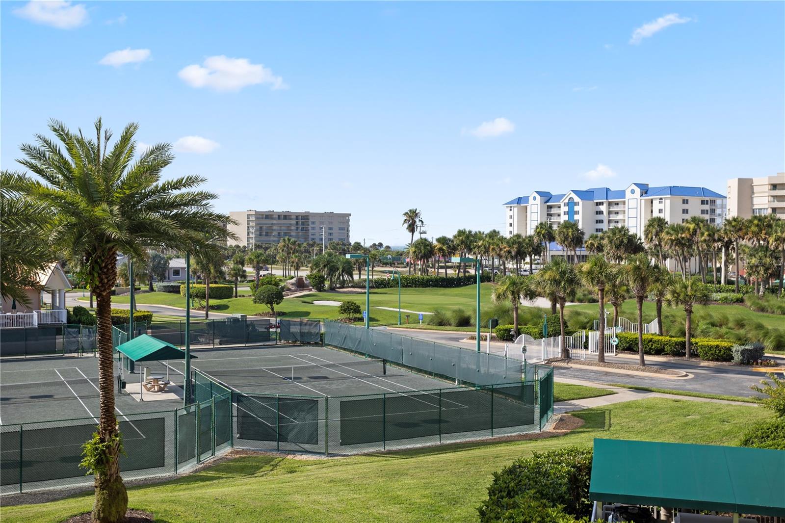 Live the picture-perfect Florida lifestyle in Ponce Inlet! Here at Harbour Village Marina and Golf Resort, experience the best in provided amenities with multiple pools, hot tubs, saunas, steam rooms and workout facilities. Outdoors are the 9-hole golf course, clay tennis courts, vast manicured lawns, riverfront boardwalks with a covered fishing pier and don't forget the private beach clubhouse. This unit boasts an expansive floor plan with an airy east-facing balcony view of the tennis courts and golf course. Exterior hurricane shutters were also installed. Home has a large passthrough kitchen with ample cabinet space, large primary suite and guest bedroom, two full baths, interior laundry room and large living space with dining area. Hurry, this won't last!