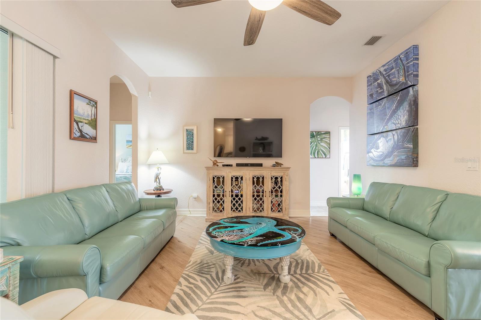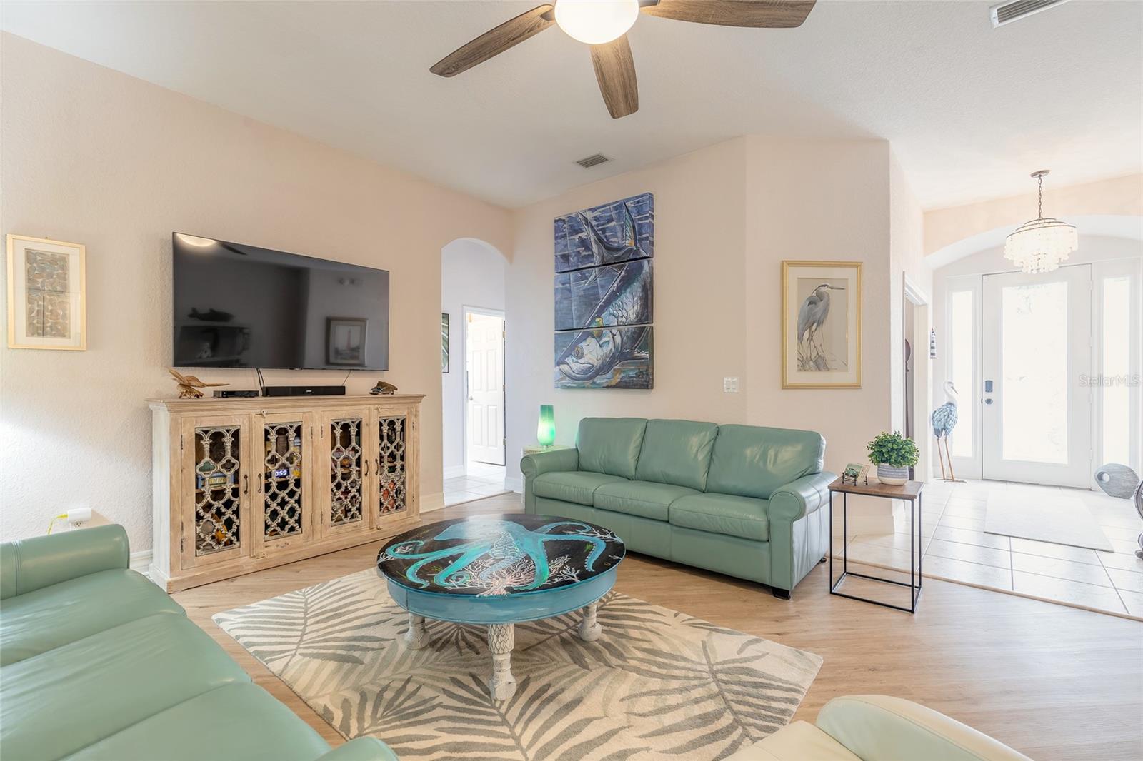Furniture is negotiable! Ocean breezes at your doorstep. Located in the tranquil community of Ponce Inlet it’s like being on vacation every day. Perfect for a full-time residency or your weekend beach getaway. With 4 bedrooms, 3 bathrooms and an optional 5th bedroom/office space there’s room for everyone. Pride in ownership, and well cared for, this beach side beauty is turnkey and ready for its new owners. You’re sure to love the split floor plan and open concept living area to include a stainless steel kitchen with granite countertops,plantation shutters throughout and inside laundry. The primary bedroom has a en suite bath attached with a private water closet, large soaking tub, massive walk-in shower and custom built walk-in closet. Relax and entertain on the screen lanai right off of the living room and primary bedroom. Additional outdoor space is provided with a paver patio in the rear backing to a wooded preserve. The home is situated on a quiet cul-de-sac with wonderful curb appeal to include tropical landscaping, paver driveway, and new roof installed late 2022. Hurry, homes like these in Ponce Inlet don’t last!