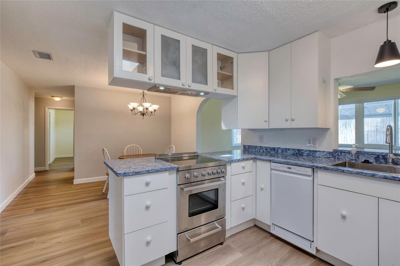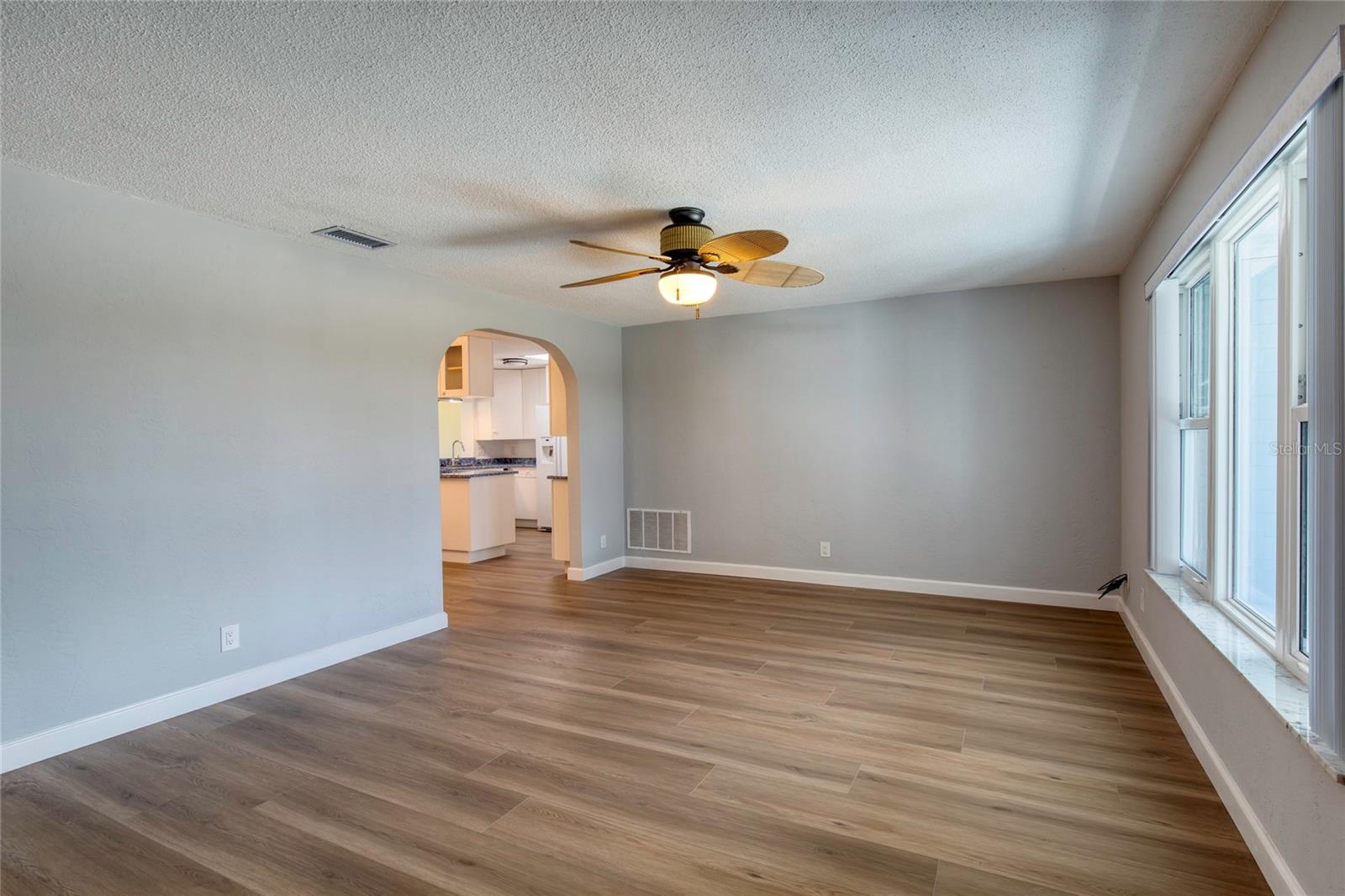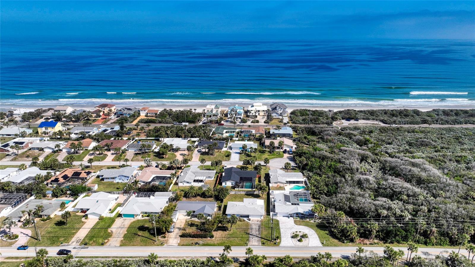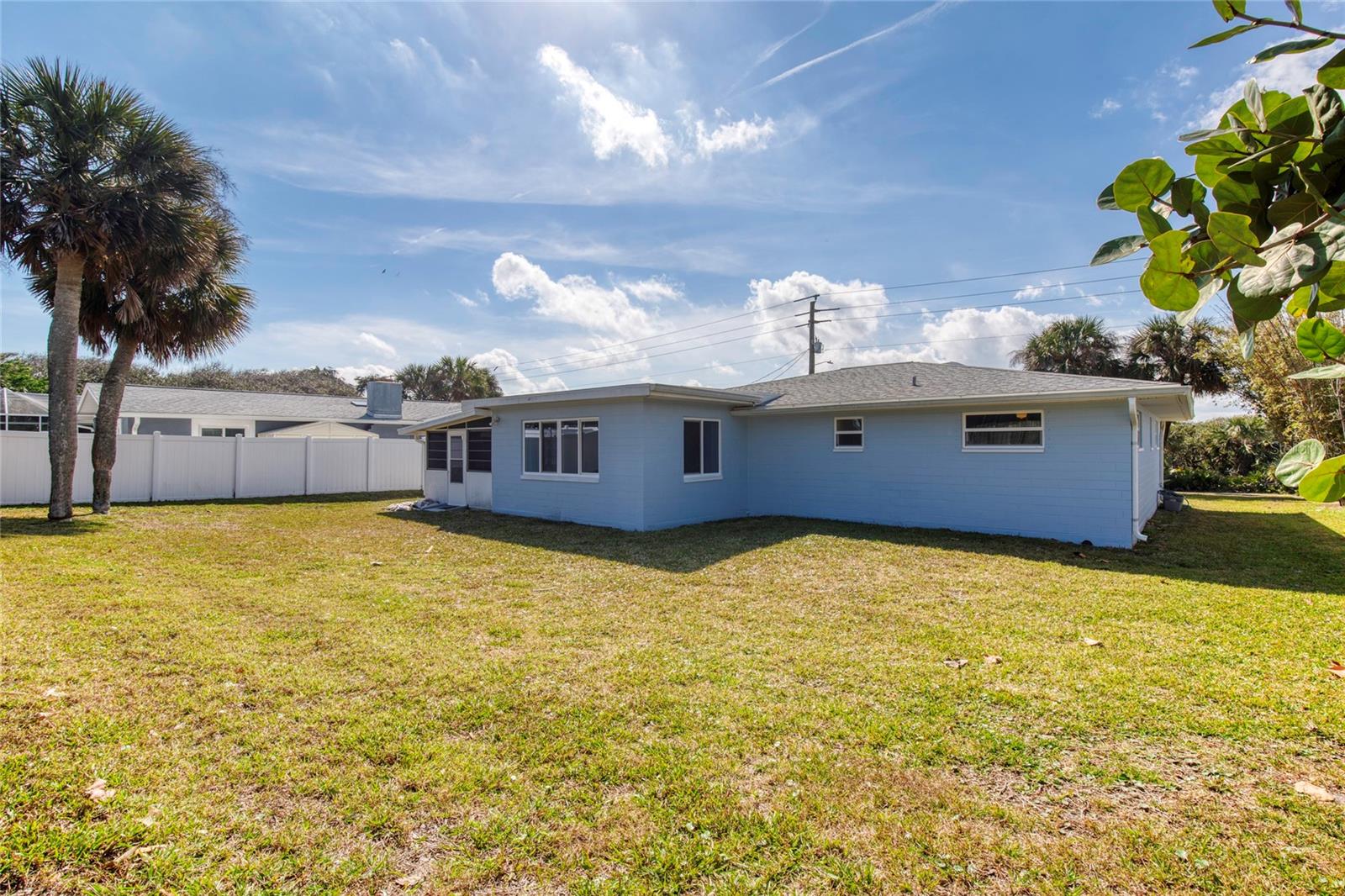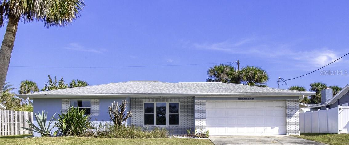 Discover this beautifully updated home in the sought-after Ponce Inlet community! Featuring custom kitchen cabinets, remodeled bathrooms, luxury vinyl flooring, and elegant arches that enhance the open, airy ambiance. Natural light floods the space, including a kitchen skylight. The kitchen boasts built-in storage, display cabinets, a pullout spice rack, and pocket doors throughout the home for added style and functionality. Enjoy peace of mind with brand-new windows (2024), storm shutters, a May 2024 AC unit, and a new water heater. Lush landscaping thrives year-round with sulfur-free well-water irrigation. Relax in the enclosed lanai, hot tub ready. Bonus room off the kitchen can be used as a family room/home office. The oversized lot has room for a pool! A two-car garage and washer/dryer hookup add convenience. Walking distance to beach access and scenic Ponce Inlet Preserve. Just minutes from river access, top restaurants, fishing, and boating. NO HOA. Move-in ready—start enjoying the best of Florida living today!