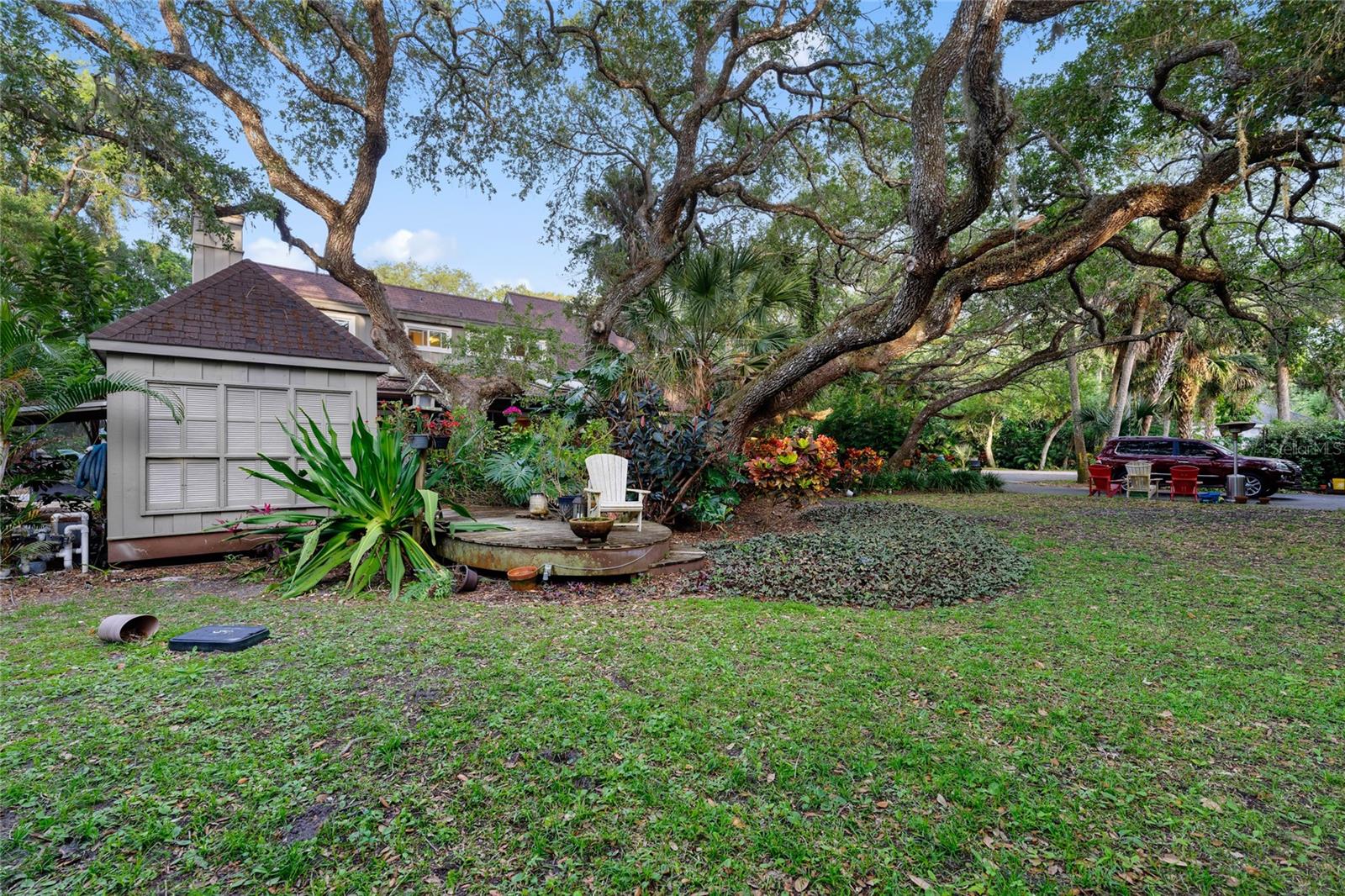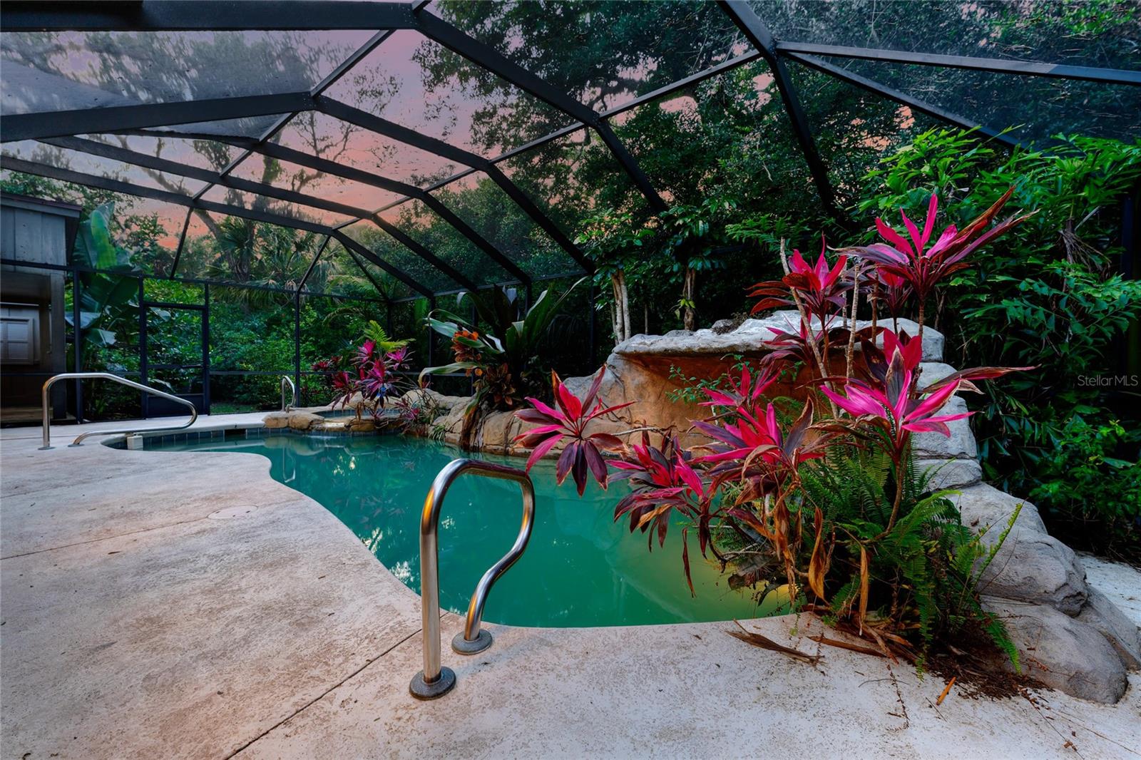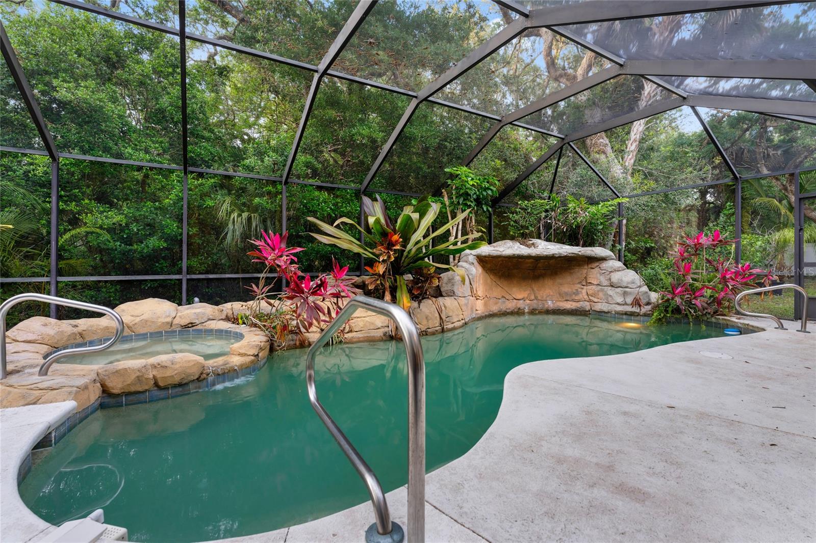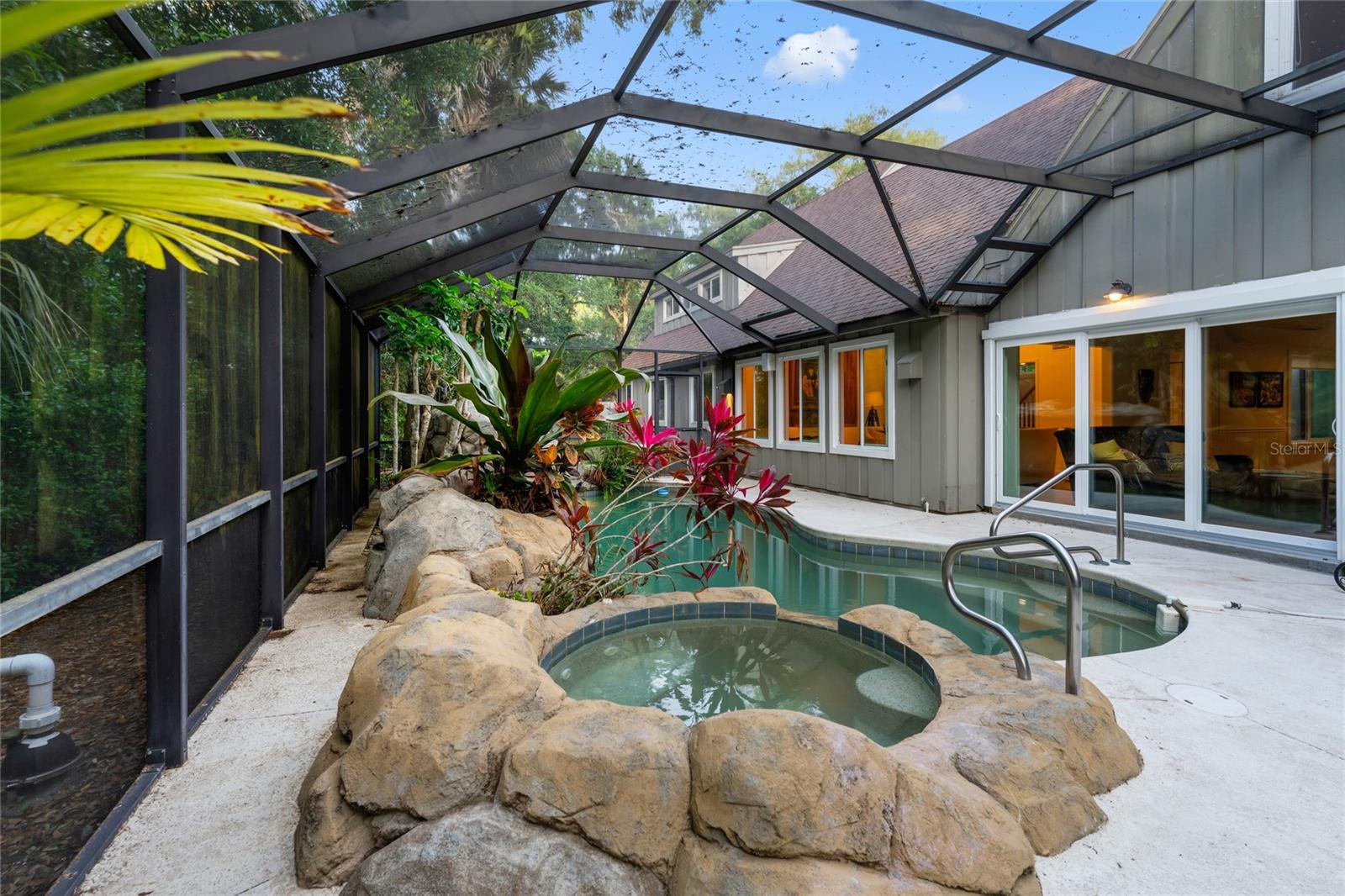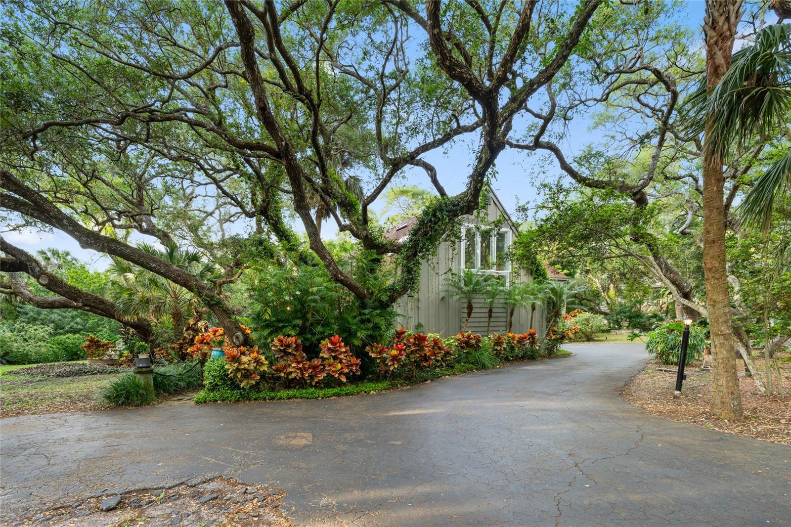 Welcome to 120 Beach St in the beautiful town of Ponce Inlet. Standing on almost an acre of land, this magnificent residence is one you'll be proud to call your own! Set well back from the street, a large circular drive bordered by majestic mature live oak trees leads to this captivating two-story haven with a BRAND NEW ROOF and sky-lights! Through the striking glass-inlaid entry, discover a sunlit foyer showcasing an array of high-end finishes, fine craftsmanship, and exquisite attention to detail. A stunning chandelier suspended under soaring cathedral ceilings casts a vibrant glow over the living room, setting a lively mood as you entertain guests. Beautiful hardwood flooring continues across to the entire home, complementing the elegant wainscoting that lends a sophisticated atmosphere for both intimate and large-scale festivities. Inspiring garden views soothe the eyes as you work culinary magic in the bright kitchen, where a host of appliances, abundant cabinetry, gleaming countertops, and a butcher-block prep island make whipping up meals a breeze. After a hearty feast, serve cool refreshments from the wet bar's wine fridge and share nightcaps, games, and conversation around the family area's inviting wood-burning fireplace. Five comfortable private bedrooms offer a restful escape as you end the day, all graced with ample closets to keep you organized. Two are conveniently located on the main level along with two refreshing baths, and are ideal for overnight company. Upstairs, three more await. Your generously proportioned primary suite is a haven all its own, featuring a ceiling fan, a window-side alcove, a walk-in closet with custom organizers, and a spa-like ensuite with dual vanities and a rejuvenating soaking tub. Skylights lavishly spill sunlight across the upper-level loft, offering plenty of space for a recreational area or even a gym. In addition, a versatile bonus room can be utilized as a playroom, creative studio, or personal home office. An oasis-inspired backyard beckons you to move outside and immerse yourself in the boundless natural beauty. The fully geared outdoor kitchen casita will make cooking dinners a fun social affair. Sip morning coffee or hold memorable al fresco celebrations on the covered deck surrounded by lush greenery or take a relaxing dip in the pristine pool and spa enhanced by a waterfall feature and enclosed by floor-to-ceiling screens for easy maintenance. Other notable inclusions are the inside laundry area, attached 2-car garage, and plenty of driveway parking. Set within walking distance of fine restaurants, marinas, the Ponce Inlet Light House and Museum, Marine Science Center, and a myriad of nature walking trails. Ready for the semitropical lifestyle most people only dream of? Come take advantage of this incredible opportunity while the offer still stands!