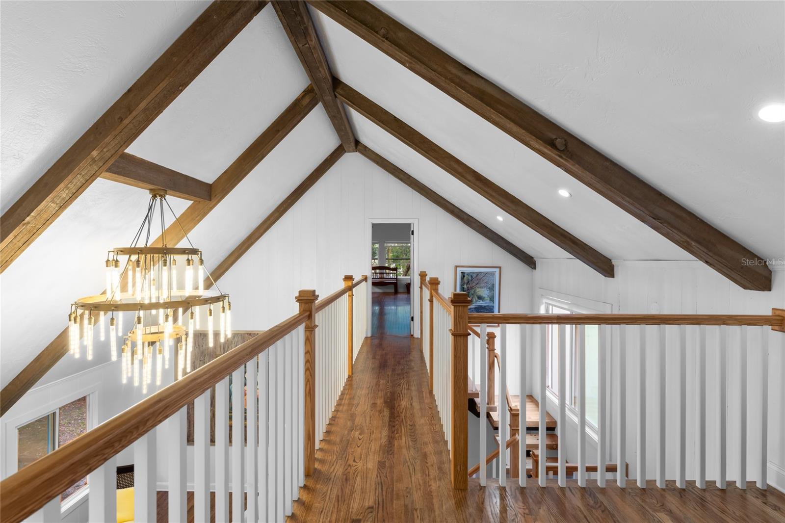 Welcome to your coastal sanctuary in Ponce Inlet, where resort-style living meets timeless Southern charm. Nestled on an expansive lot just minutes from the beach, this beautifully residence offers the privacy, space, and lifestyle today's homebuyers crave—coastal breezes, a sparkling pool, and room to truly live with nature and space. Arrive via a long circular drive shaded by majestic live oaks, leading to an elegant two-story retreat featuring a brand-new roof and fresh exterior paint. The grand entry sets the tone with a glass-inlaid front door, sun-filled foyer, and soaring cathedral ceilings that open into a vibrant living space anchored by a dazzling chandelier. Rich hardwood floors flow seamlessly throughout, enhancing the home's coastal-luxury feel. The bright, spacious kitchen is ready for any chef, while the formal dining room—with its sophisticated wainscoting—creates the perfect setting for coastal entertaining. With five generously sized bedrooms, this home offers comfort and flexibility. On the main level, two bedrooms and two full baths create an ideal guest wing or future in-law suite with it's own private entrance. Upstairs, the luxurious primary suite features a serene alcove, walk-in closets, and a spa-inspired en-suite with dual vanities and a soaking tub. Skylights illuminate the versatile loftperfect for a media space, home gym, or family lounge. Step outside to discover a true Florida resort oasis. The screened, floor-to-ceiling enclosure surrounds a pristine pool and spa with grotto waterfall, offering year-round enjoyment. Entertain in style with your summer kitchen casita, host gatherings on the covered deck, or unwind in the privacy of your lush tropical garden porch. Additional highlights include a convenient inside laundry room with half bath, impact-resistant windows and sliders installed in 2017, a two-car garage, and abundant parking. Located moments from marinas, beachfront parks, nature trails, and restaurants, this home delivers the ultimate coastal lifestyle on a rare oversized lot. Your dream home in Ponce Inlet awaits coastal living, abundant space for the whole family, and stunning outdoor amenities all in one extraordinary property.