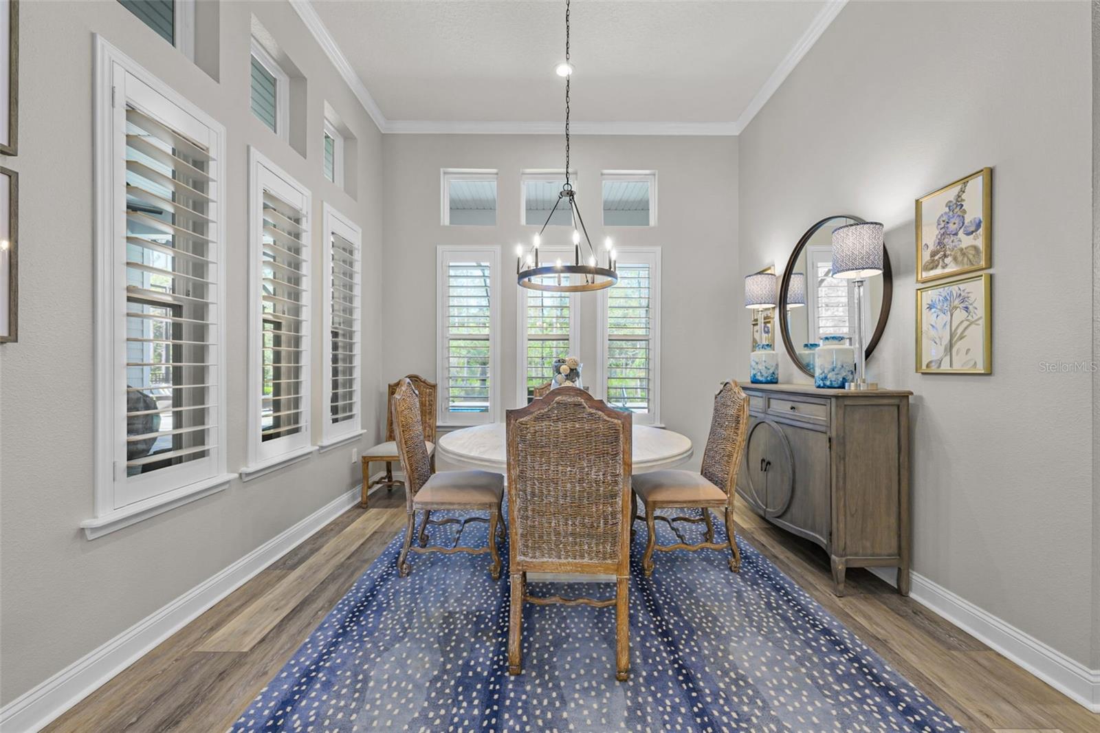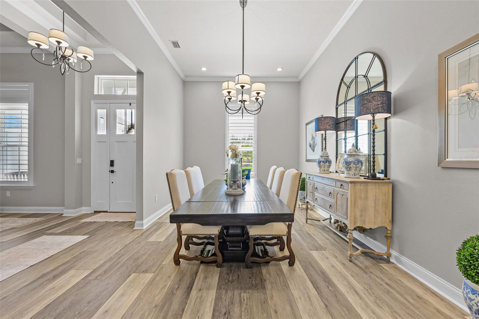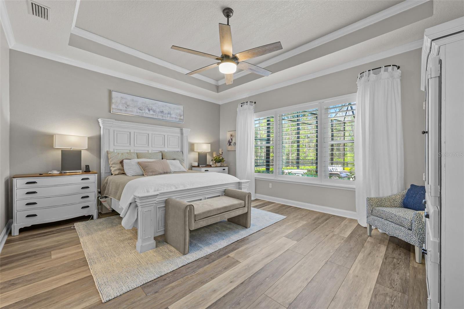 Welcome to an elevated standard of Florida living in the heart of Nocatee, the #1 planned master community in the U.S. This meticulously updated 4-bedroom, 3-bathroom residence blends refined craftsmanship with effortless style. Every inch of this home is thoughtfully curated with high-end finishes and designer details. Step into soaring 12-foot ceilings with crown molding, bathed in natural light and anchored by wide-plank luxury vinyl floors. The open split floor plan offers both privacy and flow, ideal for entertaining or everyday elegance. The gourmet kitchen is a showstopper with quartzite countertops, a 36'' professional-grade stovetop, custom D & L cabinetry, designer lighting, a wine cooler, and an oversized island. The living and dining spaces seamlessly transition, highlighted by architectural ceilings.The owner's suite is a private retreat, featuring a custom-designed walk-in closet and a spa-inspired en-suite with premium finishes. Each additional bedroom is generously sized, with one guest suite offering a private bath, perfect for multigenerational living or hosting in comfort. Outside, your personal oasis awaits: a screened-in, heated and cooled saltwater pool, surrounded by lush professional landscaping, landscape lighting, and a fully fenced yard, offering total privacy and year-round enjoyment. Equipped with modern conveniences such as a full-house generator, tankless water heater, water softener, built-in WiFi, epoxy-coated garage floors, and a smart sprinkler system, this home also boasts thoughtful extras like a drop zone, built-in ironing station, and custom closets throughout. Located in the vibrant Nocatee community, enjoy access to an array of amenities, including parks, golf cart-friendly routes, nature trails, kayaking launches, and pools. Residents can partake in social events like concerts, farmers markets, 4th of July parades, and movie nights. With top-ranked schools in St. John's County and a resort-style lifestyle at your doorstep, this turnkey luxury home is ready to welcome you. Schedule your private tour today and experience the Nocatee lifestyle at its finest.
