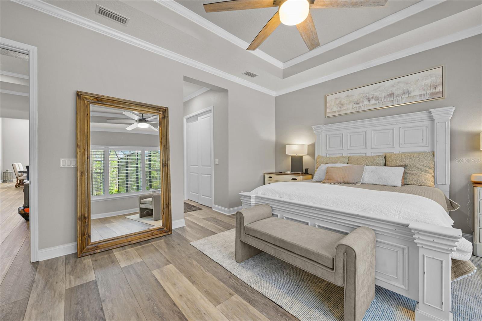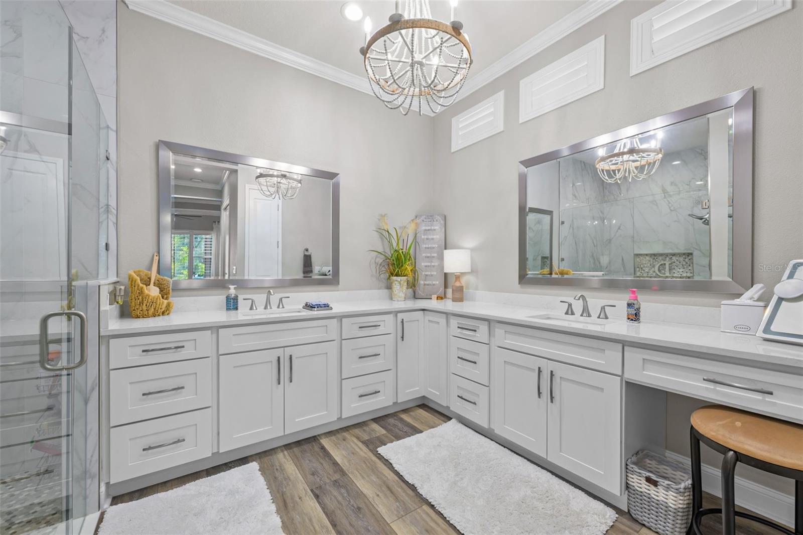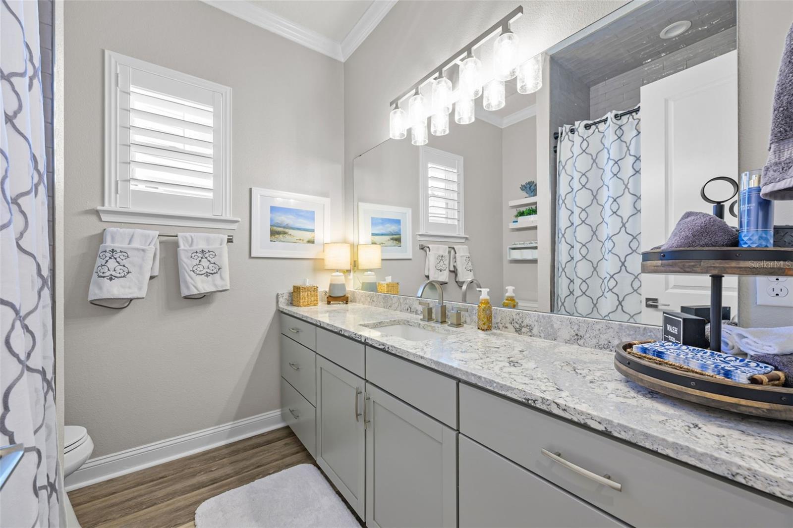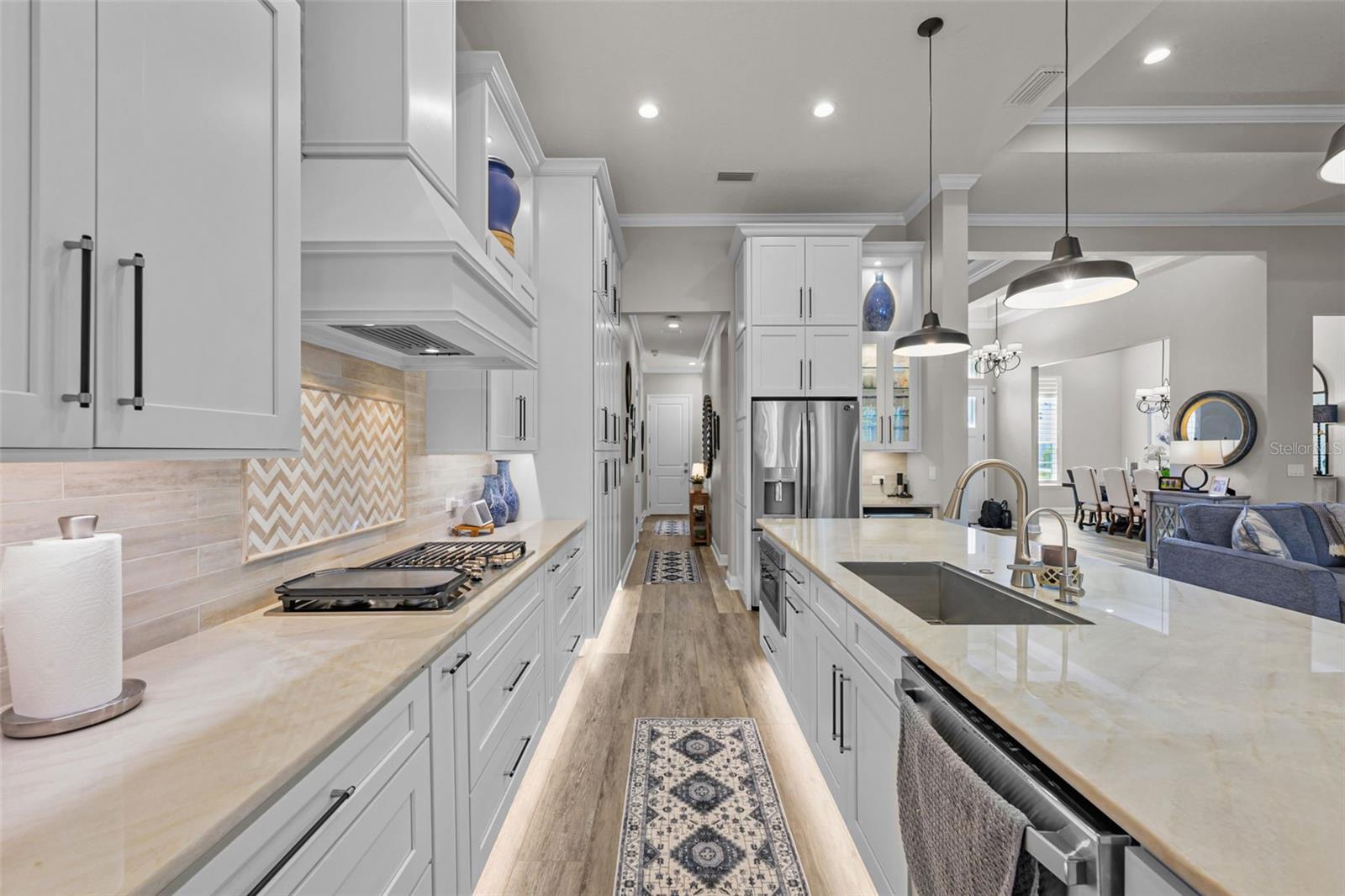 Welcome to an elevated standard of Florida living in the heart of Nocatee, the #1 planned master community in the U.S. This meticulously updated 4-bedroom, 3-bathroom residence blends refined craftsmanship with effortless style. Every inch of this home is thoughtfully curated with high-end finishes and designer details. Step into soaring 12-foot ceilings with crown molding, bathed in natural light and anchored by wide-plank luxury vinyl floors. The open split floor plan offers both privacy and flow, ideal for entertaining or everyday elegance. The gourmet kitchen is a showstopper with quartzite countertops, a 36'' professional-grade stovetop, custom D & L cabinetry, designer lighting, a wine cooler, and an oversized island. The living and dining spaces seamlessly transition, highlighted by architectural ceilings.The owner's suite is a private retreat, featuring a custom-designed walk-in closet and a spa-inspired en-suite with premium finishes. Each additional bedroom is generously sized, with one guest suite offering a private bath, perfect for multigenerational living or hosting in comfort. Outside, your personal oasis awaits: a screened-in, heated and cooled saltwater pool, surrounded by lush professional landscaping, landscape lighting, and a fully fenced yard, offering total privacy and year-round enjoyment. Equipped with modern conveniences such as a full-house generator, tankless water heater, water softener, built-in WiFi, epoxy-coated garage floors, and a smart sprinkler system, this home also boasts thoughtful extras like a drop zone, built-in ironing station, and custom closets throughout. Located in the vibrant Nocatee community, enjoy access to an array of amenities, including parks, golf cart-friendly routes, nature trails, kayaking launches, and pools. Residents can partake in social events like concerts, farmers markets, 4th of July parades, and movie nights. With top-ranked schools in St. John's County and a resort-style lifestyle at your doorstep, this turnkey luxury home is ready to welcome you. Schedule your private tour today and experience the Nocatee lifestyle at its finest.