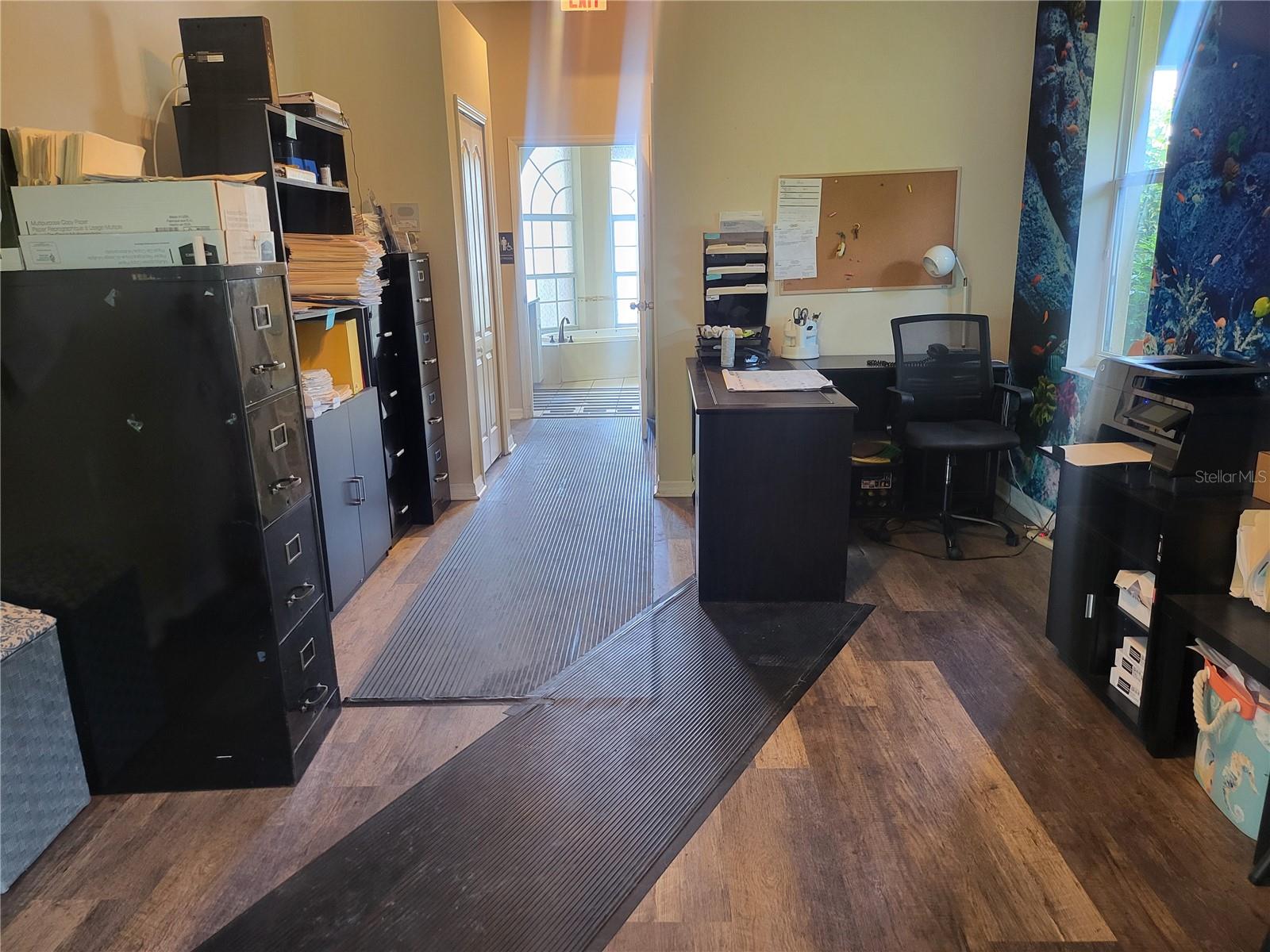 RARE COMMERICAL PROPERTY - originally a builder’s model home on THREE LOTS this well built three bedroom, two bathroom home that has been rezoned and updated to commercial standards including the conversion of the two car garage to more under air office space. There are TWO COVERED heated pools as this has been a physical therapy office that is relocating - after they installed the second pool just three years ago. The cleared lot next door is included and used as a parking lot and also comes with the lot adjacent to and behind the parking lot with the second covered heated pool on it. It will be ready for occupancy May 8th and can be shown before that. This is a prime location on Toledo Blade which is on easy find as Toledo Blade is the 179 exit on 75 and is an arterial road for both Port Charlotte and North Port- the second fastest growing city in the country. Already ready to set up your business. The covered back lanai and caged pool area make for great entertaining and client appreciation barbeques. There is a large digital sign out front ready to announce your business standing 18 feet.
