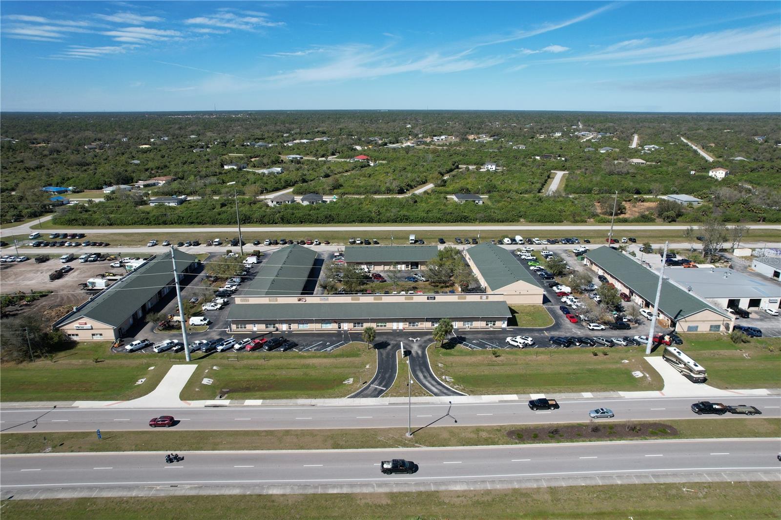 Office Warehouse and or Automobiles. Located off of Veterans for maximum opportunity. Zoning is Industry (IG). E1 & E2 are combined, being sold together. Two units combined or own two and divide them. NO wall is between the two units presently. Maximum floor space. Two Garage Doors and both have 10 ft door openings. Two Bathrooms or one each side. Two Fuse boxes with 200 amps each box on each side. 1 Car lift. 5 Exterior parking spaces deeded or 2.5 each unit. Updated attachments. The height inside of the building is 12.61 feet. You, pay for electric. Association pays for water and trash. You insure the drywall (block) in. Light industrial and higher-intensity commercial allowing for a verity of uses in accordance to Charlotte county. This property would cost you over a million dollars to build on your own land. Buy it while you can. Association condo rules do apply. Positioned in a prime location in Port Charlotte and walking distance to many attractions. This property gives you options after work, conveniently located close to local amenities, beaches, and Tiki Bars and Live entertainment. The best game fishing in the world with off speed boat racing to spring training baseball teams as The Atlanta Braves and Tampa Rays. Just want to go to the beach or fishing for the day. Great to do it all with whatever you can dream or do as a hobby. Local International Airports: Fort Myers, Sarasota and local Punta Gorda with Allegiant airlines direct.